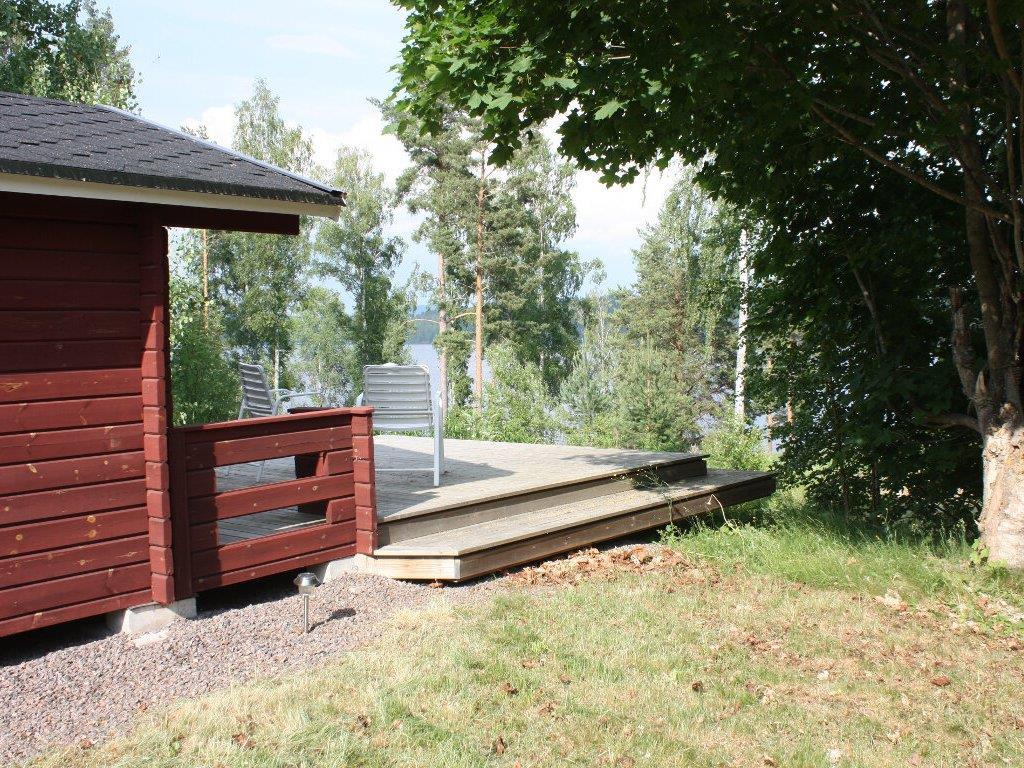 Velkommen til dette feriehus i smukke omgivelser - kun 100 meter fra søen Fryken og 5 km nord for Sunne. Her har I søudsigt fra forsiden af feriehuset og fra den store terrasse.