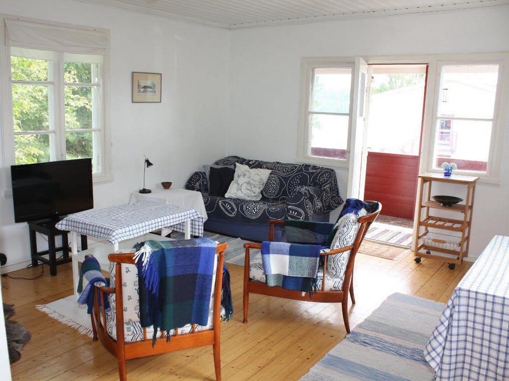 Huset fremstår lyst og venligt med stort lysindfald og fine fyrretræsgulve. I stuen er der TV med svenske kanaler samt en brændeovn, der kan give både behagelig atmosfære, skøn duft og ekstra varme. Om sommeren er der plads til helt op til 8 personer, fordi I også kan bruge det tilstødende anneks, hvor der er to senge.