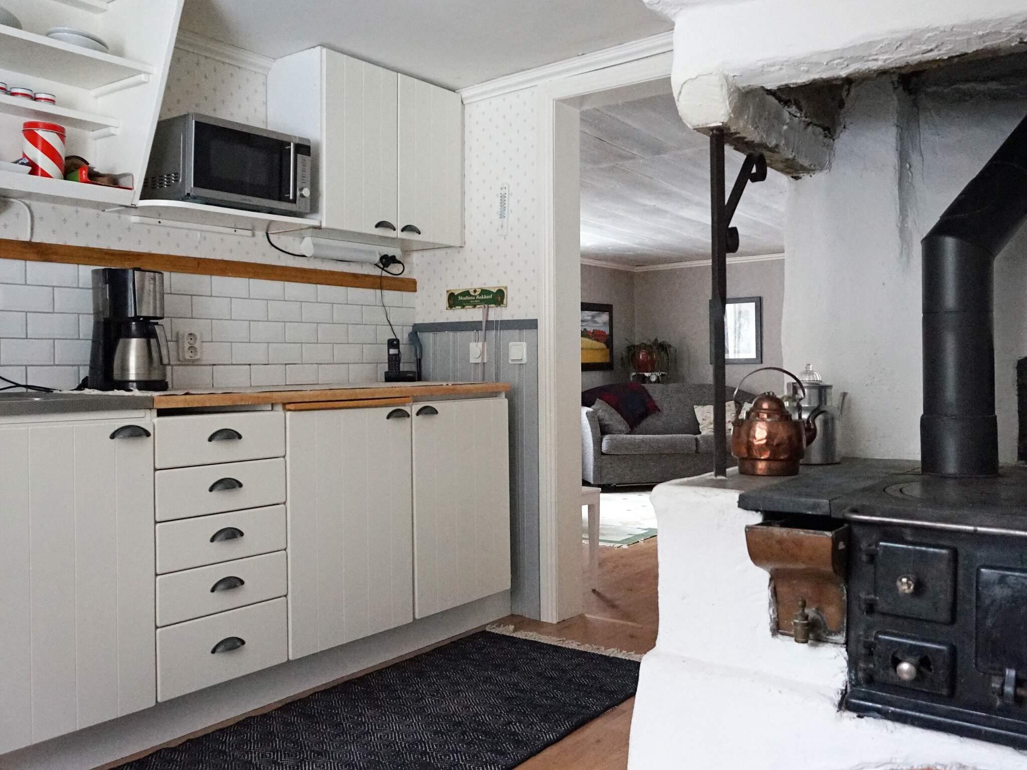Huset har en gammal charm med både moderna och gamla detaljer, som i köket med en gammal järnspis som man kan elda i. I vardagsrummet på nedervåningen finns en braskamin, perfekt för om det blir kyliga dagar och en bäddsoffa med plats för 2 personer. På övervåningen finns det ett vardagsrum till med en bäddsoffa och även en TV. Intill ligger sovrummet med en dubbelsäng.