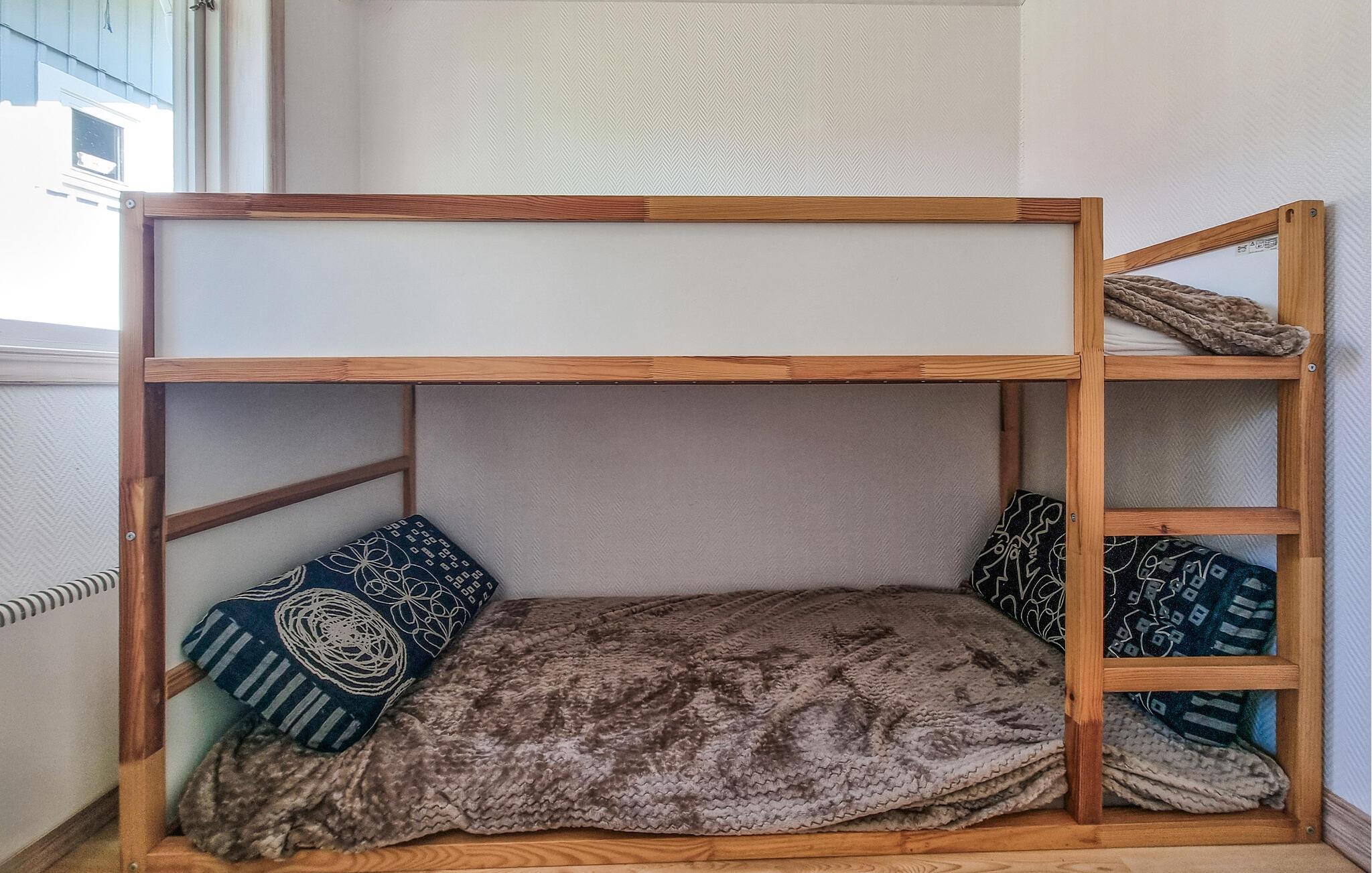 Nyd en afslappende ferie i dette hyggelige feriehus med idylliske omgivelser. Pak jeres tasker, og glæd jer til at finde jer til rette i dette lyse og indbydende feriehus nær en rolig sø. I det smukke landkøkken kan I trylle jeres yndlingsretter frem, og ved det indbydende spisebord kan I nyde harmoniske måltider med en charmerende udsigt over søen. Efter en lang dag udenfor inviterer den komfortable sofa jer til at slappe af og læse – eller til at holde en sjov spilleaften med familien. Jeres veranda giver en dejlig mulighed for at nyde morgenmaden udenfor i solskinnet. Bagefter kan I slentre ned til søen for en forfriskende dukkert og derefter tænde op i grillen. Gå en tur langs træbrogader gennem hedelandskabet i Store Mosse Nationalpark, bliv inspireret af moderne kunst på Vandalorum Museum i Värnamo, eller besøg historiske bondegårde i Apladalen. Overrask jeres børn med en tur til High Chaparral Western Park, oplev kunsten at puste glas i Smålands glasværker, og prøv regionale specialiteter på hyggelige gårdcaféer.