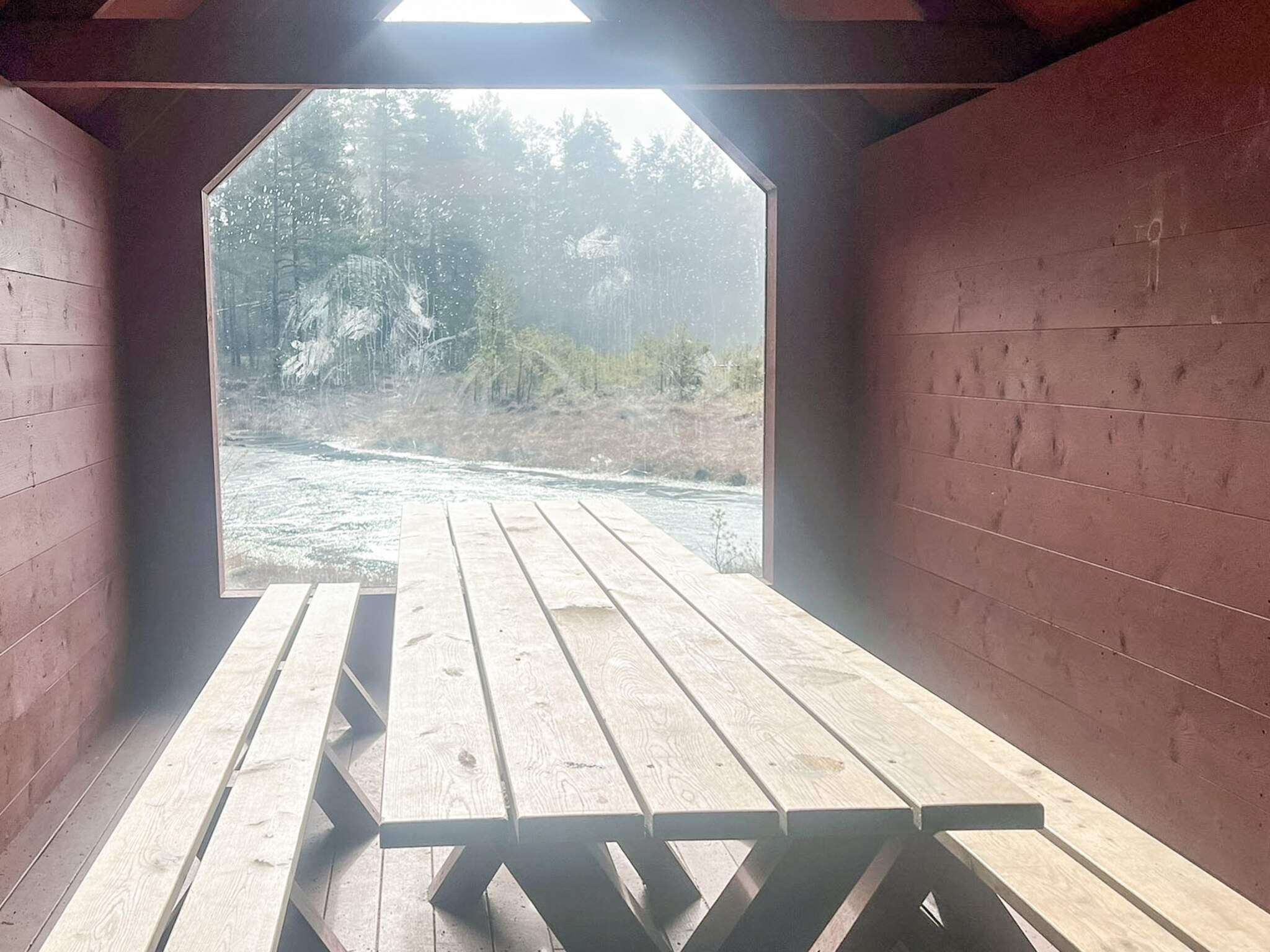 En kort promenad bort finner ni det röda hus med bord i som syns på bilderna. Det är en del av ett allmänn plats som får lov att nyttjas av alla, njut av en hälig måltid eller pronenera runt dammen.