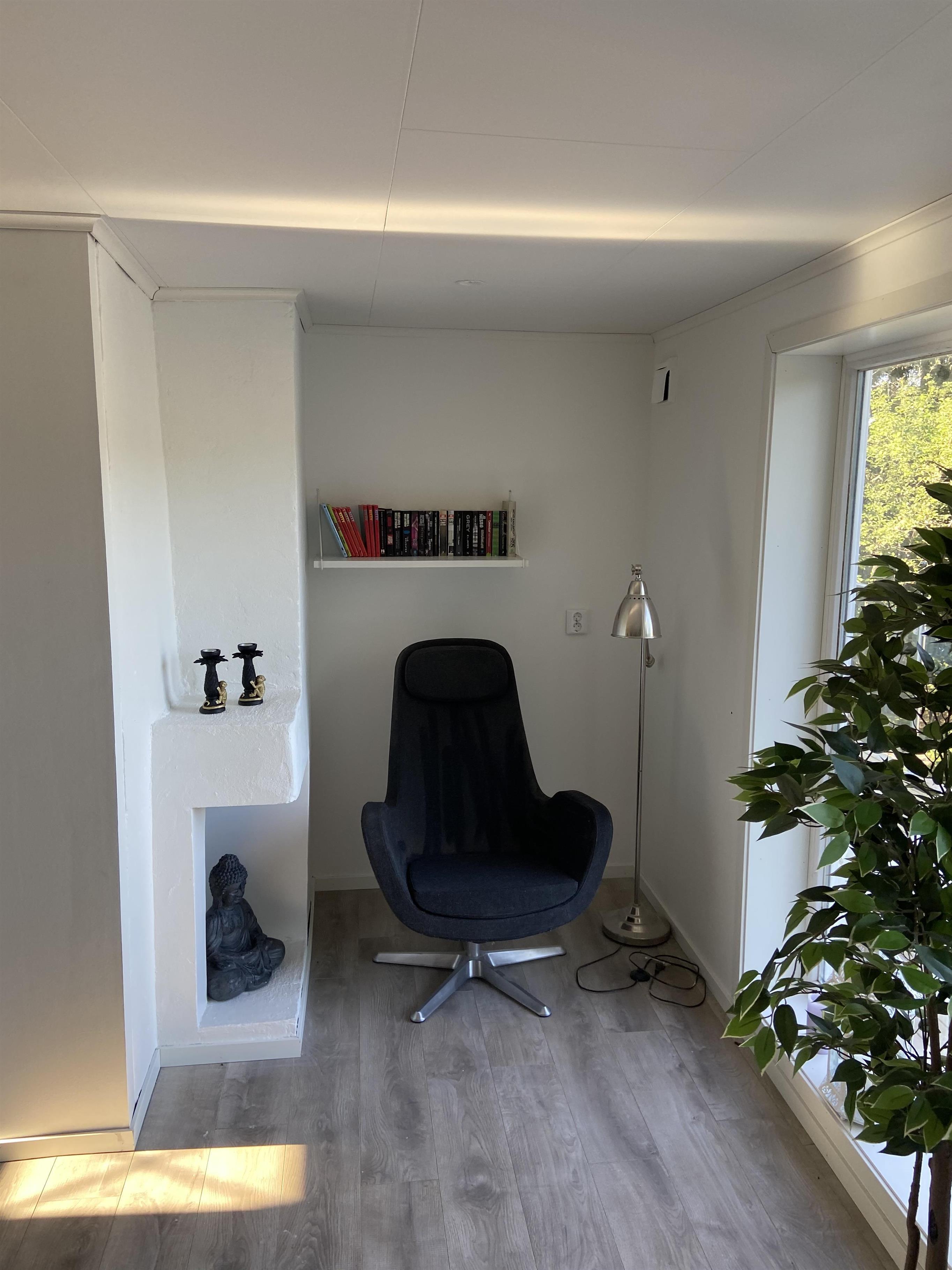 Der er yderligere et hus nede ved søen på ca. 25 m2, og her er der en hjørnesofa, hvor I kan sidde og nyde den herlige udsigt over vandet.
