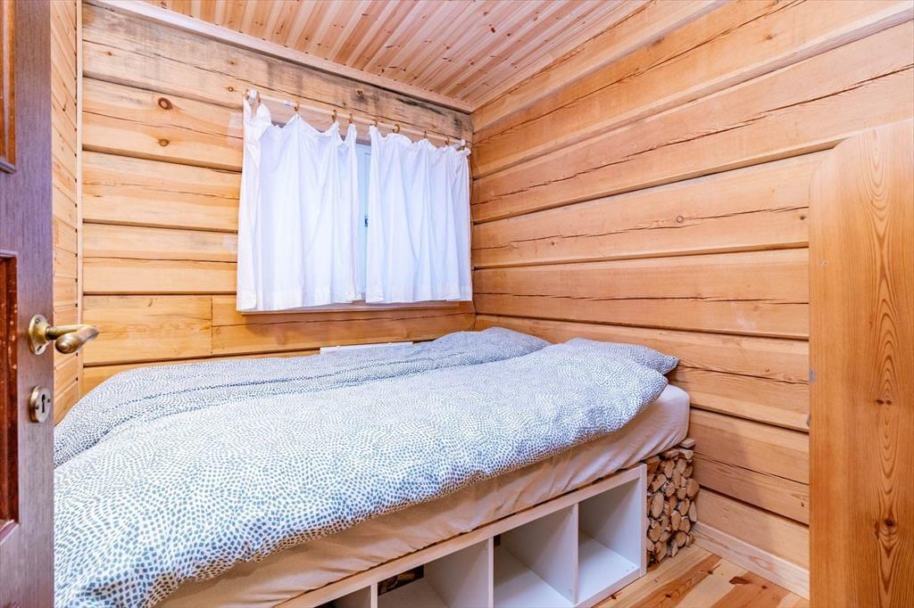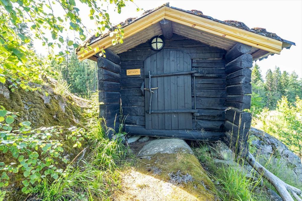 På grunden findes også et lille saunahus med elovn – perfekt til rolige aftener efter en dag ved vandet.