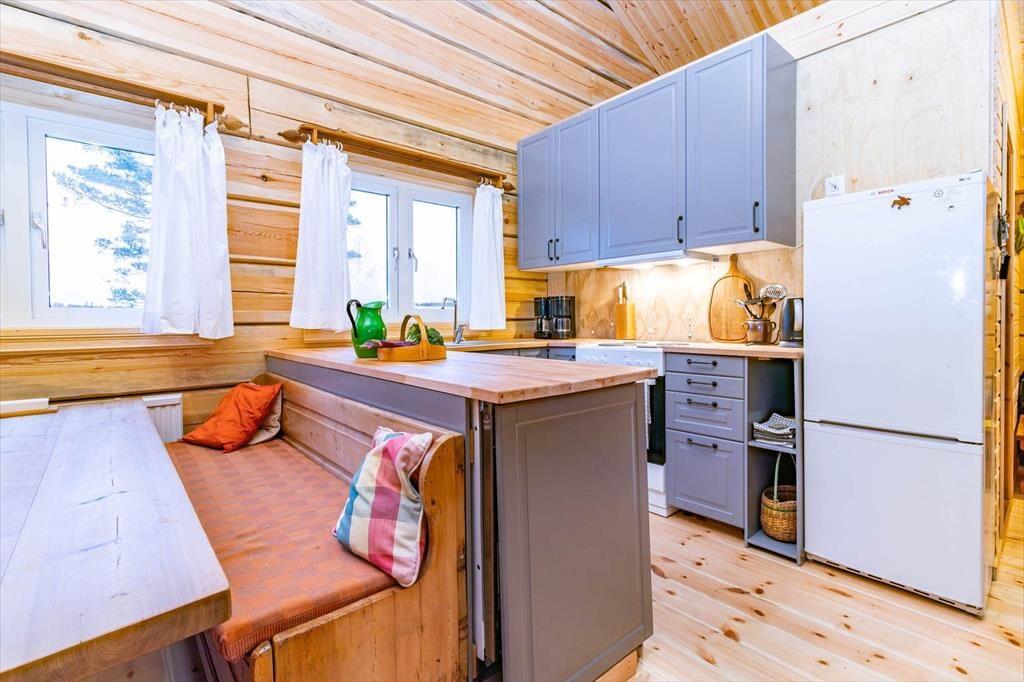 Med et boligareal på ca. 80 m² byder huset på god plads til op til 6 personer og egner sig perfekt til familier eller vennepar. Indenfor mødes du af en harmonisk kombination af rustik charme og moderne komfort. Den hyggelige stue med stor stenpejs indbyder til afslappede aftener på kølige dage – brænde er inkluderet.