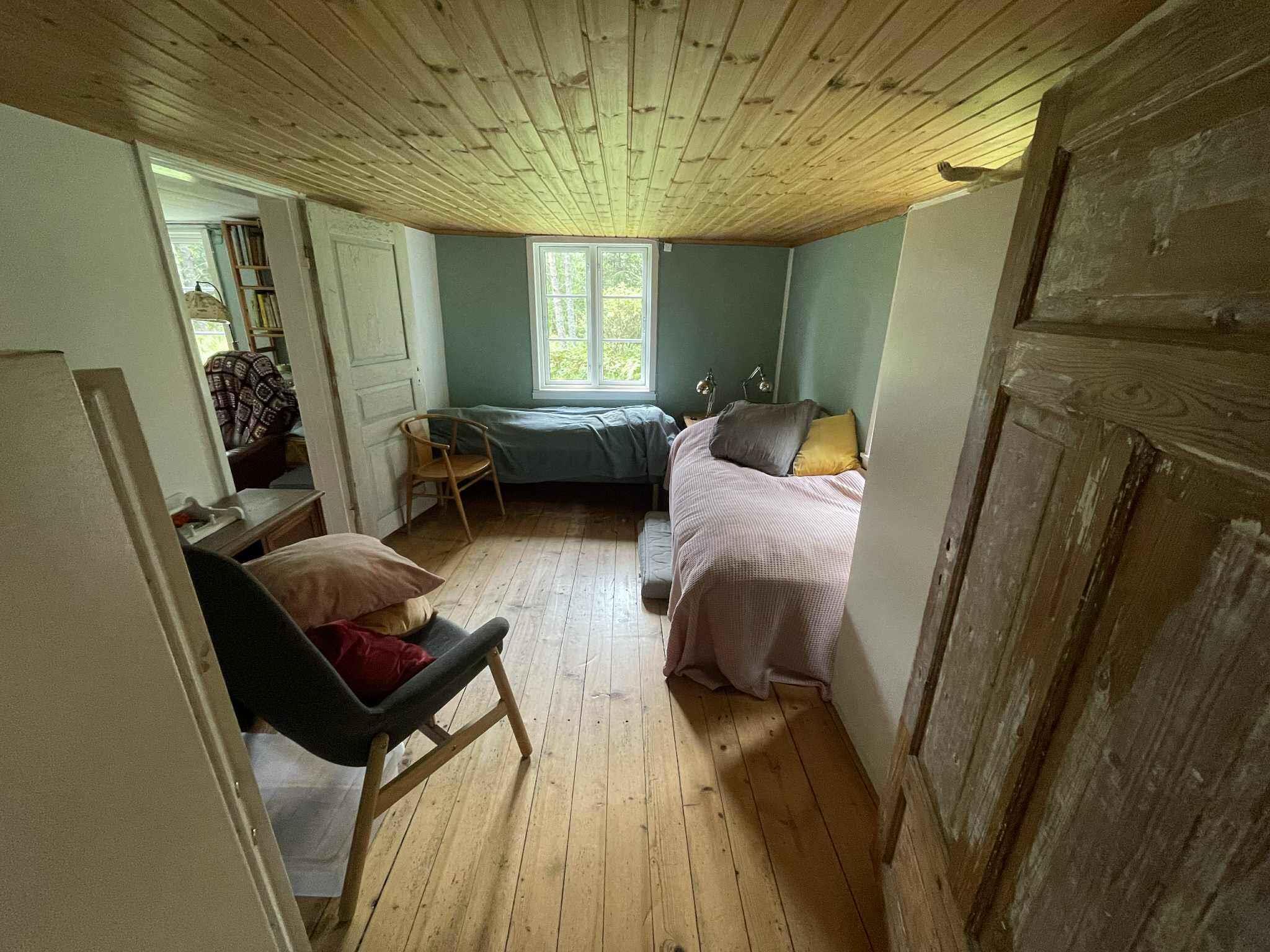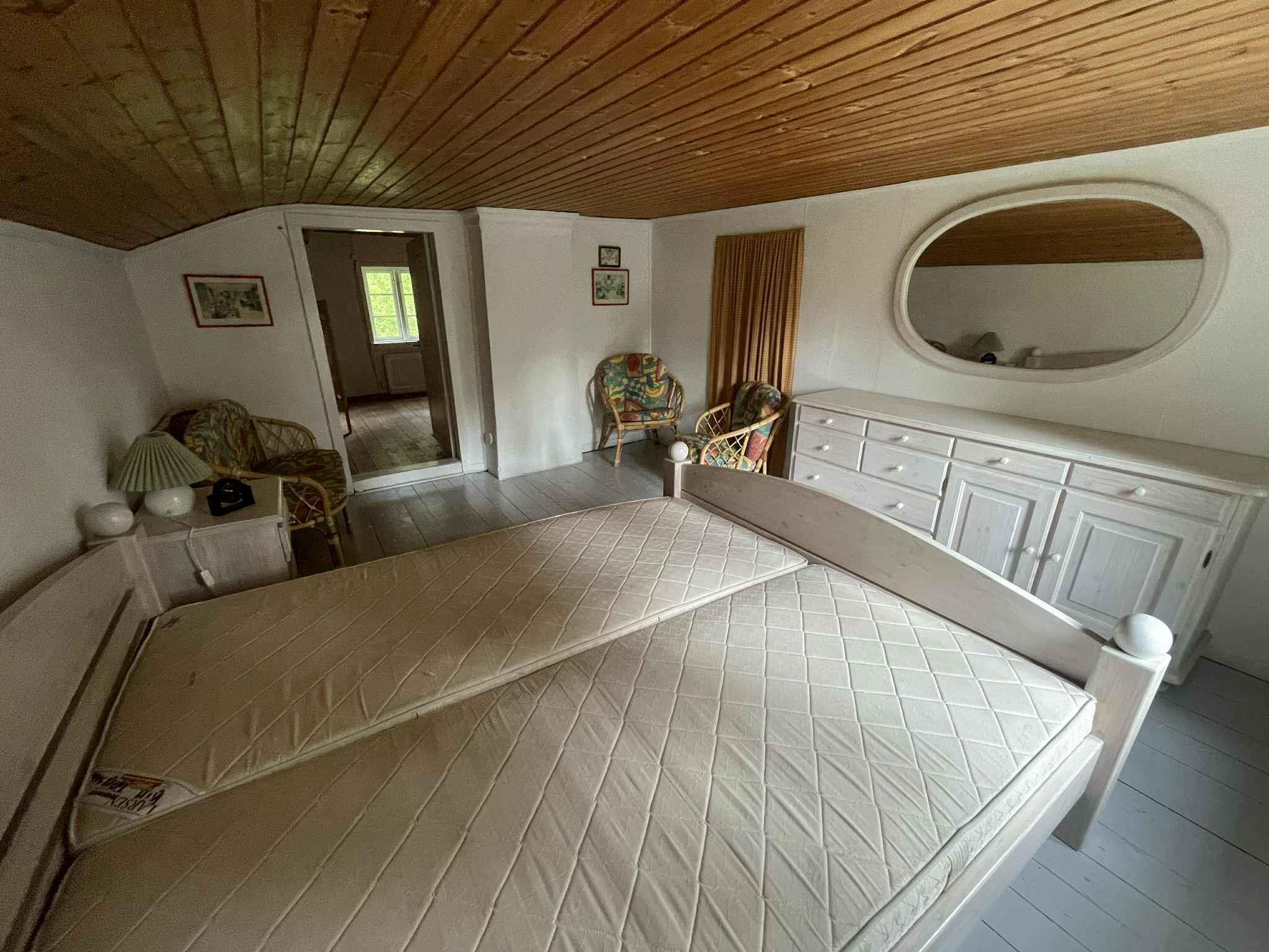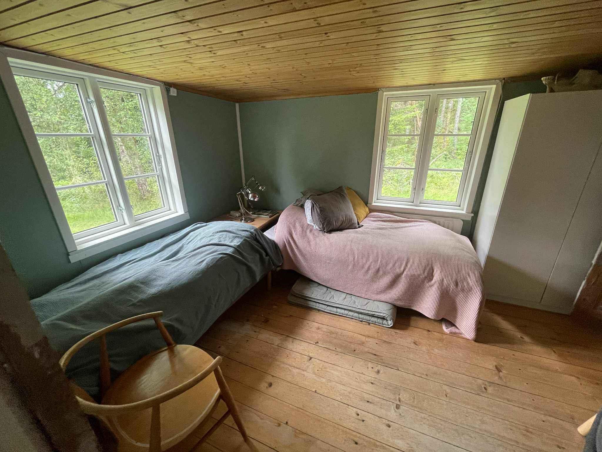 Dette charmerende feriehus på 70 m² ligger midt i skovens dybe, stille ro. Her er plads til seks personer fordelt på tre sovepladser, og huset henvender sig til jer, der ønsker en ferie med nærvær, natur og god afstand til hverdagens tempo. Boligen er løbende renoveret med respekt for det oprindelige hus. Nyt køkken, flere nye møbler og planlagte nye badeværelsesmøbler i foråret 2026 skaber en fin balance mellem det autentiske og det funktionelle. Indretningen er praktisk og gennemtænkt. Ét soveværelse ligger i stueplan, mens første sal rummer endnu et soveværelse samt en sovesofa på reposen. Det giver fleksible rammer for både familier og venner på ferie sammen. I køkkenet står det gamle brændekomfur stadig som en del af husets historie, men det må ikke anvendes. Til gengæld er der brændeovn i opholdsområdet, som giver varme og stemning på kølige dage og aftener. Internet er naturligvis til rådighed, men her er det let at vælge skærmen fra. Bemærk, at vandet fra hanen ikke må drikkes, og drikkevand skal derfor medbringes. Området omkring ferieboligen er præget af tætte skove, små stier og en særlig ro, man sjældent finder andre steder. Her er ideelt til vandreture, svampeture og stille morgener med fugleliv som baggrund. Skoven inviterer til lange gåture direkte fra huset, hvor årstidernes skiften mærkes tydeligt. Dyrelivet er rigt, og det er ikke usædvanligt at opleve rådyr og fugle tæt på boligen. Ca. 2.000 meter fra huset ligger en badesø, som giver mulighed for en forfriskende dukkert på varme dage. Søen er rolig og omgivet af natur, perfekt til afslapning og en pause fra skovens dybde. Dette feriehus er for jer, der søger en hyggelig og stemningsfuld base midt i naturen. Et sted hvor det oprindelige er bevaret, og hvor renoveringerne understøtter ferien uden at tage fokus fra stilheden og omgivelserne. Obs, udlejes ikke til erhversmæssigt brug.
