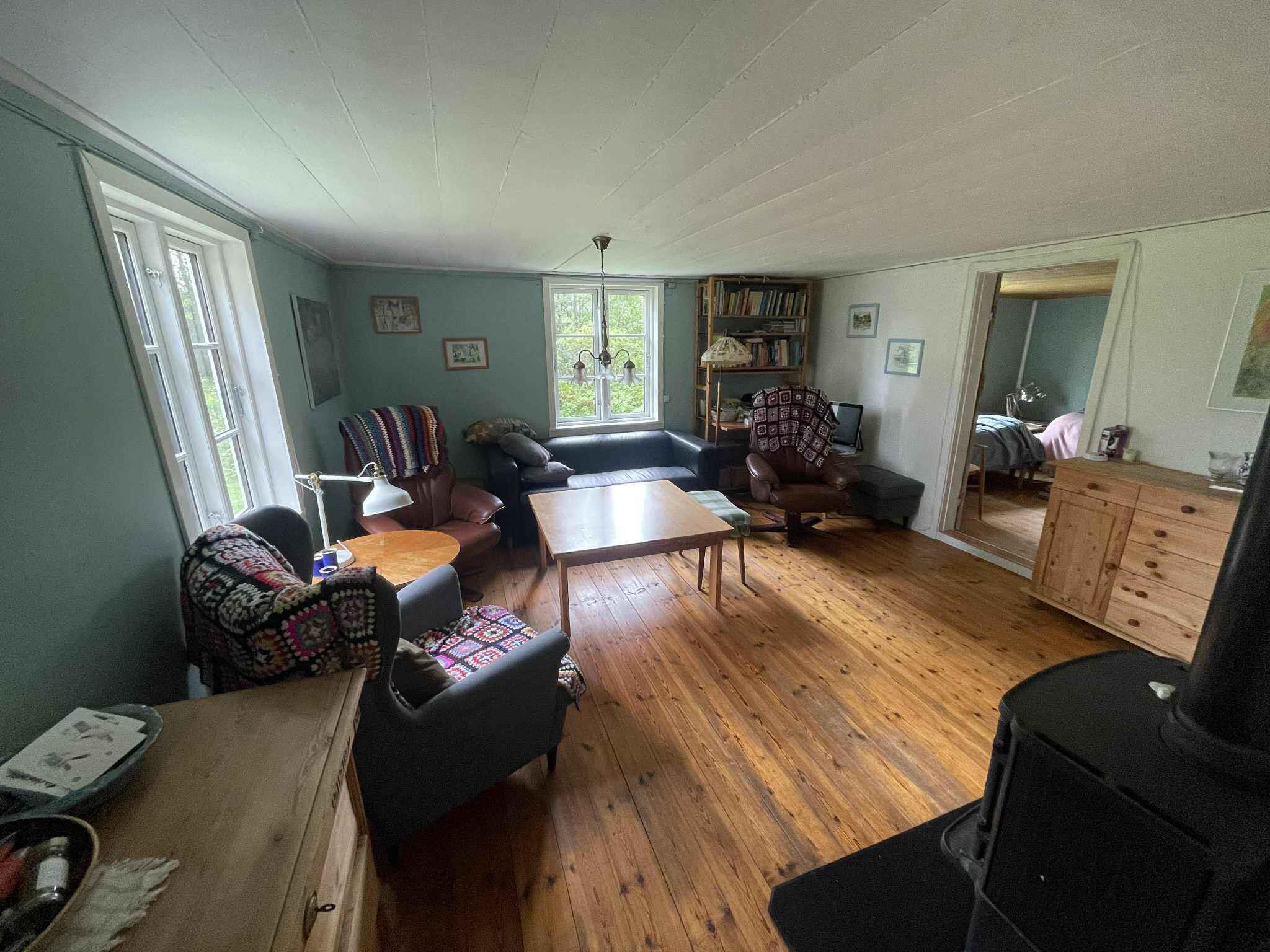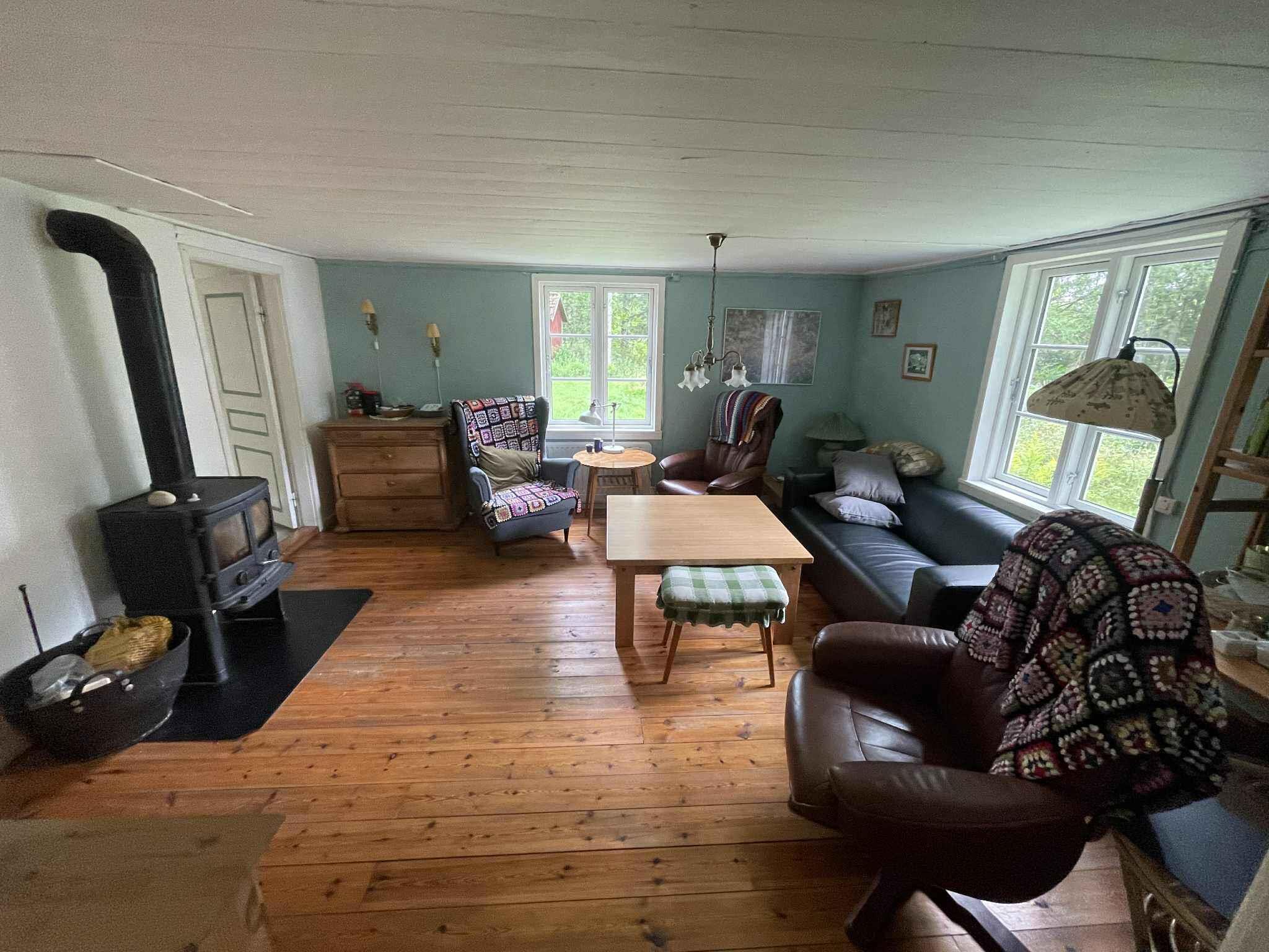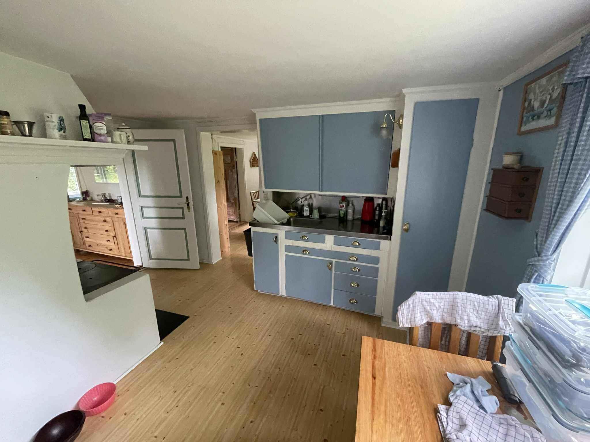 hyggelig og charmerende feriebolig, renoveres med nyt køkken, en del nye møbler, nye badeværelsesmøbler i foråret 2026, internet, brændeovn, ligger midt i skovens dybe stille ro, renoveres med respekt for det oprindelige hus