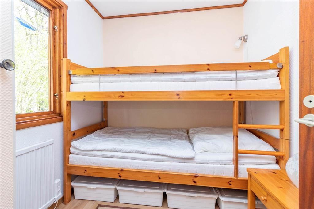 Det hyggelige feriehus på 52 m² har plads til op til 4 personer. Der er to soveværelser: ét med dobbeltseng (to madrasser à 200 x 80 cm) og ét med køjeseng (200 x 80 cm på hver etage).
