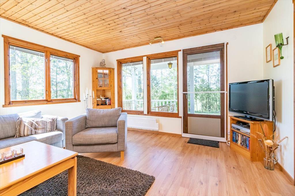 Feriehuset ligger idyllisk og fredeligt ved Vrankunge, ca. 30 minutters kørsel sydvest for Växjö. Fra den overdækkede terrasse har du udsigt over søen Åsnen, som ligger kun omkring 300 meter i fugleflugt fra huset. I området finder du alt, hvad du behøver for et afslappet ophold: dagligvarebutik i Kalvsvik (ca. 10 km) samt restauranter, caféer og hæveautomat i Grimslöv (ca. 11 km). Til den nærmeste badeplads og fiskepladser ved søen er der omkring 2,5 km – området lige ved huset er ikke egnet til badning. Med en afstand på omkring 500 meter til nærmeste nabo får du masser af ro og privatliv på grunden. Den skovrige omegn indbyder til gåture, cykelture og udflugter i og omkring Åsnen Nationalpark.
