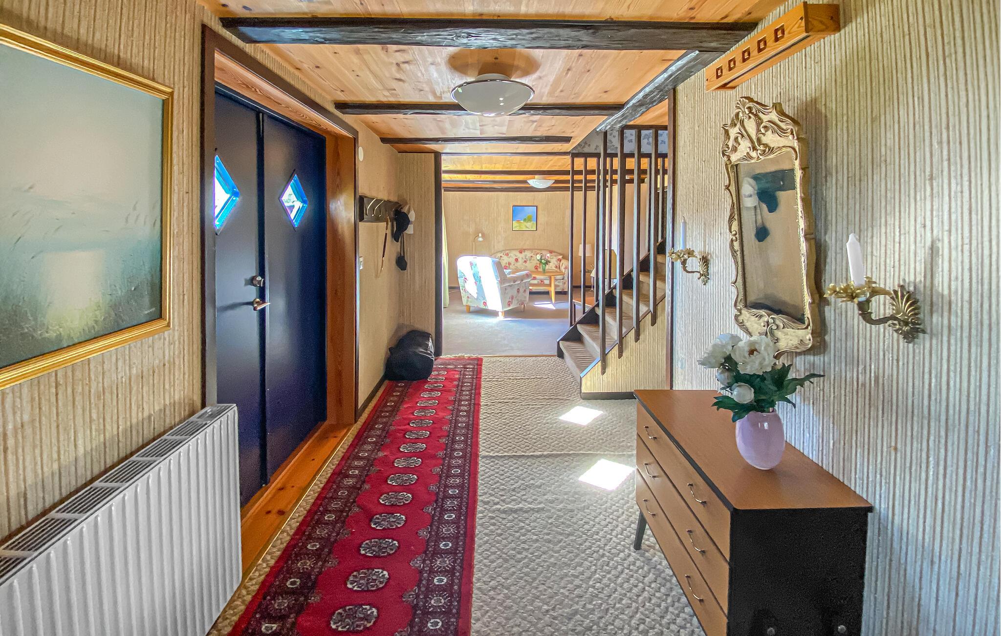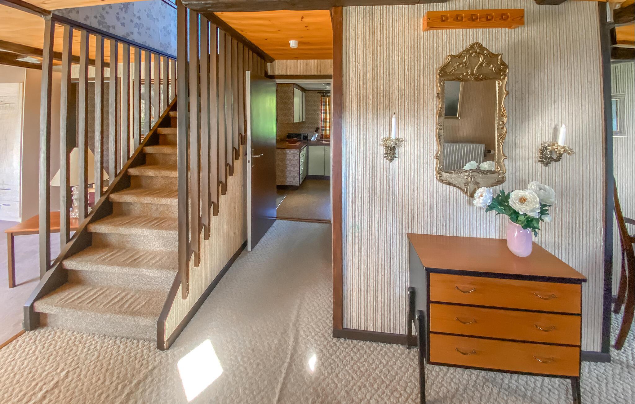 Dette rustikt indrettede hus med sine glade farvetoner er som skabt til en fornøjelig pause fra hverdagen. Sofaen indbyder om aftenen til hyggelige stunder med et glas vin, mens siddegruppen med blomstermønster egner sig perfekt til en kaffepause. Uanset om I vil snakke sammen eller lave mad, er det jer, der bestemmer dagens rytme.