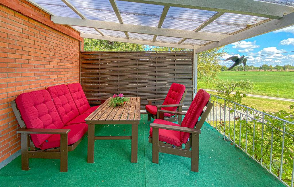 Beskyttet mod vind og vejr er den overdækkede terrasse det ideelle sted til et fælles måltid under åben himmel. Herfra kan I nyde den beroligende udsigt ud over det vidtstrakte landskab og læne jer afslappet tilbage. Afslut dagen i godt selskab med en hyggelig grillaften.