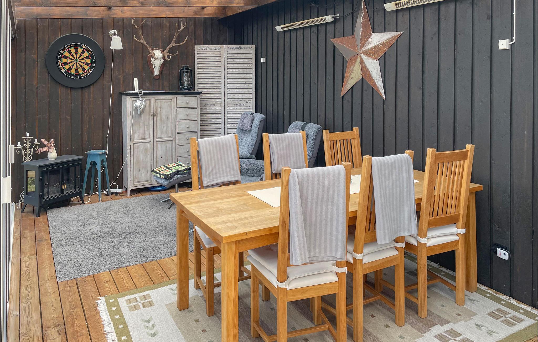 Den rummelige glaserede vinterhave og verandaen indbyder til at nyde milde sommeraftener med spektakulære solnedgange. Lej og hyr cykler eller en robåd, så I kan omringe søen eller padle ud. Kast jeres fiskestang eller dyk ned i det forfriskende vand. Kun et par hundrede meter fra boligen finder I en enkel badestrand med broer, gynger, rutsjebaner mv. til jeres børn.