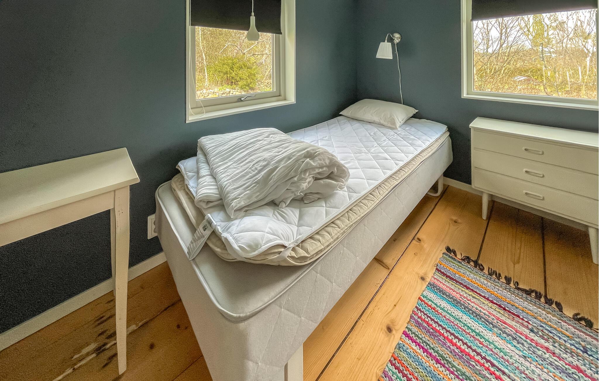 Velkommen til dette attraktive hus, der ligger i absolut naturskønne omgivelser tæt på Sverges vestlige kyst. Indvendigt emmer det af hygge med farverige tapeter, bløde møbler og et veludstyret køkken, hvor familiens kokke kan kræse om madlavningen efter en aktiv feriedag. Senere kan I hive brætspillene frem eller sætte jer godt til rette i den store sofa med snacks og en god film på tv'et, mens I lægger planer for de kommende dage.