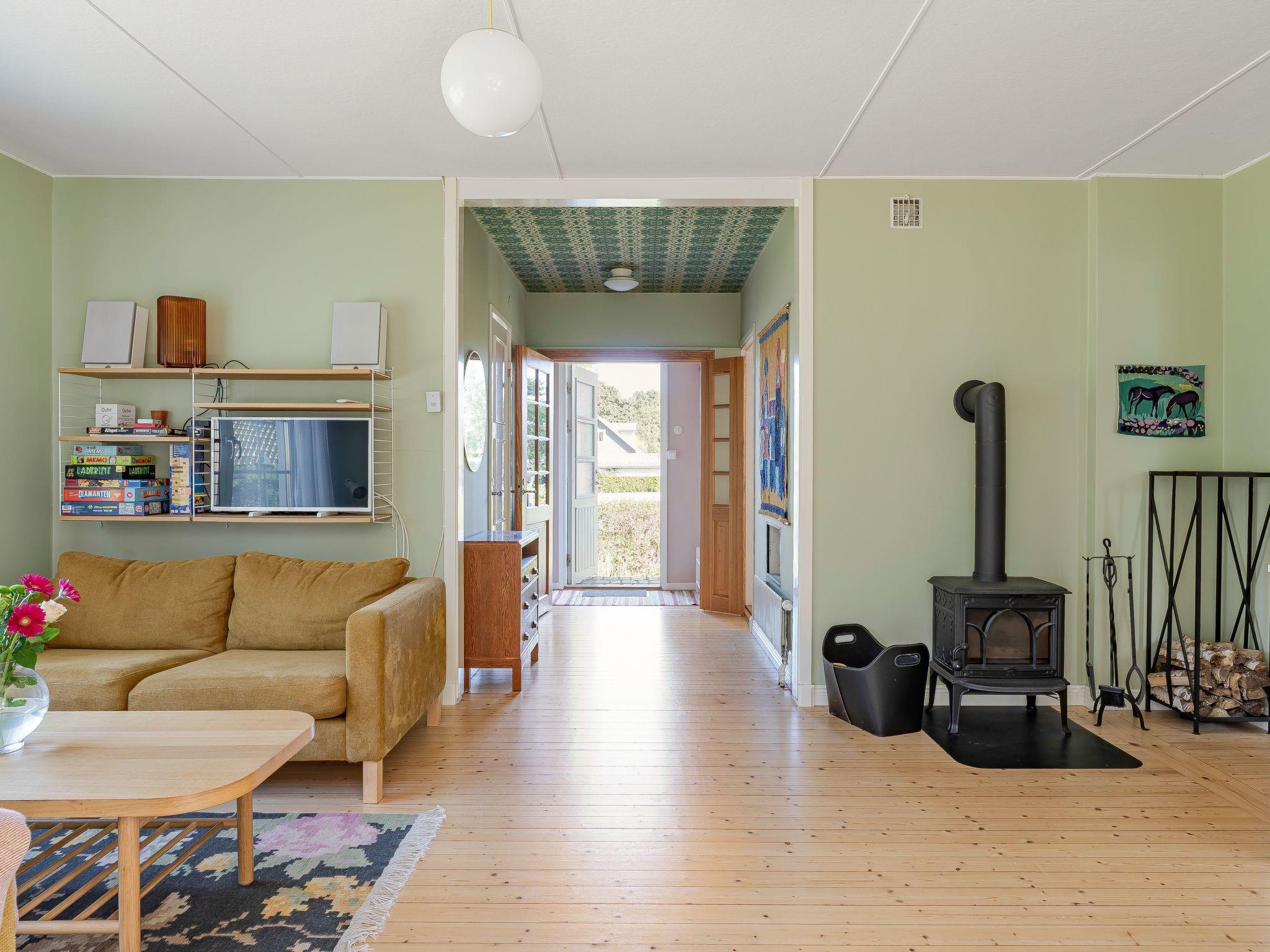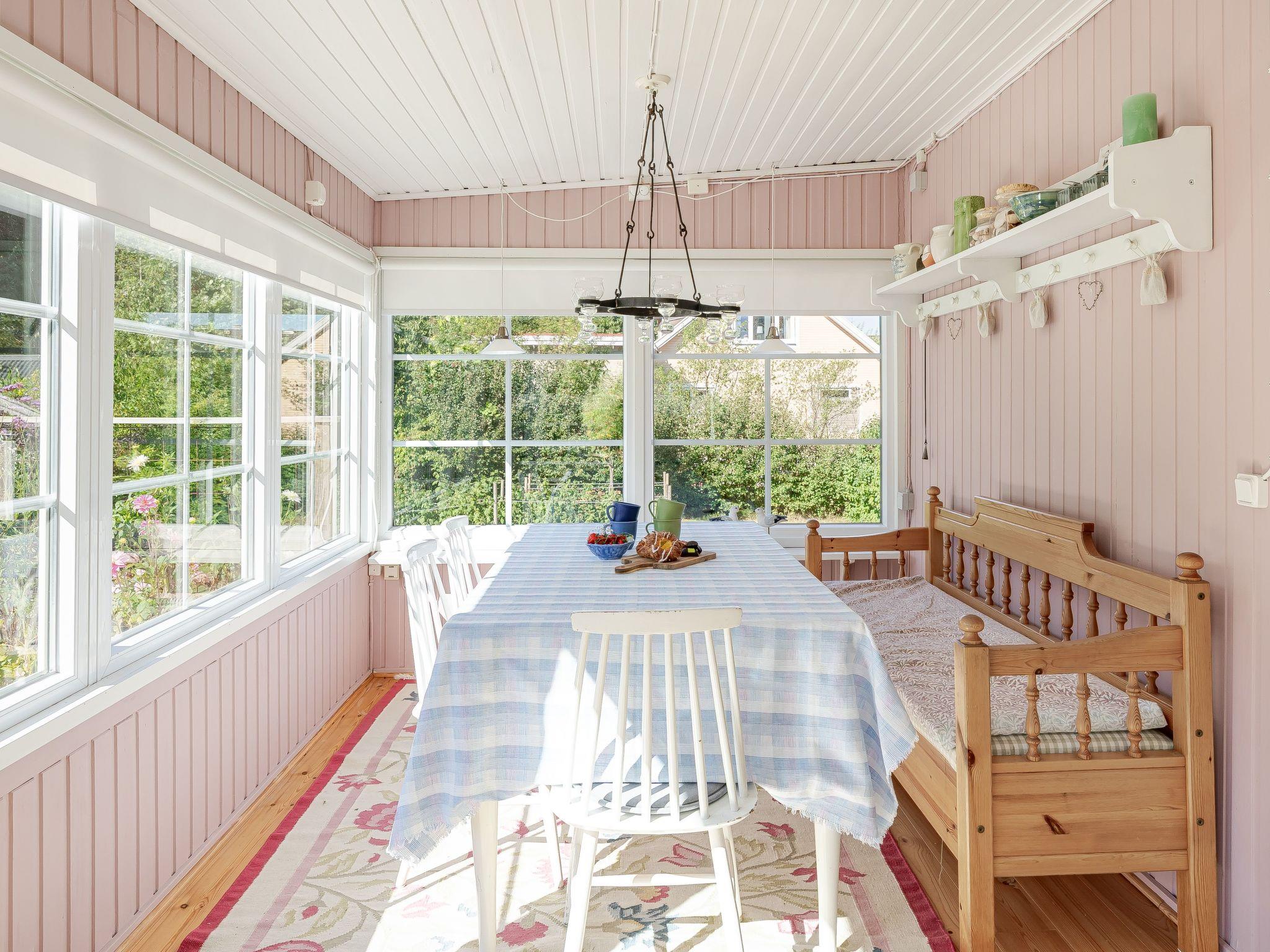 "Rosa Huset", 3-room house 70 m2. Beautiful and cosy furnishings: living/sleeping room with 1 double sofabed, Scandinavian wood stove and TV. 1 room with 1 x 2 bunk beds, 1 double bed. 1 room with 1 double bed. Kitchen (dishwasher, 4 ceramic glass hob hotplates, toaster, kettle, microwave, freezer, electric coffee machine) with dining table. Shower/WC. Heating. Wooden floors. Terrace furniture, barbecue (portable). Facilities: washing machine, dryer. Please note: one double bedroom is outside the apartment. Non-smoking house. Smoke alarm.