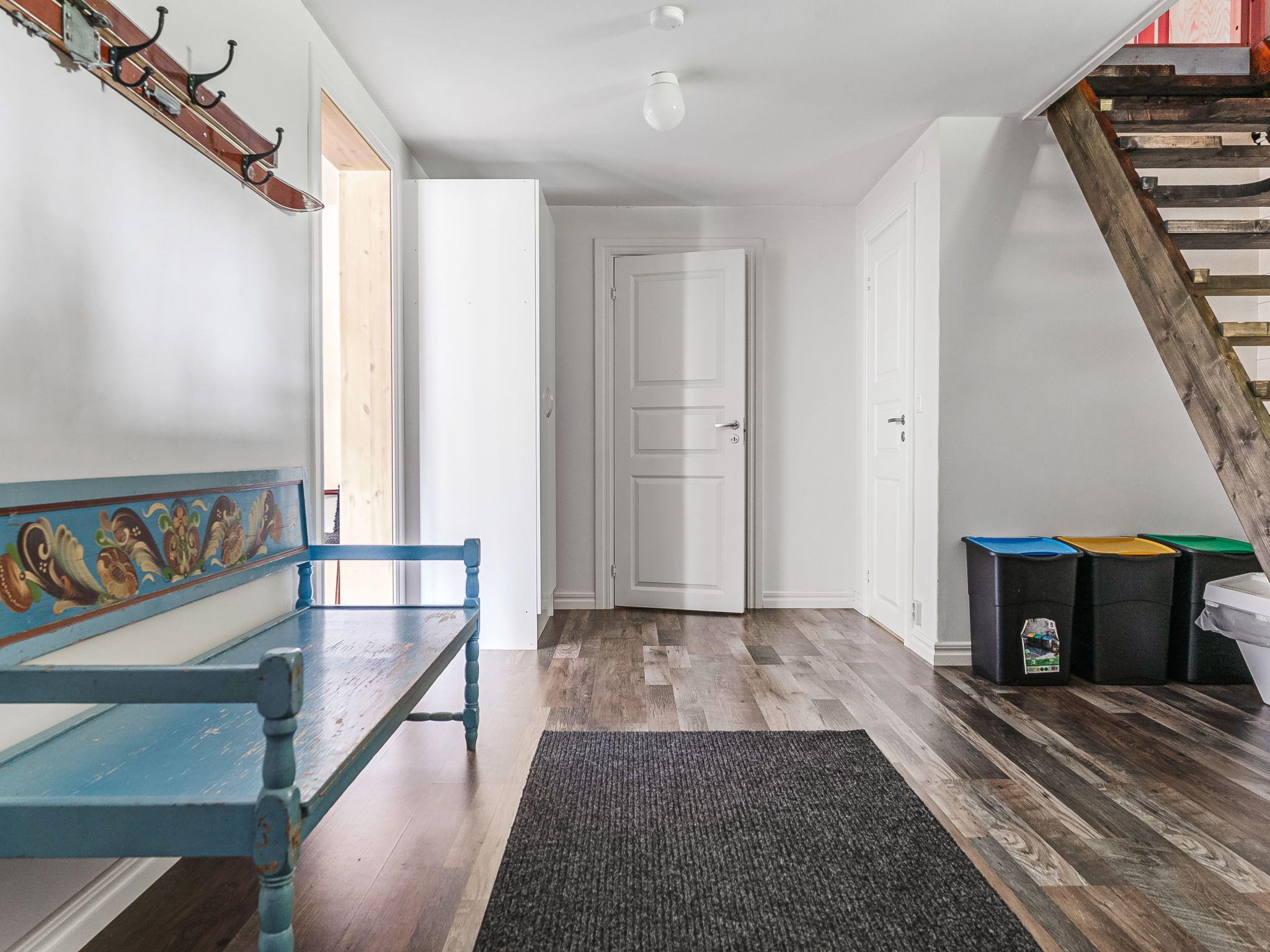 "Kvisthån Tallen", 6-room house 110 m2 on 3 levels. Object suitable for 6 adults + 2 children. Cosy and wooden furniture furnishings: dining room with open-hearth fireplace and dining table. 2 rooms, each room with 1 x 2 bunk beds. 1 room with 1 double bed. Open kitchen (3 hot plates, dishwasher, microwave, freezer, electric coffee machine). Shower/WC. Electric heating. On the lower ground floor: (steep stair) living room with open-hearth fireplace, TV and DVD. Shower/WC, Sauna. Electric heating. Upper floor: (ladder) open gallery with sloping ceilings, ceiling height 40 - 150 cm with 2 sleeping facilities. Wooden floors. Facilities: washing machine, iron, children's high chair. Internet (WiFi, free). Please note: non-smokers only. Maximum 1 pet/ dog allowed. Smoke alarm, fire extinguisher. Freezer approx. 45 l. Instead of an enclosed bedroom, some sleeping areas are located in an open-plan area (gallery, alcove, etc.). SE06291