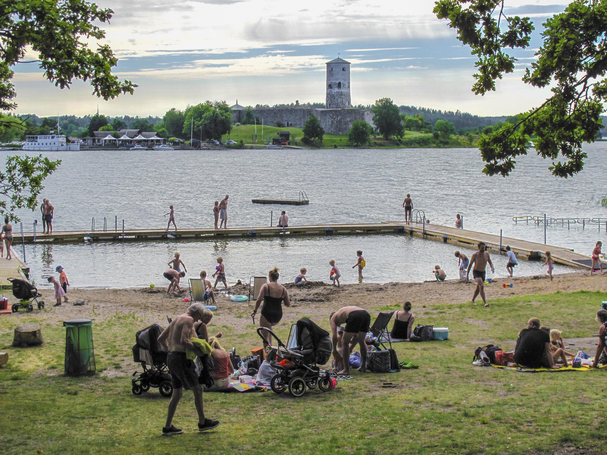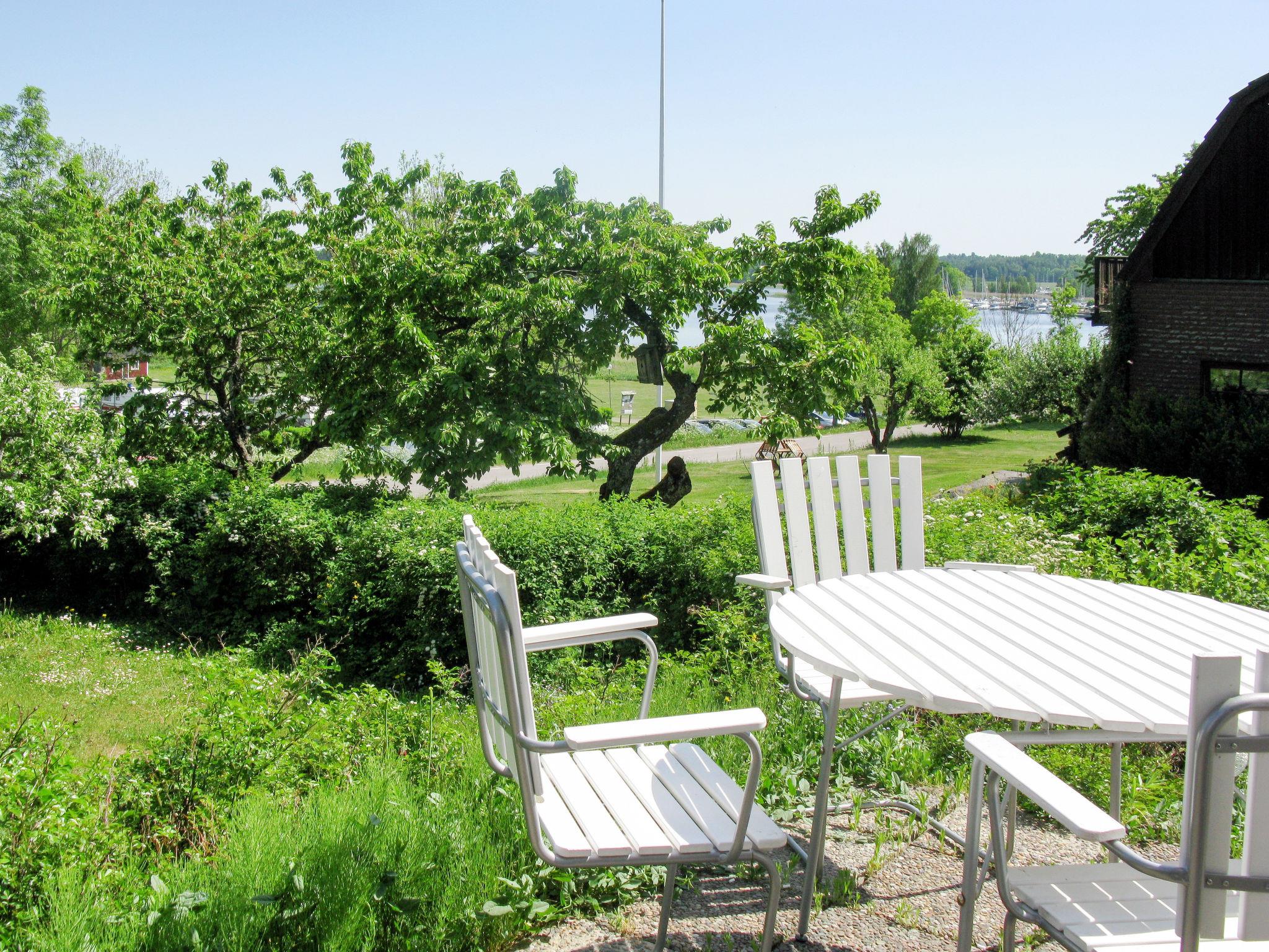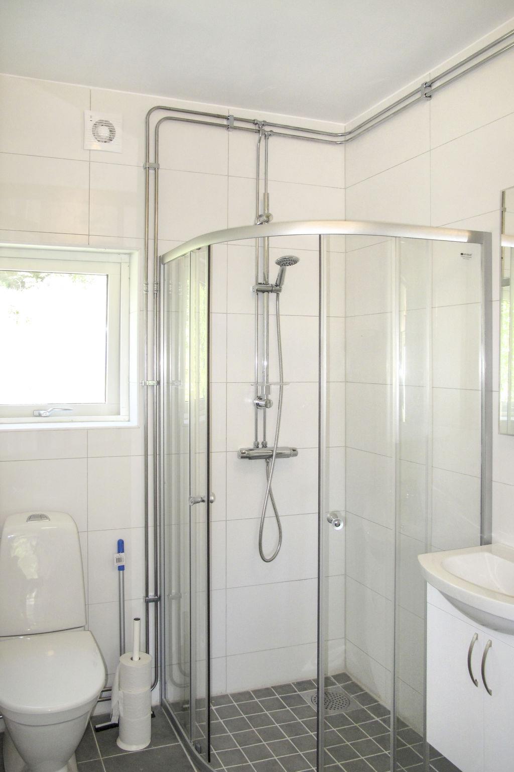 "Stegeborg Sjöstugan", 2-room semi-detached house 60 m2 on 2 levels. Object suitable for 2 adults + 2 children. Bright, cosy furnishings: living room with sliding door with Scandinavian wood stove and satellite TV. Exit to the terrace. Small, open kitchen (oven, 4 induction hot plates, toaster, kettle, microwave, freezer, electric coffee machine) with dining table. Shower/WC. Electric heating. Upper floor: 1 room with 1 bed and 1 double bed (160 cm, length 200 cm). Terrace. Terrace furniture, barbecue (portable). Facilities: iron, baby cot. Please note: non-smoking house. Smoke alarm, fire extinguisher. Freezer approx. 60 l.
