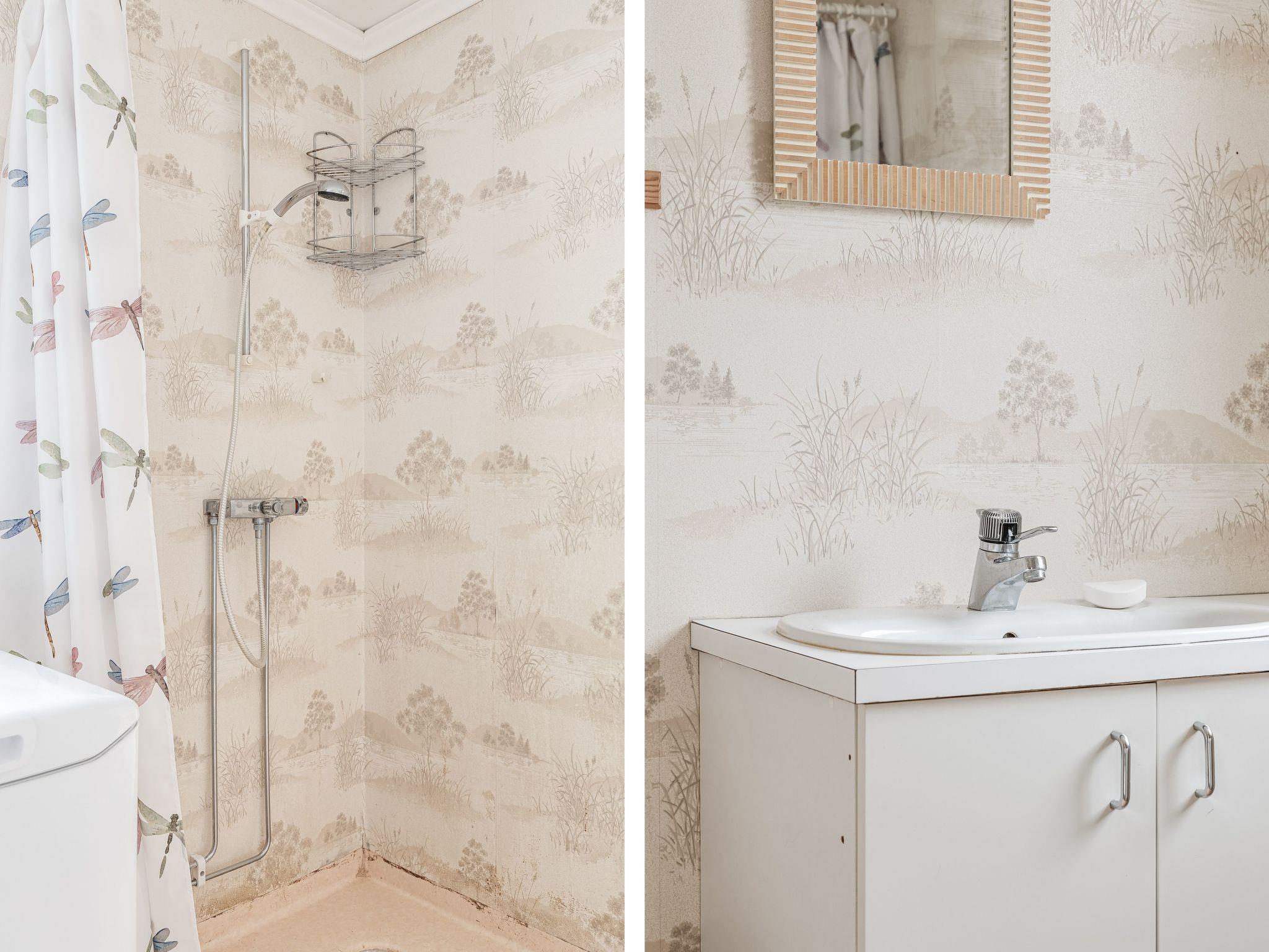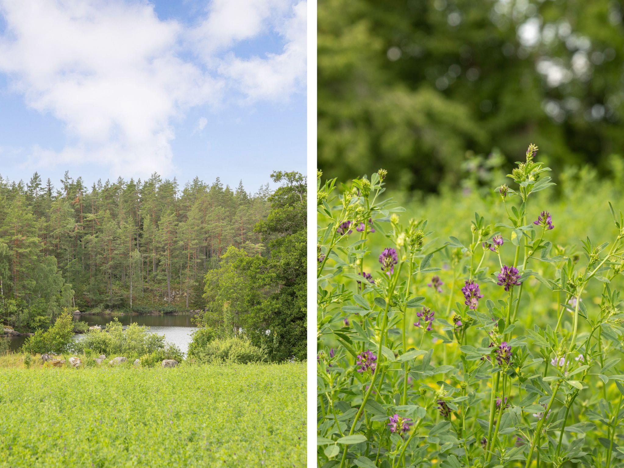 "Skogstorpet", 2-room house 60 m2. Practical furnishings: living/sleeping room with 1 sofabed and Scandinavian wood stove (only for decoration). 1 room with 2 beds. Open kitchen (4 hot plates, oven, toaster, microwave, freezer, electric coffee machine) with dining table. Shower/WC. Electric heating. Terrace partly roofed. Facilities: Internet (WiFi). Please note: non-smoking house.