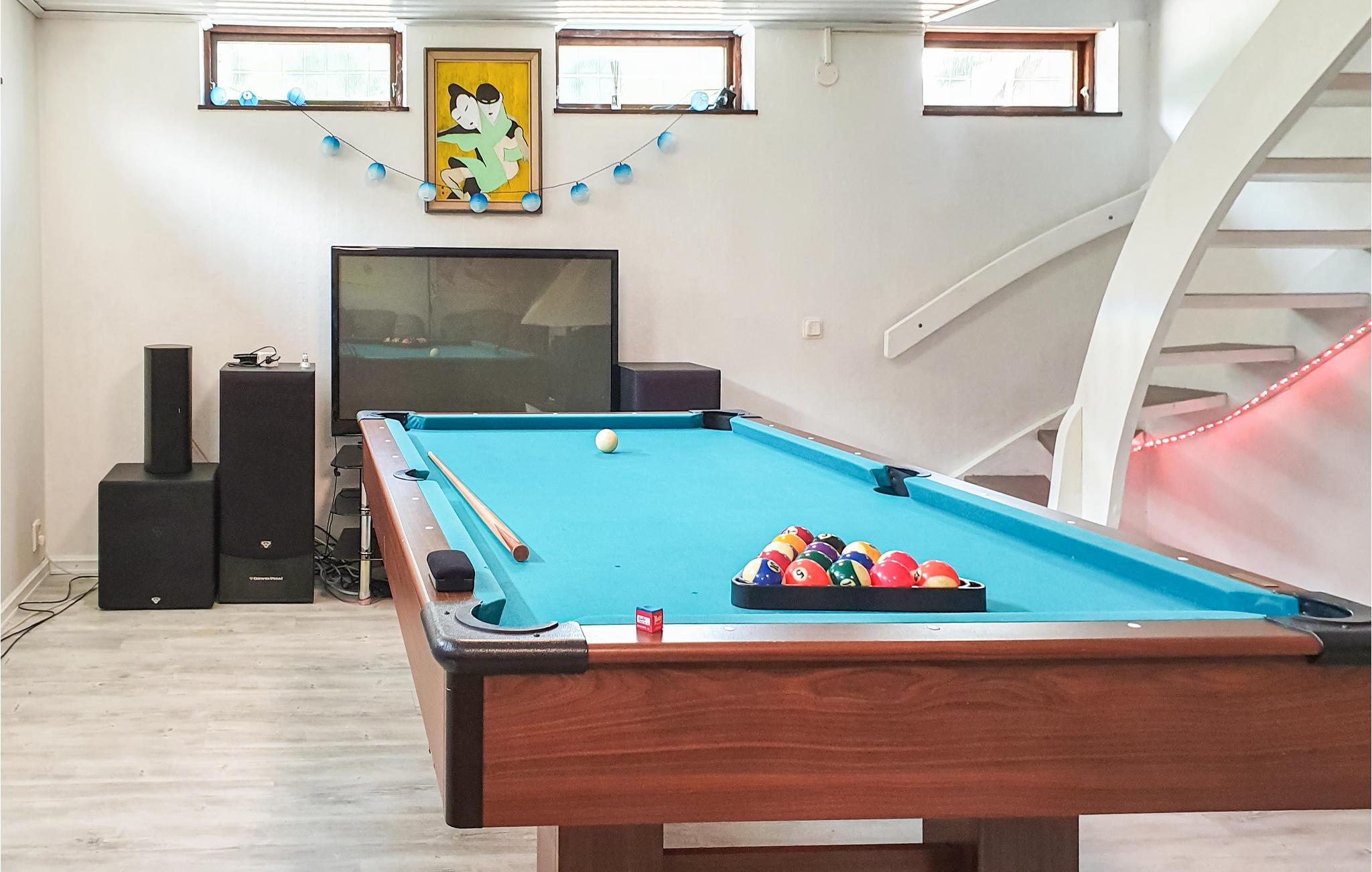 Dette rummelige hus er det ideelle sted for en stor familie eller for flere familier at tilbringe ferien. Her er der plads til at bruge tid sammen med et spil billard, en sjov film med varme fra pejsen eller et hyggeligt brætspil for hele selskabet.