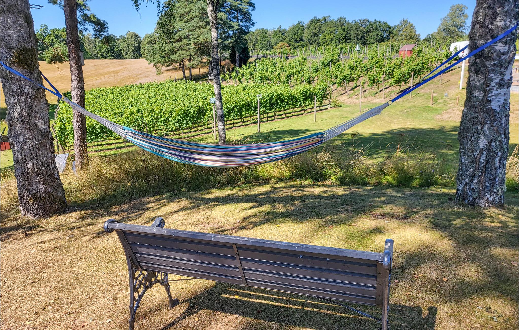 Denne fine, unikke bolig er placeret på Skånes nordligste vingård. Her har I udsigt til markerne og kan følge det daglige arbejde på en svensk vingård, mens I slapper af. Huset er rummeligt og meget personligt indrettet. Den hyggelige stue lægger op til aftener med brætspil og en spændende serie i fjernsynet. Der er også fine og hyggelige hjørner i huset, hvor man kan læne sig tilbage i en lænestol med en bog. Der er også en imponerende samling af kogebøger og vinbøger, som kan bruges, når I skal lægge jer fast på aftenmenuen. Grillen og terrassen med udsigt til vinmarkerne og floden bliver faste ingredienser til de lune sommeraftener.