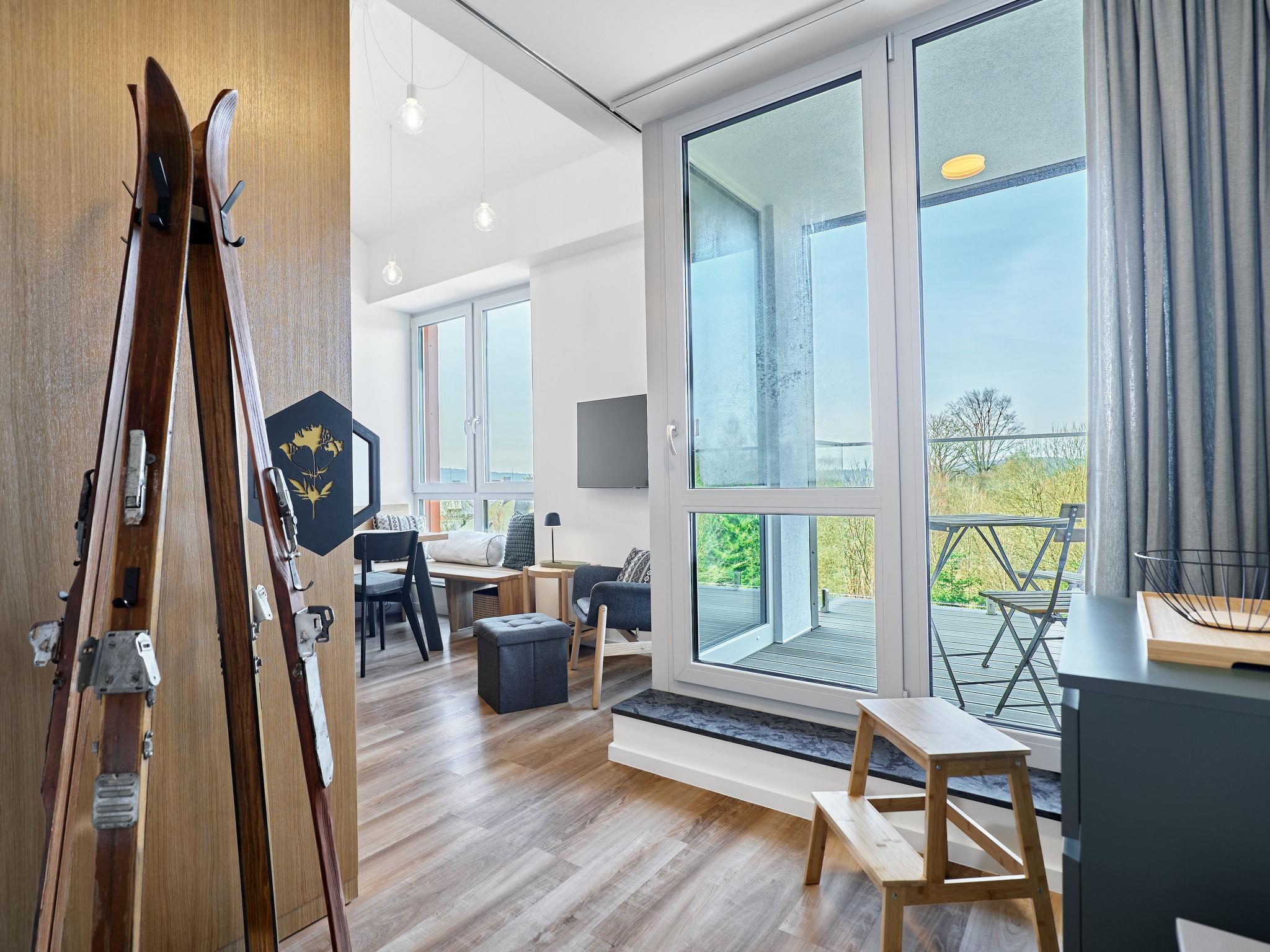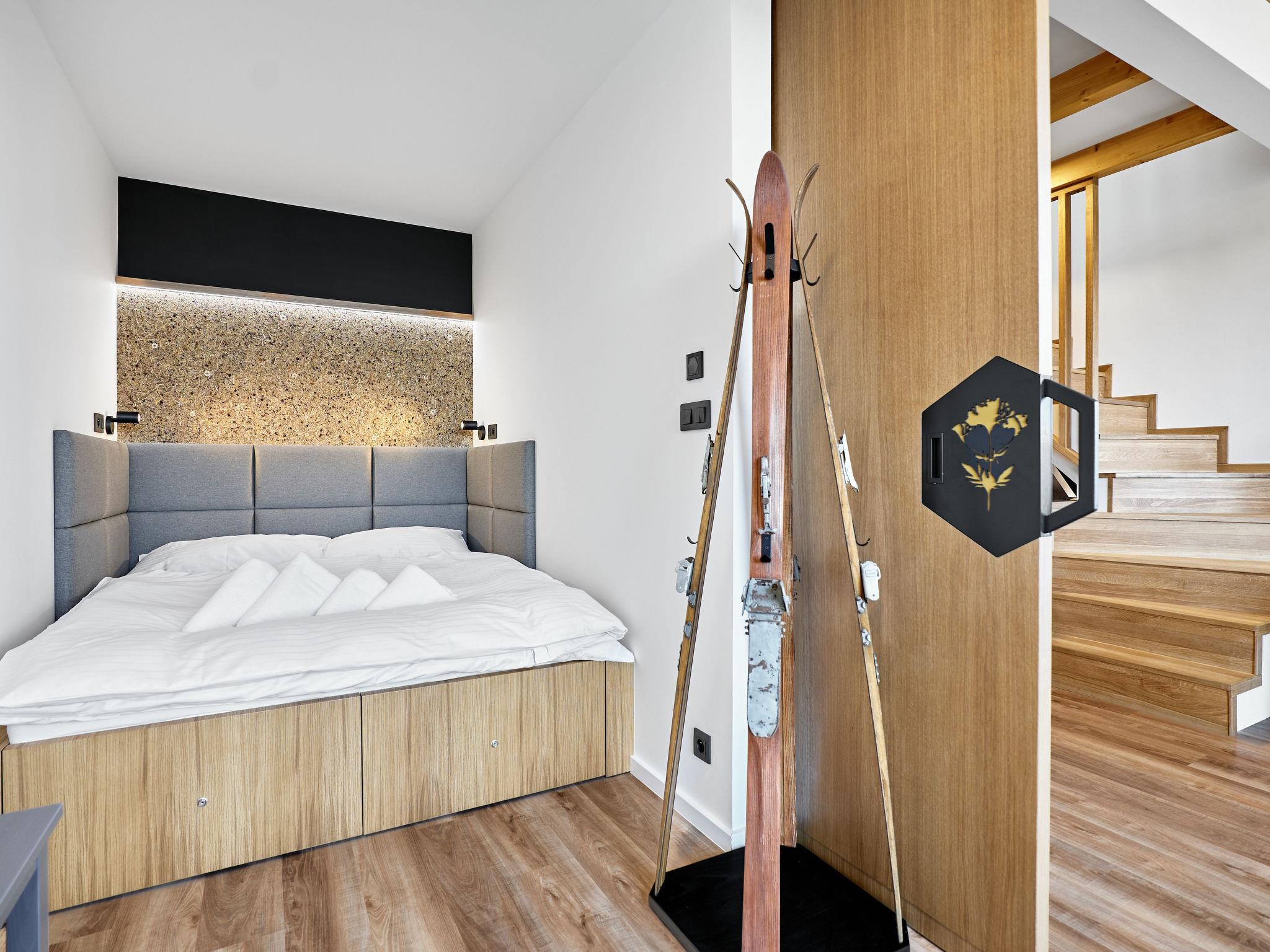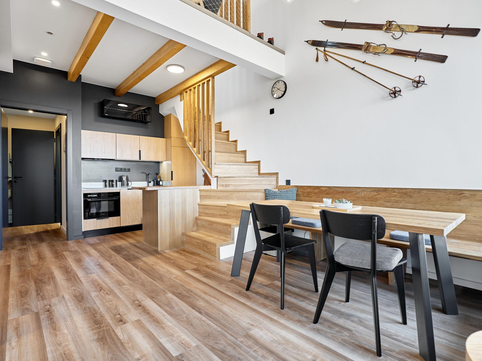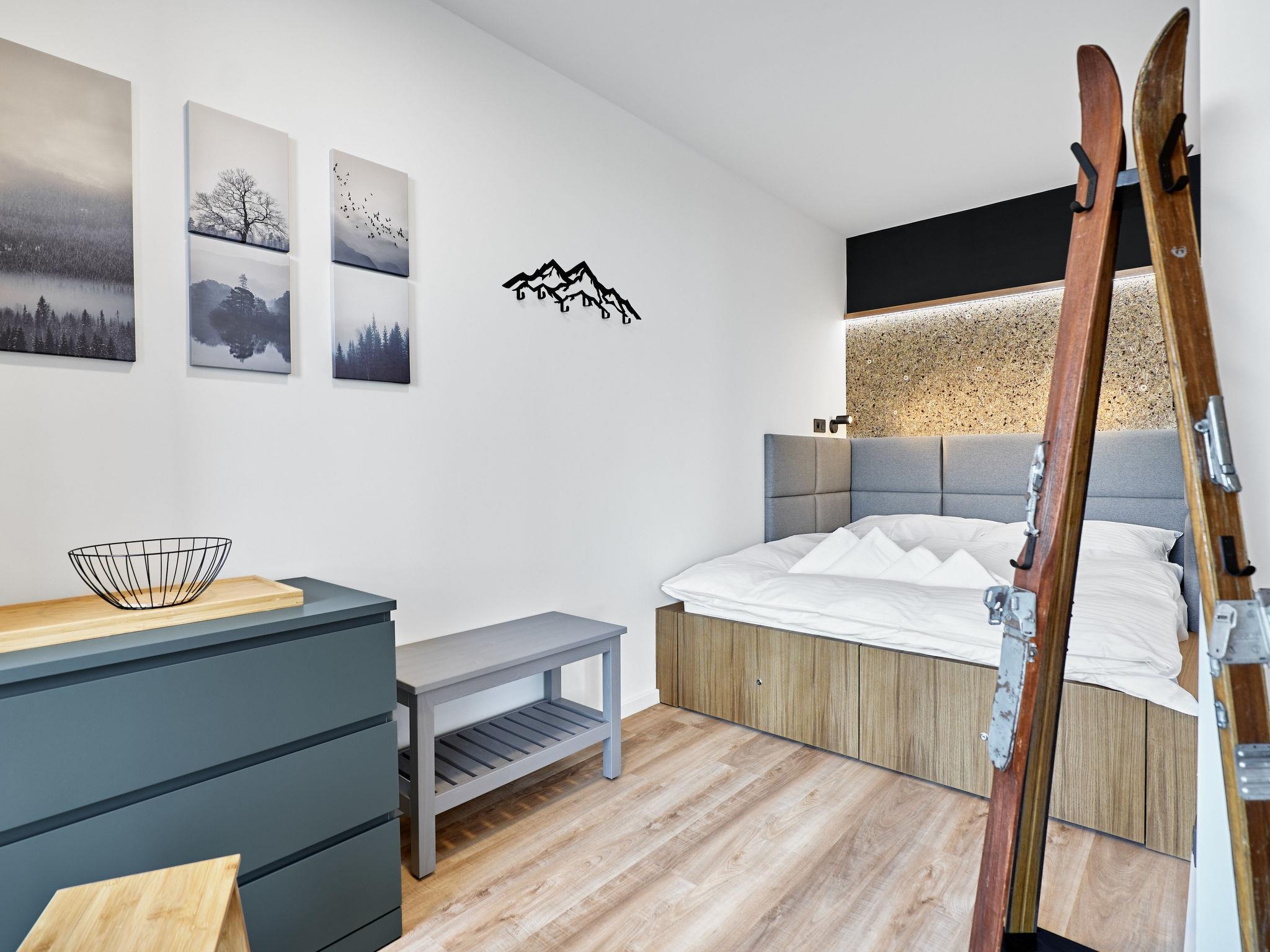 Modern apartment block "Dum Sedmnácti Bylin", 4 storeys, renovated in 2024. On the outskirts Abertamy, 500 m from the skiing area. In the complex: sauna (extra). Lift, central heating system, laundry. Storeroom available. Parking at the house. Grocery 2.5 km, restaurant 2.5 km, café 2.5 km, bus stop "Abertamy, námestí" 170 m, railway station "Pernink" 4 km, outdoor swimming pool 10 km. Walking paths from the house, cycle lane 10 m, ski lift, slopes, ski rental 500 m, cross country ski track 100 m, children's playground 500 m. Nearby attractions: Krušnohorská lyžarská magistrála, Stezka Ceskem, Ježíškova cesta, Boží Dar, Aqua Centre Agricola/Jáchymov 10 km, Oberwiesetnhal (DE) 13 km, Karlovy Vary 20 km, Annaberg-Buchholz (DE) 35 km. Well-known ski regions can easily be reached: Abertamy - Plešivec 500 m, Boží Dar - Neklid - Klínovec 10 km, Fichtelberg 13 km.