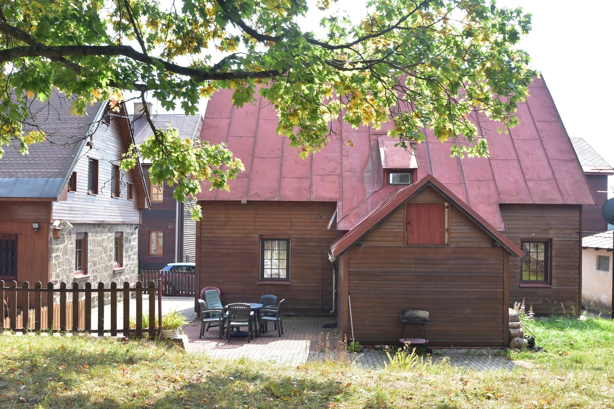 Dette rummelige, kæledyrsvenlige feriehus i Abertamy, Vestbøhmen, kan komfortabelt rumme op til 8 gæster fordelt på fire soveværelser. Beliggende lige over den tyske grænse, tilbyder det en privat have og grillplads - perfekt til at slappe af efter en aktiv dag. Om sommeren kan du nyde naturskønne vandrestier gennem Ertsbjergene, mens vinteren byder på adgang til skiløb i Oberwiesenthal eller Klinovec, med 10 skilifter, der åbner det største skiområde i regionen. Byens centrum, almindelige butikker og flere restauranter ligger alle inden for en kort gåtur på 400-500 meter. Den nærmeste skilift og offentlige swimmingpools ligger omkring 10 km væk. Indenfor har hjemmet et moderne, fuldt udstyret køkken og et legerum med bordfodbold og billard. Udenfor er terrassen møbleret til at nyde den friske bjergluft og udsigt til haven.