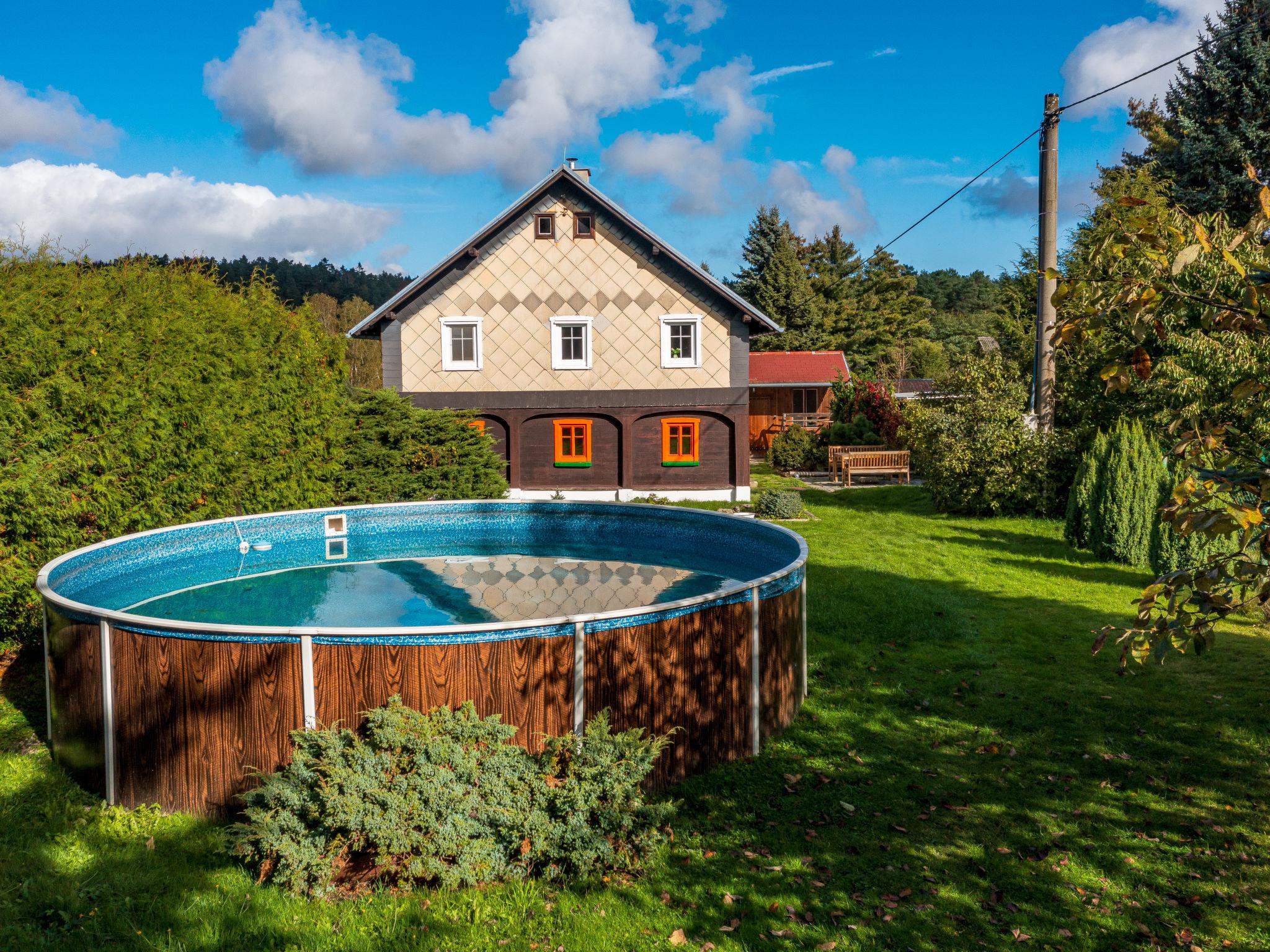 7 km from Decín: Very beautiful country house "Kámen", detached, built in 1875, renovated in 2019. In a quiet, sunny position, 200 m from the edge of the forest. Private: garden 1'600 m2, swimming pool (above ground) (5,5 m diameter, seasonal availability: 01.Jun. - 30.Aug.). Patio, pergola, barbecue. In the house: storage room for bicycles. Parking (for 3 cars) at the house. Grocery 300 m, shopping centre 9 km, restaurant 1.5 km, café 7 km, bus stop "Kámen" 250 m, railway station "Decín východ" 7 km, outdoor swimming pool 4.5 km, indoor swimming pool 8 km. Golf course (9 hole) 7 km, tennis 7 km, indoor tennis centre 7 km, minigolf 12 km, walking paths from the house 100 m, children's playground 450 m. Nearby attractions: vyhlídka Belveder 7 km, Decín - zoo, zámek, aquapark 9 km, Hrensko, Pravcická brána 11 km, Decínský Snežník, Bad Schandau, zríceniny hradu Falkenštejn, Šunštejn 20 km, Liberec, Dráždany 70 km. Hiking paths: kanon Labe, Jetrichovické skály, Ceské Švýcarsko/Böhmische Schweiz.