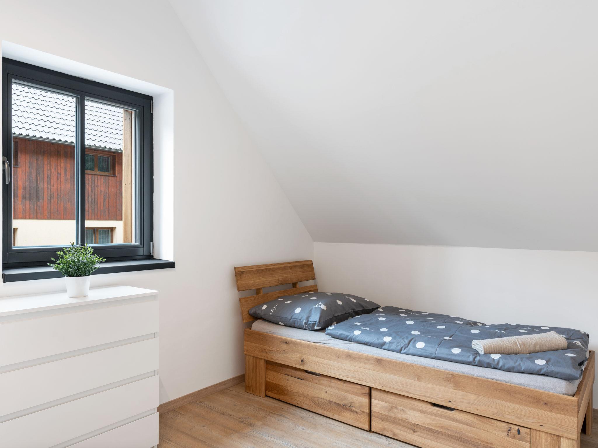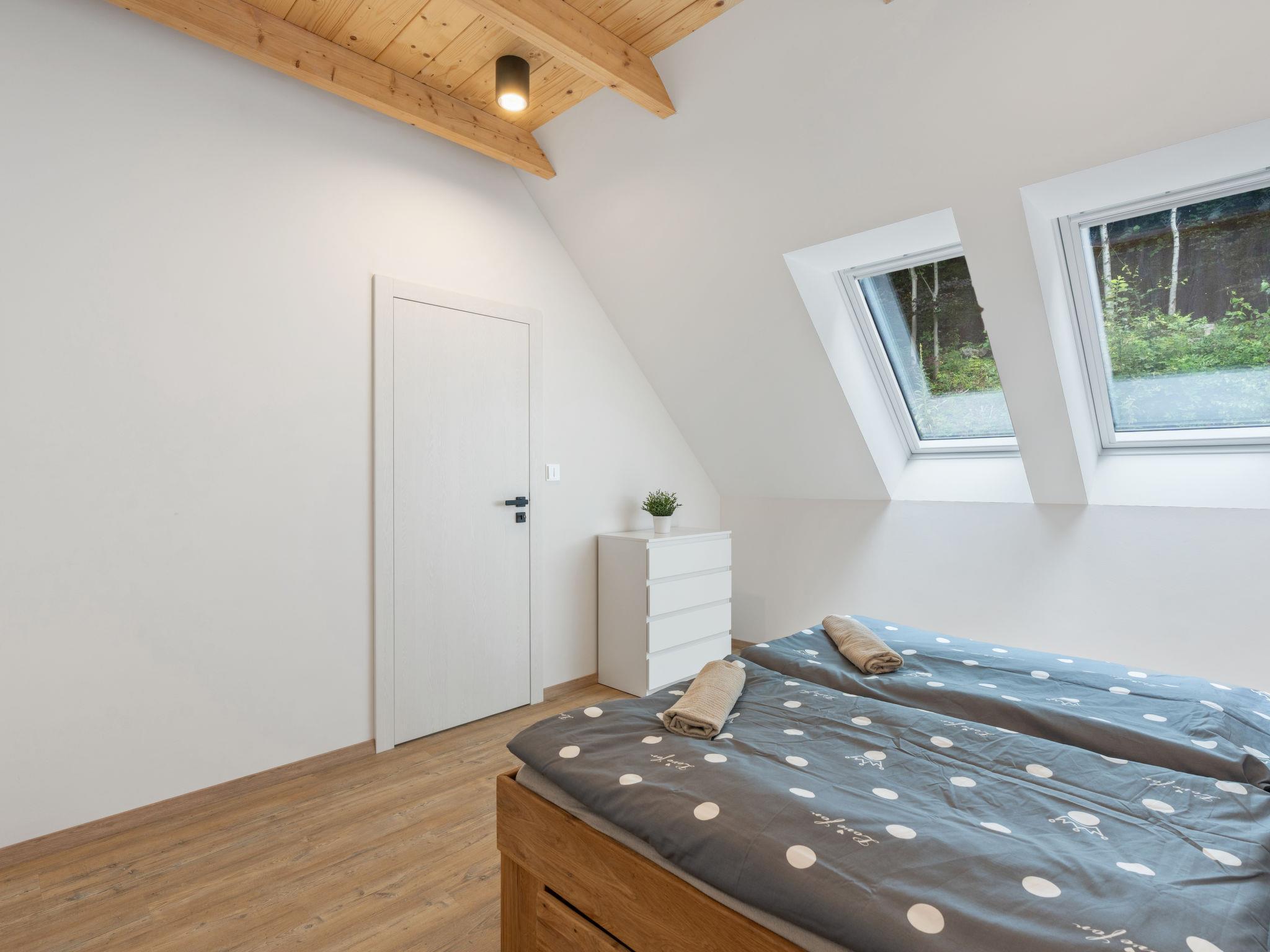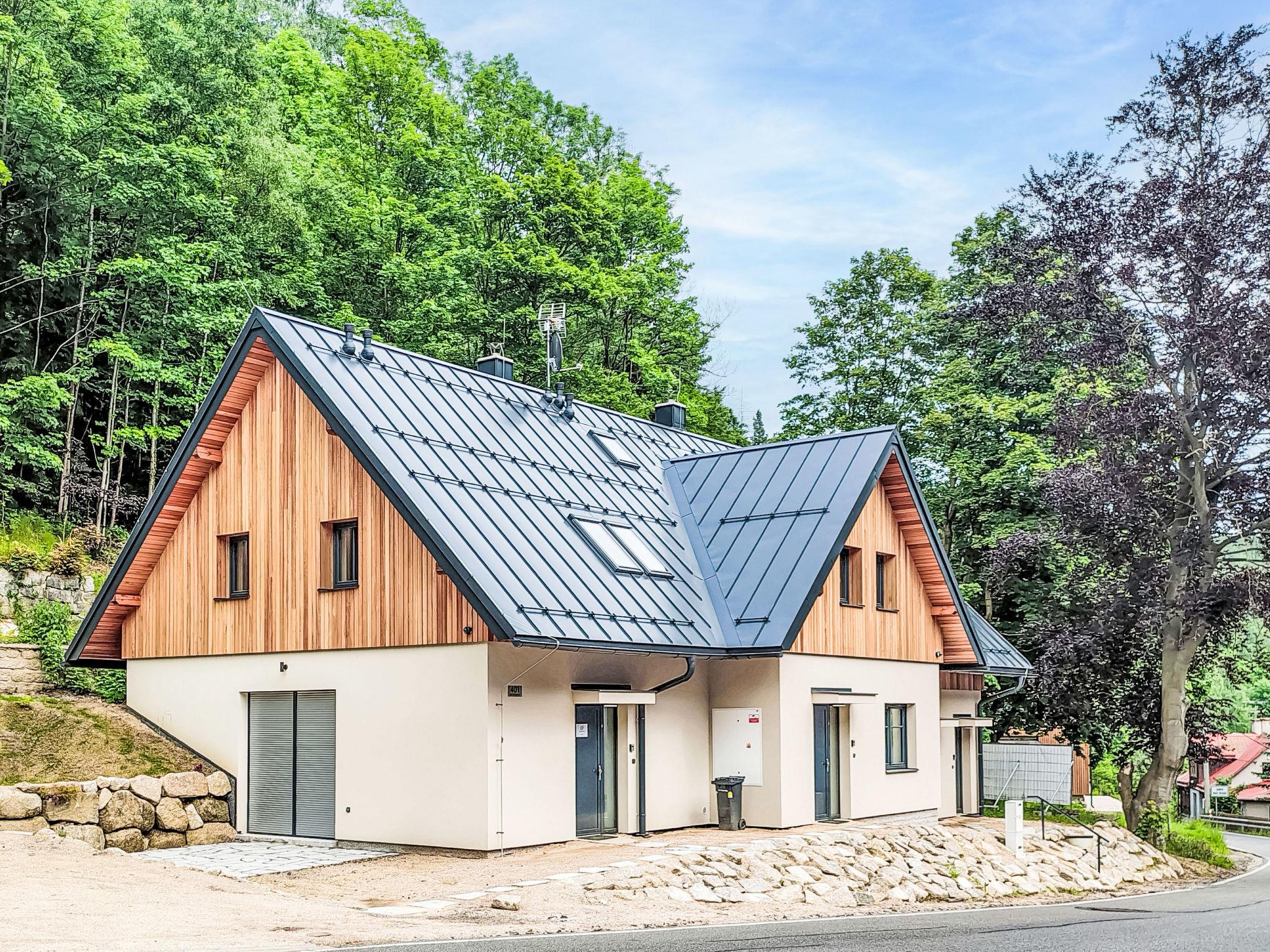 Modern, beautiful chalet, 2 storeys, built in 2024. 4 apartments in the property. 800 m from the skiing area. Private: terrace, garden furniture, barbecue, parking at the house. Shop, grocery 600 m, supermarket 8 km, shopping centre 8 km, restaurant, café 600 m, pub garden 1 km, bus stop "Bedrichov, vodárna" 800 m, railway station "Jablonec nad Nisou" 10 km, grass beach "Jablonec nad Nisou" 8 km, indoor swimming pool 10 km, bathing lake "vodní nádrž Bedrichov" 5 km. Golf course (18 hole) 18 km, tennis 1 km, riding stable 4 km, sports centre 1 km, walking paths from the house 1.5 km, cycle lane 100 m, ski lift, skisport facilities 800 m, slopes 1.5 km, ski rental 1.5 km, ski school 1.5 km, children's ski school 1.5 km, cross country ski track 2 km, children's playground 2 km. Nearby attractions: Discgolf, lanové centrum, bobová dráha 1.9 km, Rozhledna Královka 3 km, Prírodní rezervace Klikvová louka 2 km, Zoo, iQLANDIA, aquacen. Babylon Liberec 10 km, Rozhledna Bramberk 10 km, Jizerka 25 km, Hejnice, Lázne Libverda 35 km. Well-known ski regions can easily be reached: Bedrichov 2km, Severák 2800 m, Josefuv Dul 8 km, Tanvaldský Špicák 13 km, Ješted 20 km, Harrachov 30 km. Hiking paths: Naucná stezka Modré putování, Mravencí, Cerná Nisa, Jizerskohorské buciny (UNESCO) 34 km. Please note: suitable for families, suitable for seniors.