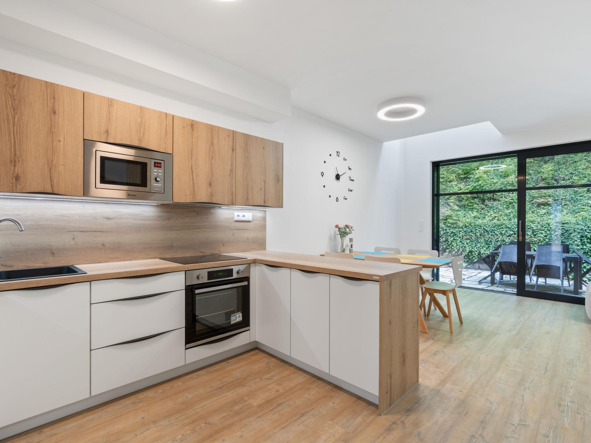 " U Buku 3", 3-room maisonette 100 m2 on 2 levels. Very modern and cosy furnishings: open living/dining room with 1 sofabed and open-hearth fireplace (only for decoration), dining table, TV and electric heating. Exit to the terrace. Kitchenette (oven, dishwasher, 4 ceramic glass hob hotplates, toaster, kettle, microwave, freezer). Sep. WC. Upper floor: (ladder), 1 room with sloping ceilings with 2 beds. 1 room with sloping ceilings with 1 bed and 1 double bed. Shower/WC. Electric heating. Terrace. Terrace furniture, box-room. Facilities: Internet (WiFi, free). Please note: suitable for families. Non-smokers only.