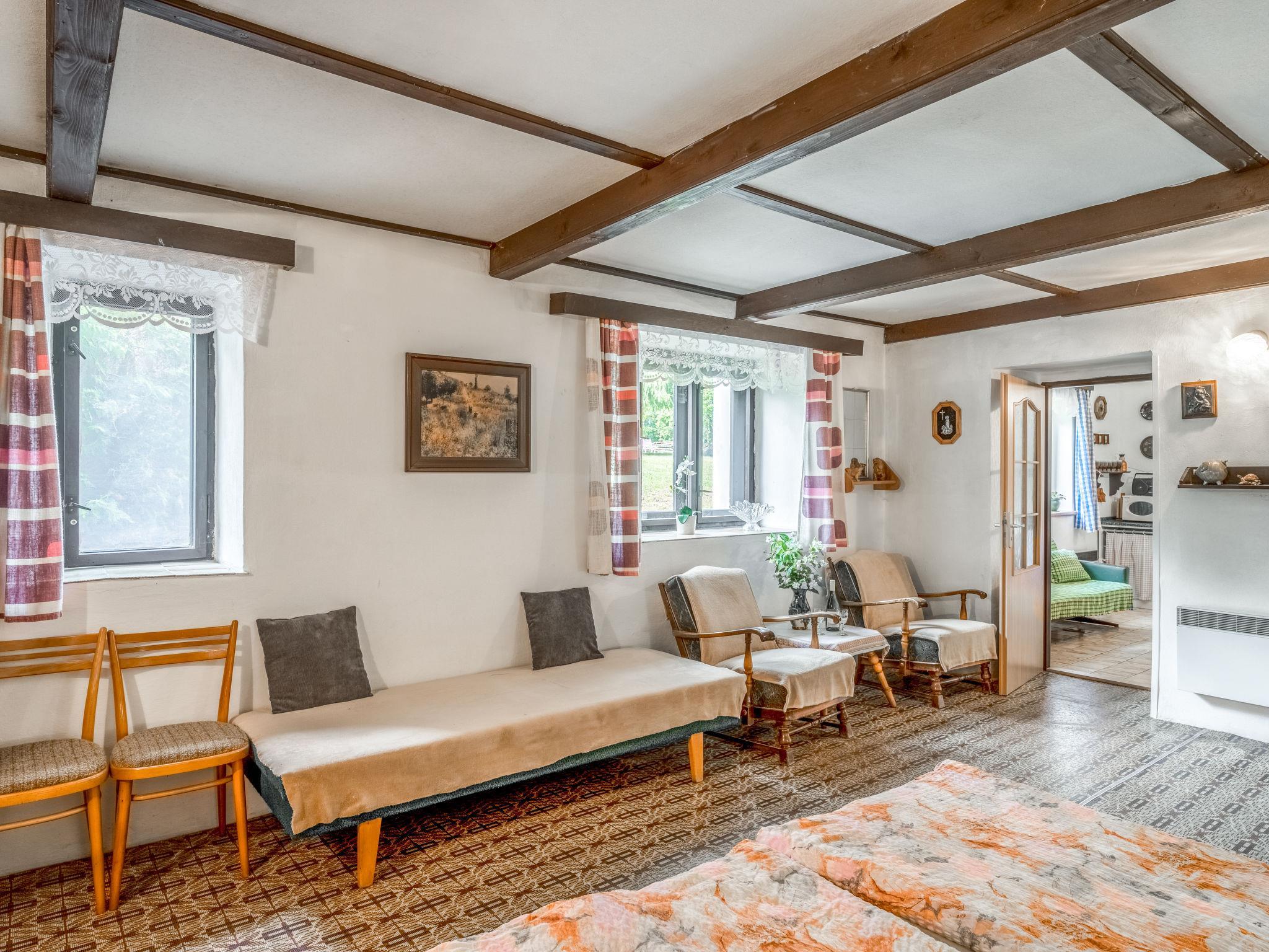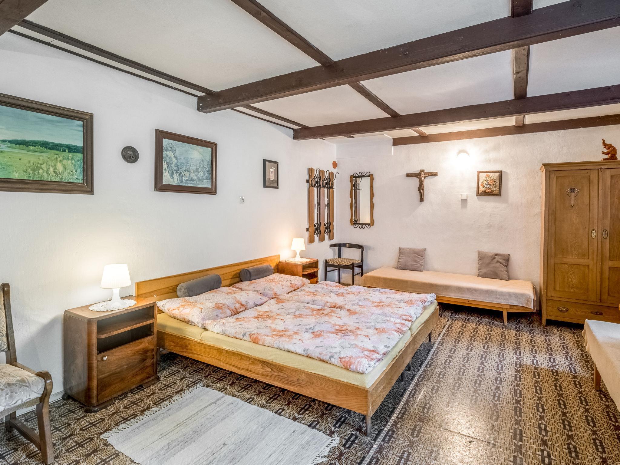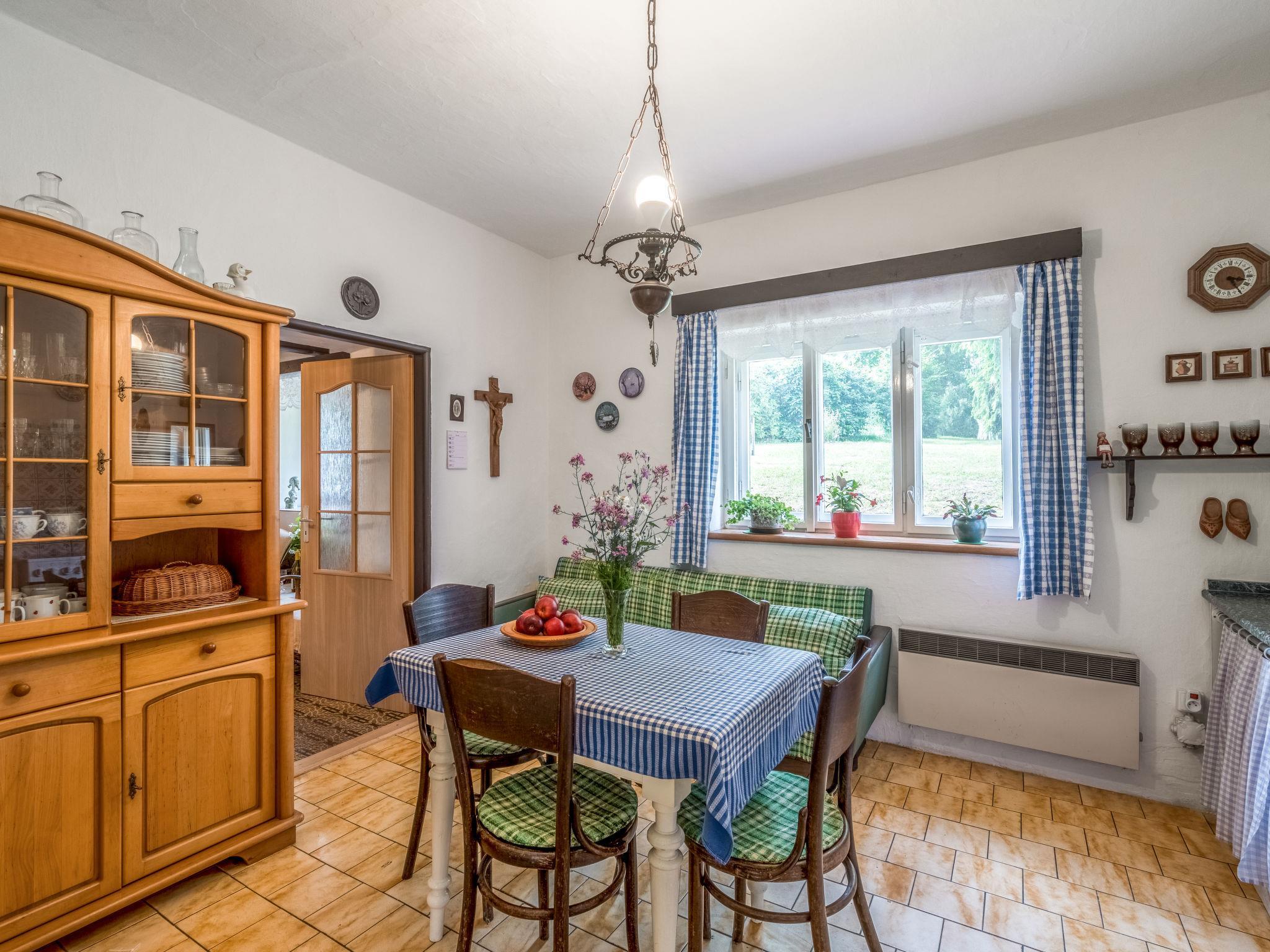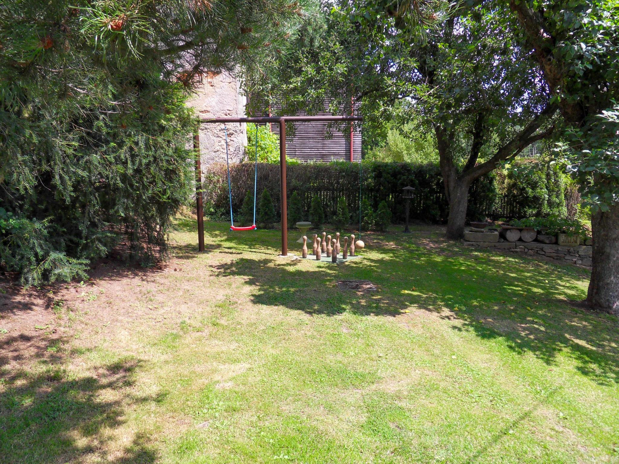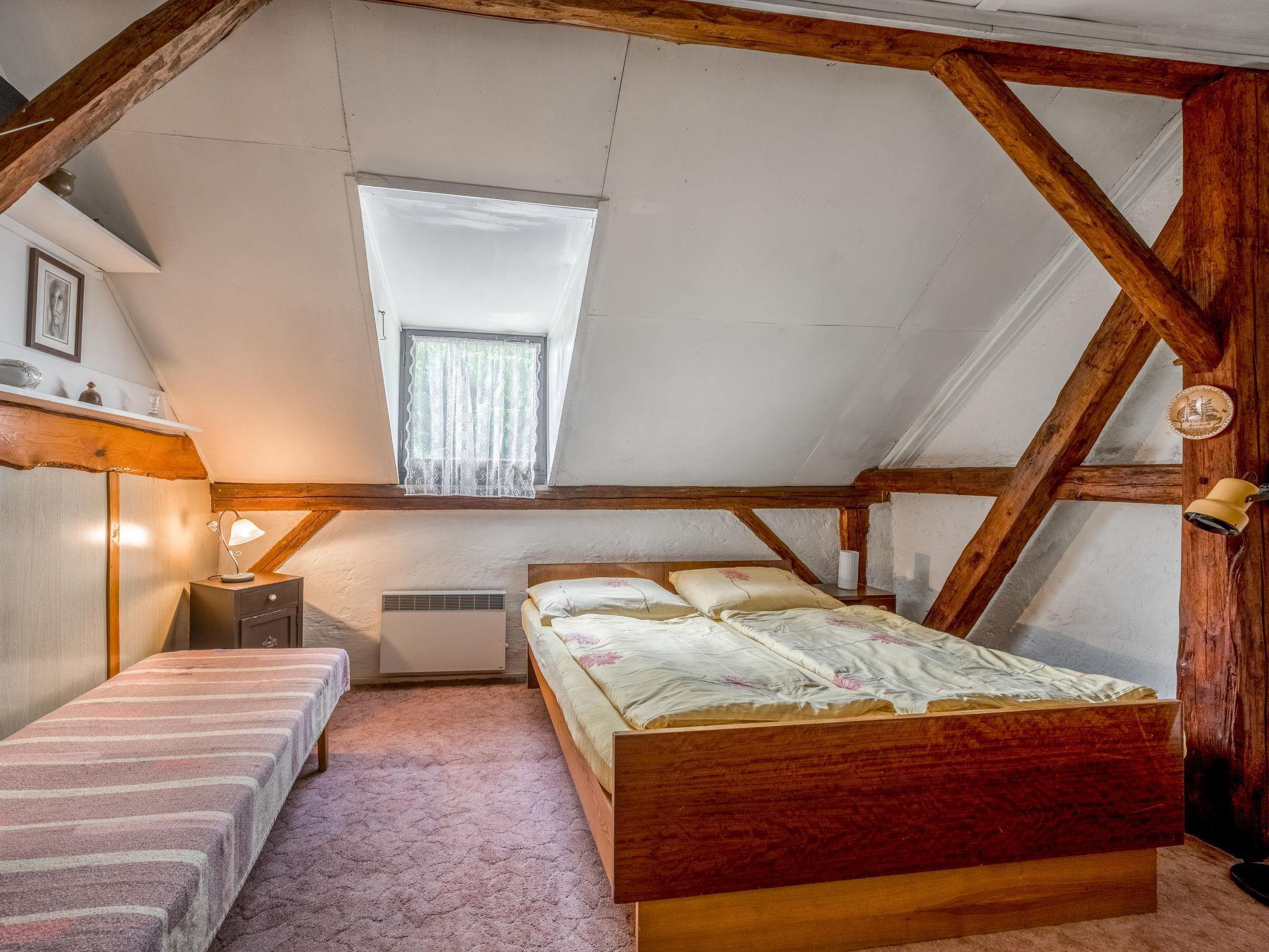 Újezd Svatého Kríže 3 km from Belá nad Radbuzou: Cosy country house "Újezd Svatého Kríže", 2 storeys, detached, built in 1620, renovated in 1990. In a sunny position, 10 m from the lake, in the countryside. Private: property 3'300 m2 (fenced), garden with lawn and trees. Table tennis, basketball, badminton, pergola, terrace, garden furniture, barbecue, children's playground (slide, swing, sandbox). In the house: trampoline, storage room for bicycles, washing machine, tumble dryer. Available: canoe. Parking (for 3 cars) on the premises. Grocery 300 m, supermarket 16 km, restaurant 3 km, café 4 km, bus stop "Belá n.Radb. Újezd Sv.Kríže" 200 m, railway station "Újezd Svatého Kríže" 400 m, outdoor swimming pool 2 km, indoor swimming pool 18 km. Walking paths from the house, cycle lane 5 m, ski lift 20 km, slopes 20 km, cross country ski track 20 km, children's playground 500 m. Nearby attractions: Belá nad Radbuzou 3 km, Pobežovice 11 km, prírodní park Valcha 12 km, Horšovský Týn, Jivjany keltské sídlište 17 km, Primda 19 km, Domažlice 26 km, Srbice ceské Stonehenge 28 km, Plzen 60 km. Well-known lakes can easily be reached: Babylon 28 km. Hiking paths: Svatojakubská cesta, stezka Sedmihorí, CHKO Ceský les, Drahotínský les.