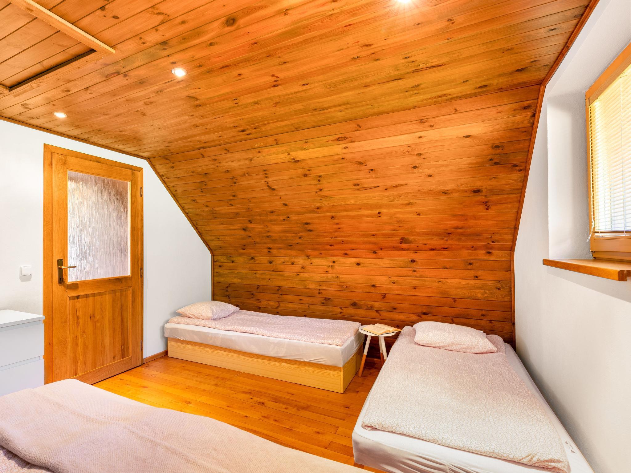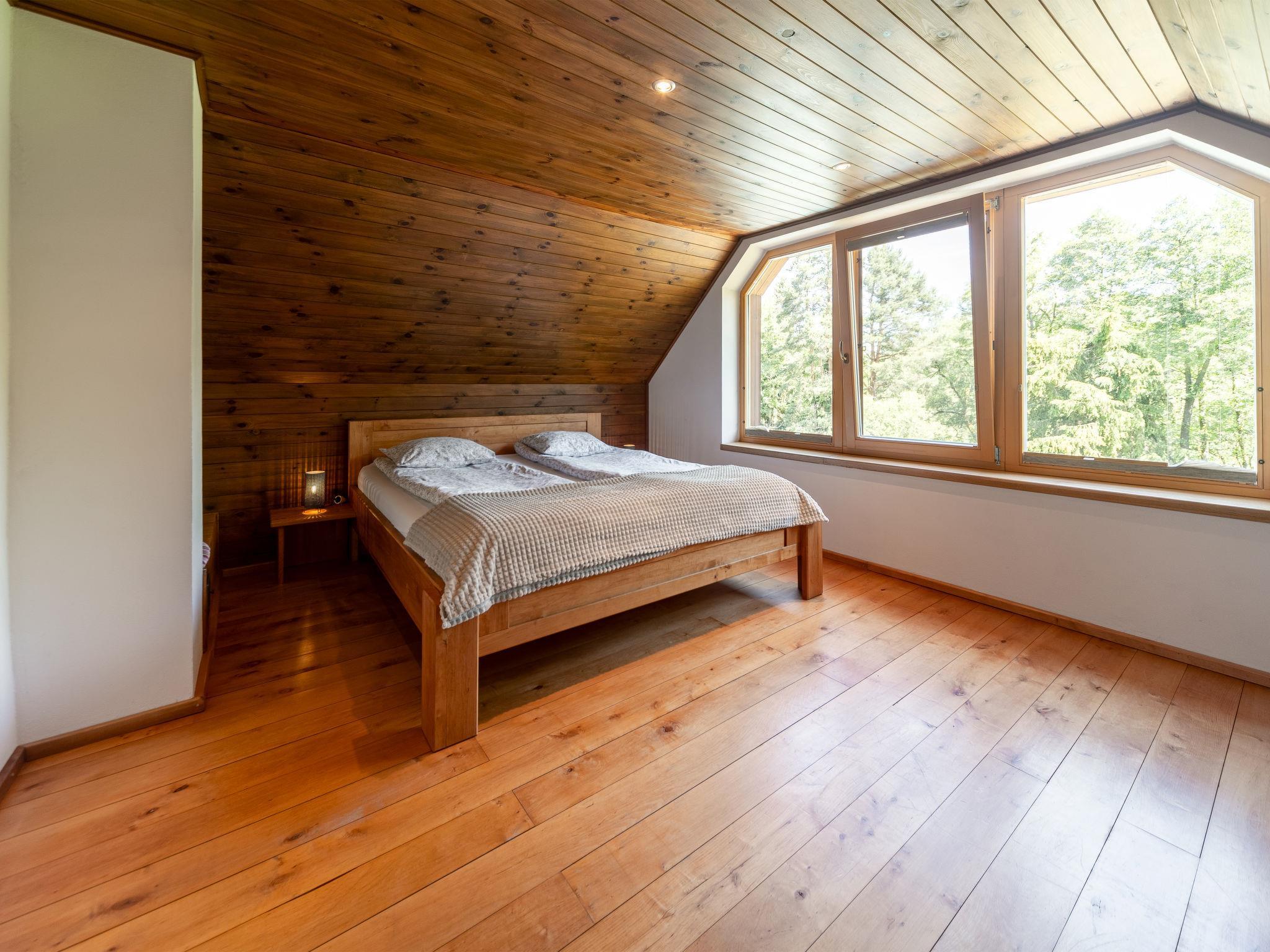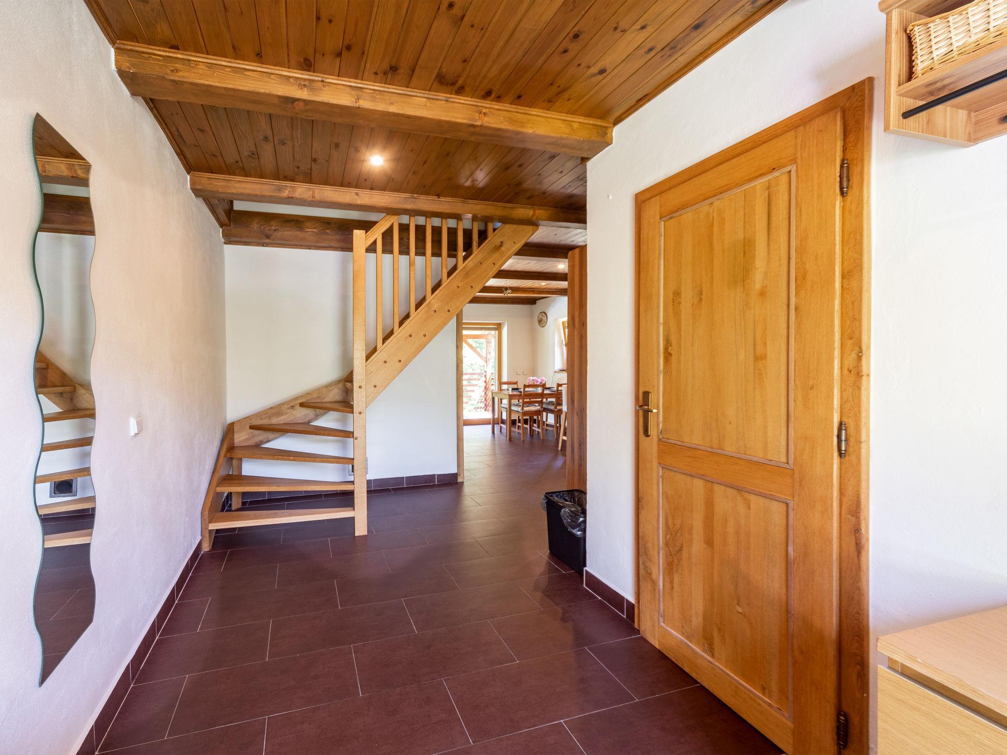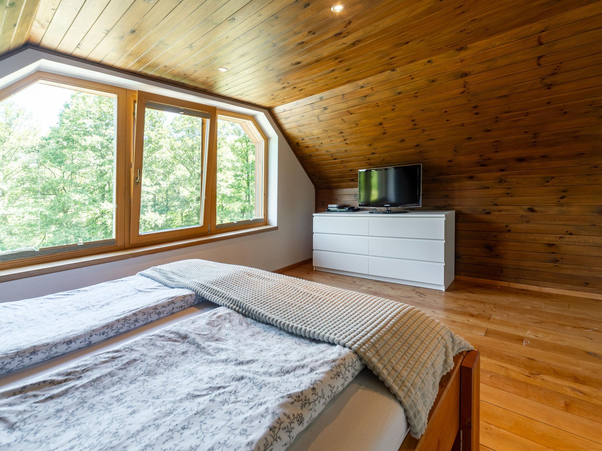 Very beautiful cottage "Bila Retreat with Pool", 2 storeys, detached, surrounded by trees and meadows. 3 km from the centre of Blažejov, 3 km from the centre of Hospríz, 35 km from the centre of Trebon, in a quiet, sunny position, 100 m from the lake. Private: property 600 m2, terraced garden (not fenced), meadow, swimming pool (6 x 3 m, depth 120 cm, seasonal availability: 01.May. - 31.Oct.). Terrace, garden furniture, barbecue. In the house: WiFi. 700 m long bumpy motor access (via unmade road). Parking (for 2 cars) on the premises. Shop 3 km, supermarket 8 km, bus stop "Hospríz" 3 km, railway station "Blažejov" 2.5 km, grass beach 400 m, bathing lake "Ratmírovský rybník" 400 m. Golf course (9 hole) 19 km, walking paths from the house, cycle lane 10 m. Please note: baby equipment (included).