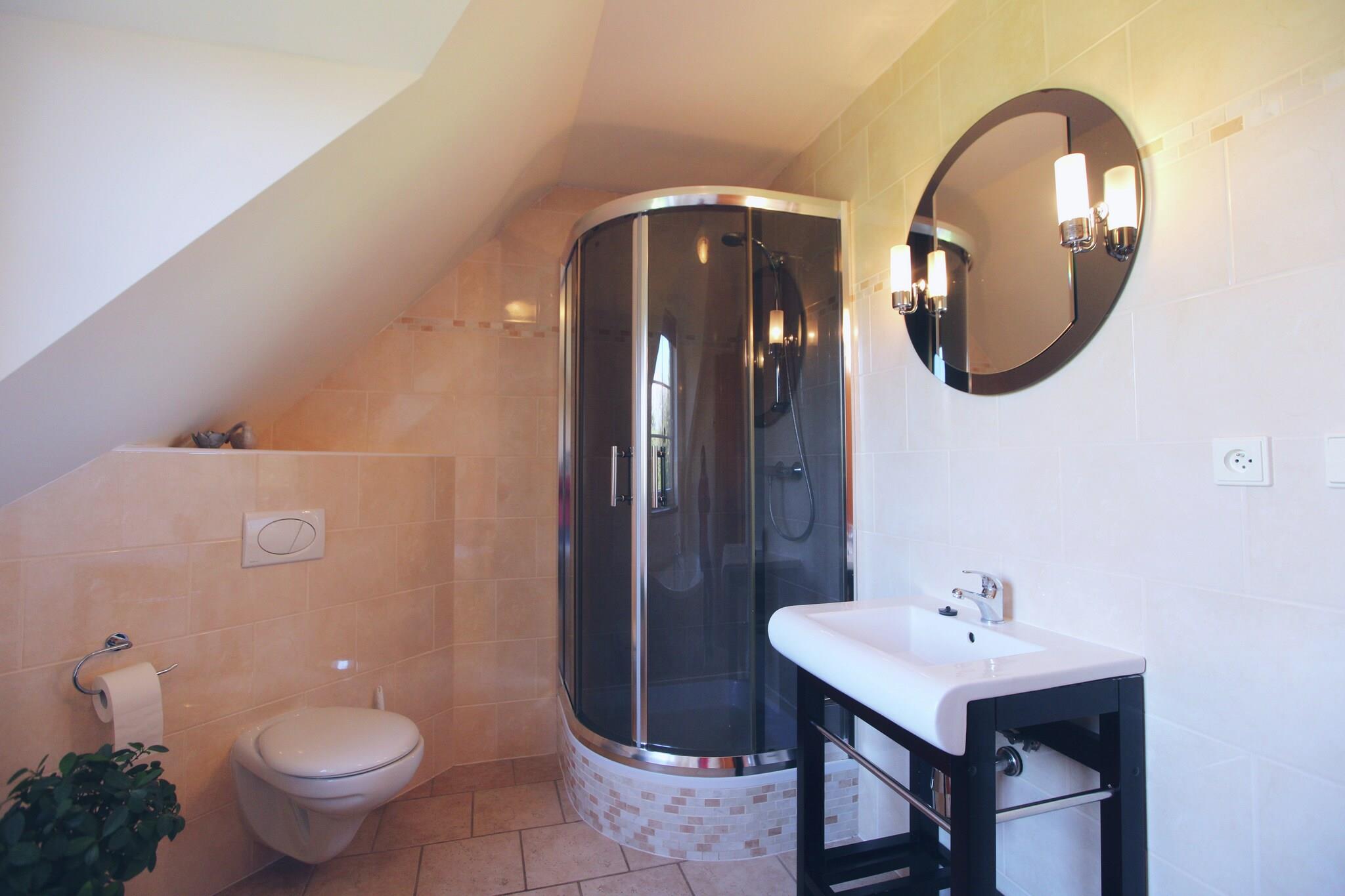 Im authentischen Dorf Božanov, im Norden Böhmens gelegen, inmitten des Naturschutzgebietes Broumovské Steny, befindet sich dieses luxuriöse Einfamilienhaus mit Sauna. Die Region ist reich an Kultur und Natur mit abwechslungsreichen Landschaften mit herrlichem Ackerland, dichten Wäldern und schroffen Felsenformationen. Das Dorf Božanov liegt unter dem Berg der "Koruna" (770 m). Ein großer Erholungssee mit Liegewiese liegt 2 km von Božanov entfernt und in der Nähe befindet sich ein brandneues Freibad mit Rutschen und Kinderbecken. Die historische Stadt Broumov ist 7 km entfernt und bietet zahlreiche kulturelle Attraktionen wie die älteste erhaltene Holzkirche in der Tschechischen Republik, das berühmte Benediktinerkloster und die älteste Bierbrauerei in der Tschechischen Republik sowie zahlreiche gemütliche Terrassen und Restaurants. Aufgrund seiner wunderschönen Lage ist dieses Ferienhaus ein idealer Ausgangspunkt für Wanderer und sportliche Radfahrer. Die Wege sind gut markiert. Darüber hinaus gibt es viele Möglichkeiten zum Schwimmen, Reiten, Bergsteigen, Kanufahren, Angeln oder Ausflüge mit dem Auto oder Auto. Im Winter ist das eine wunderschöne Kulisse für Skifahren, Langlaufen und Schneeschuhwandern. Es gibt verschiedene Skilifte und Langlaufloipen in der Nähe von Božanov. Vor Ort gibt es Material zu mieten und es besteht die Möglichkeit, holländischen / deutschen Ski- und / oder Snowboardunterricht zu folgen. Haus Rád ist ein schönes Ferienhaus im typisch tschechischen Robenka-Stil mit viel Privatsphäre und liegt auf einem kleinen Campingplatz. Natürlich können Sie alle Einrichtungen wie Schwimmbad, Spielplatz, Fußballplatz und Erholungsraum mit Tischtennis, Tischfußball und Billard nutzen (nur im Sommer). Darüber hinaus gibt es zahlreiche Aktivitäten wie Bergsteigen, Wandern, Kanufahren und Reiten. Besonderheiten: Der Stromtarif des Sommers umfasst maximal 150 kWh pro Woche und der Stromtarif des Winters beträgt max. 350 kWh pro Woche. Dies genügt bei normalem Verbrauch. Bei Überschreitung wird 5Kc / kWh berechnet.