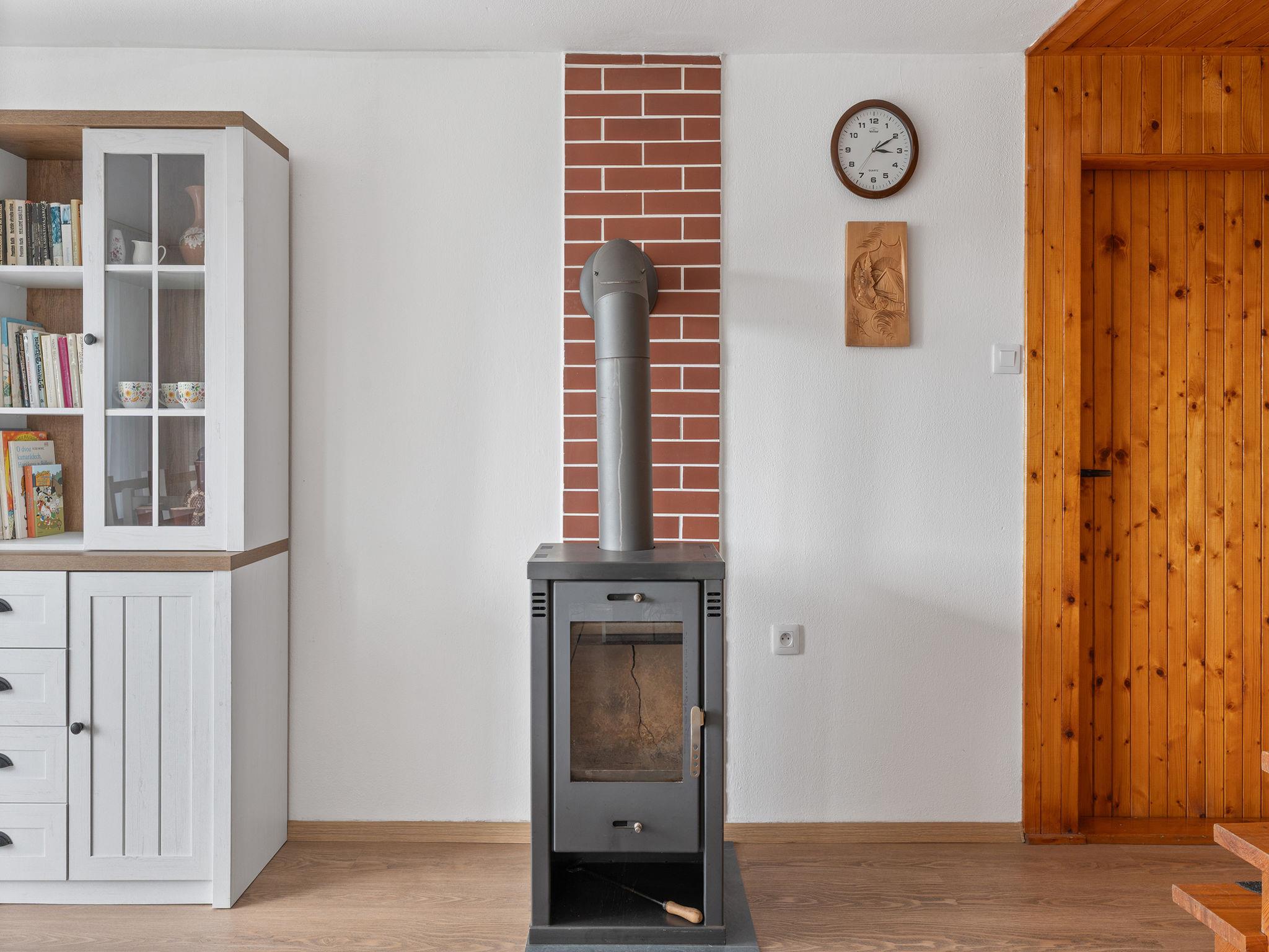4-room cottage on 2 levels. Living room with Scandinavian wood stove. Open walk-through room with 2 folding beds. Kitchen (4 ceramic glass hob hotplates, toaster, kettle, microwave, freezer) with dining table. Bathroom, sep. WC. Boiler (50 litres). Upper floor: (steep stair), 1 room with 1 double bed. Exit to the balcony. 1 room with 2 beds. Exit to the balcony. 1 room with 1 double bed (120 cm). Electric heating, wood heating. Balcony. Terrace furniture, barbecue. Facilities: washing machine, hair dryer. Internet (WiFi, free). Please note: suitable for families. Non-smoking house. Maximum 3 pets/ dogs allowed. Two folding mattresses can be moved to other room.