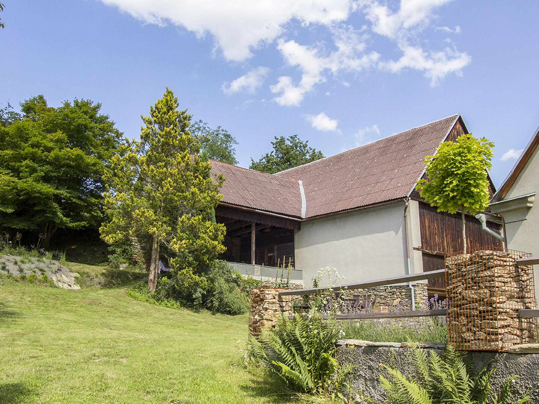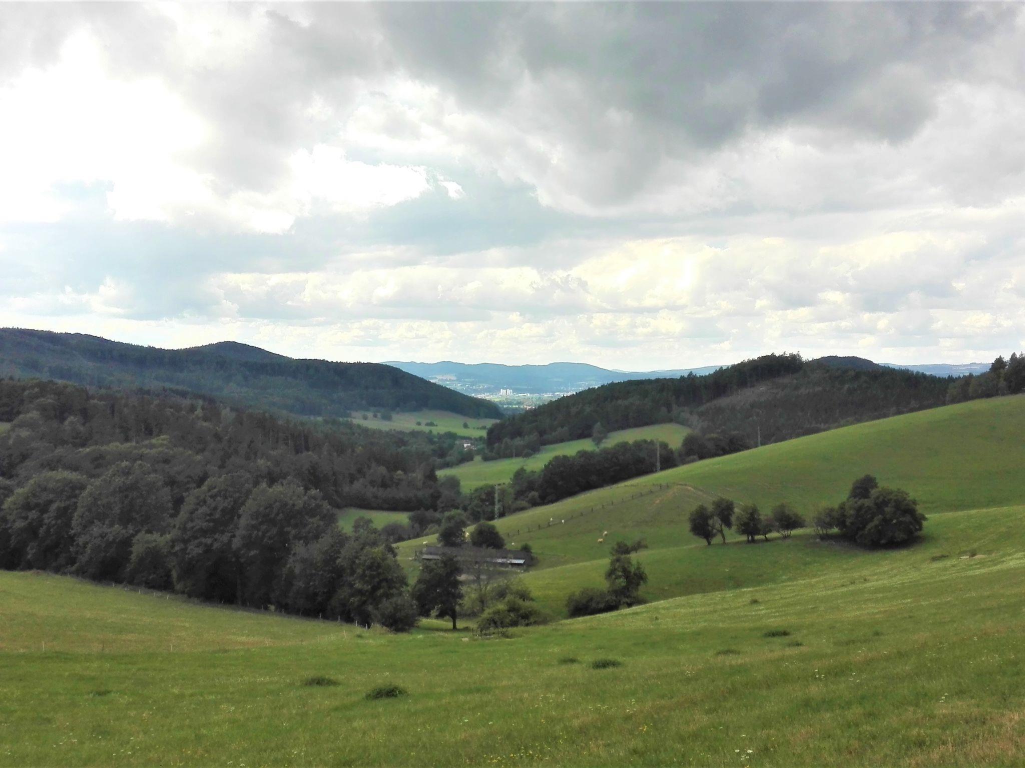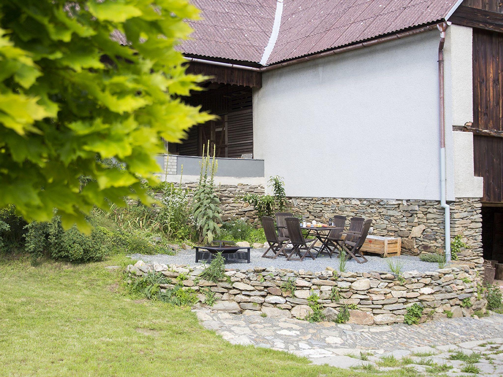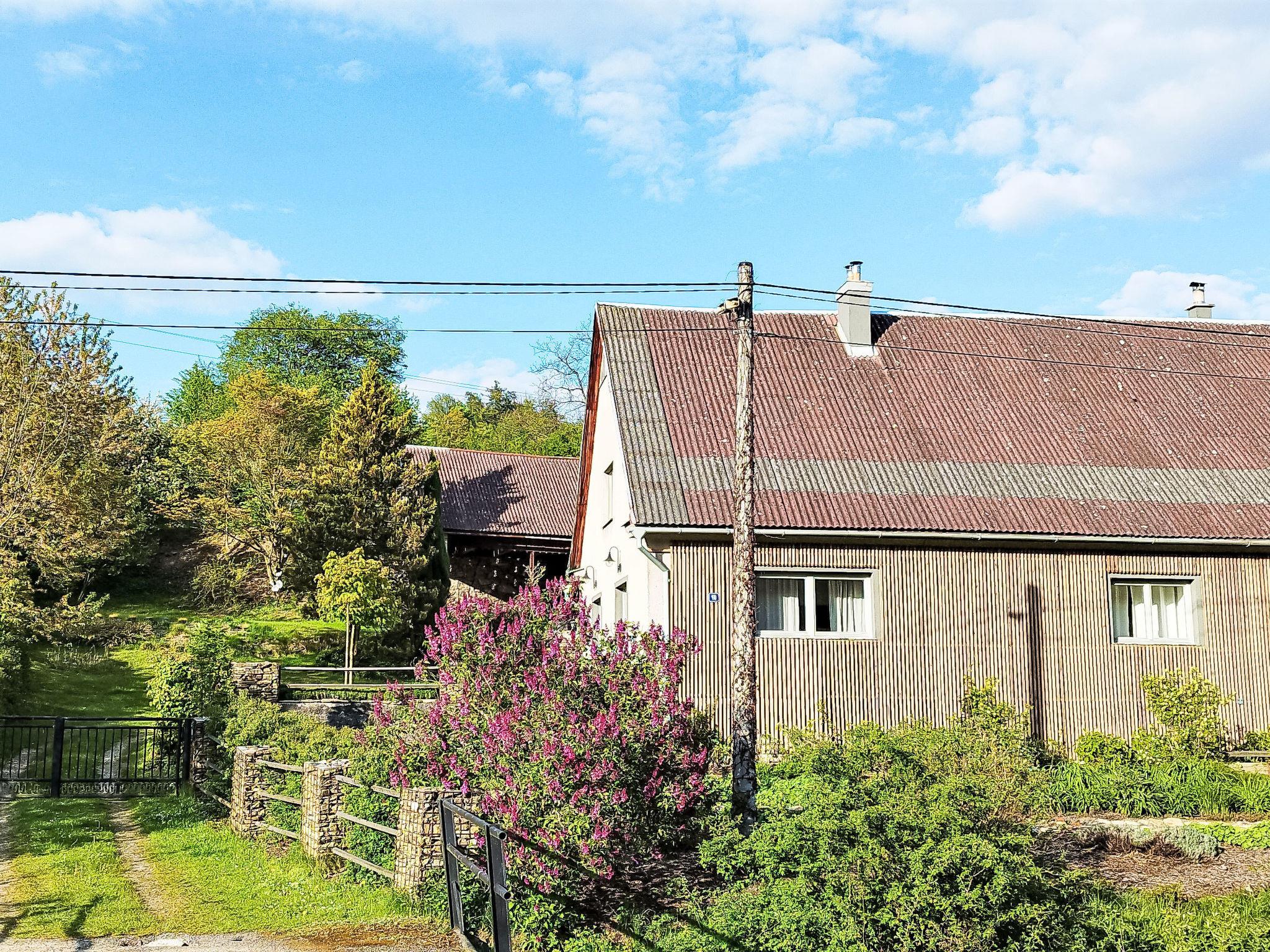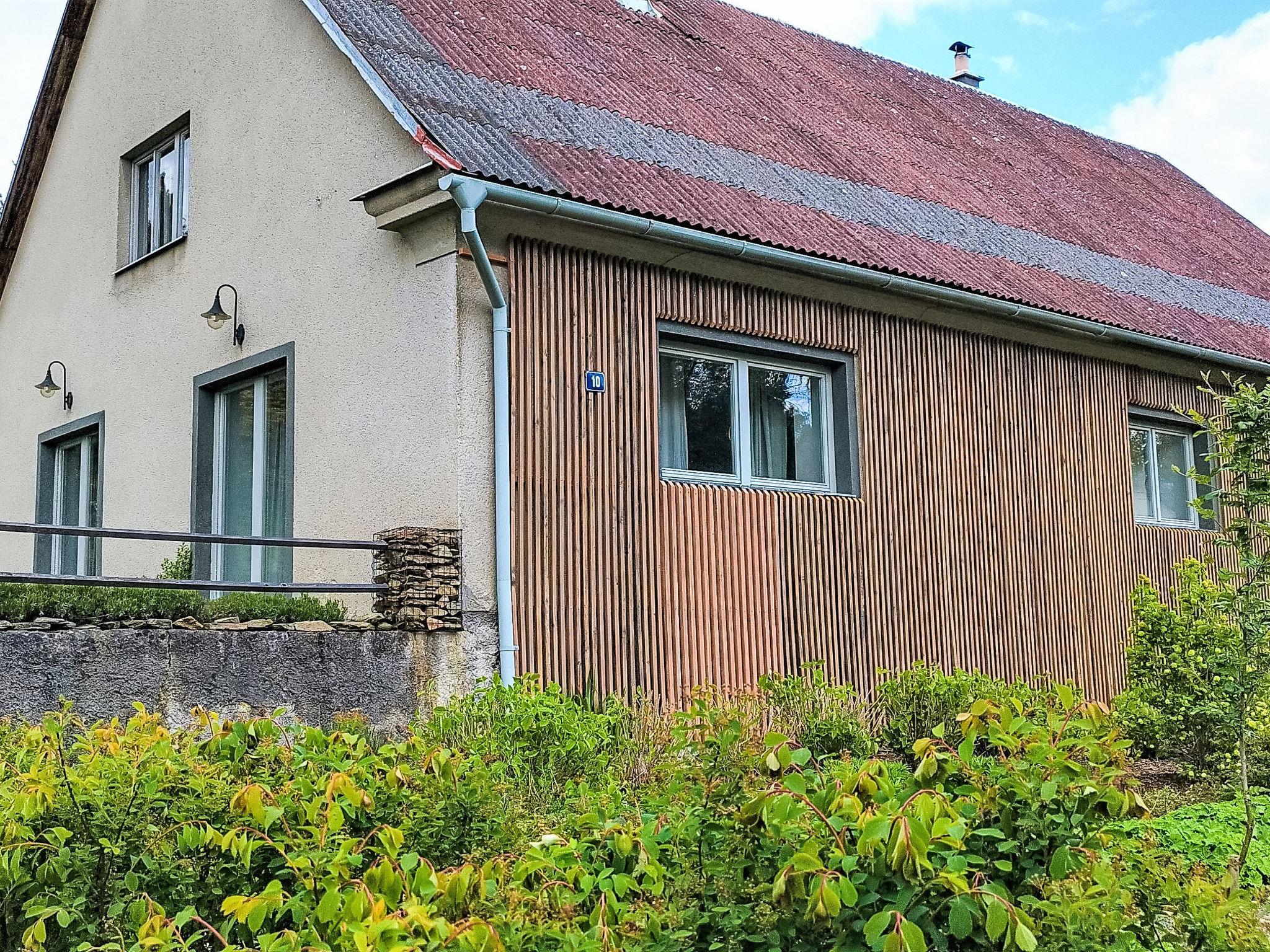 "Brnícko", 4-room house 160 m2. Modern and cosy furnishings: living/dining room with 1 sofabed and radio. Exit to the garden. 3 rooms, each room with 1 french bed (140 cm). Open kitchen (oven, dishwasher, 4 ceramic glass hob hotplates, kettle, freezer, electric coffee machine) with dining table, Scandinavian wood stove. Shower/WC, sep. WC. Wood heating, boiler (120 litres). Terrace 60 m2. Terrace furniture. Beautiful view of the countryside. Facilities: washing machine, dryer, logs (extra). Internet (WiFi, free). Please note: suitable for families. Non-smoking house.
