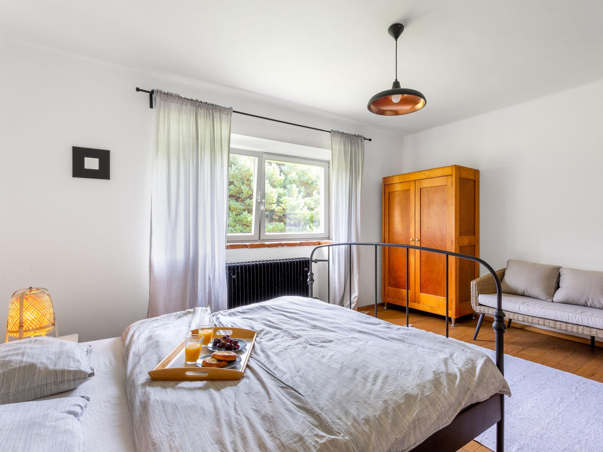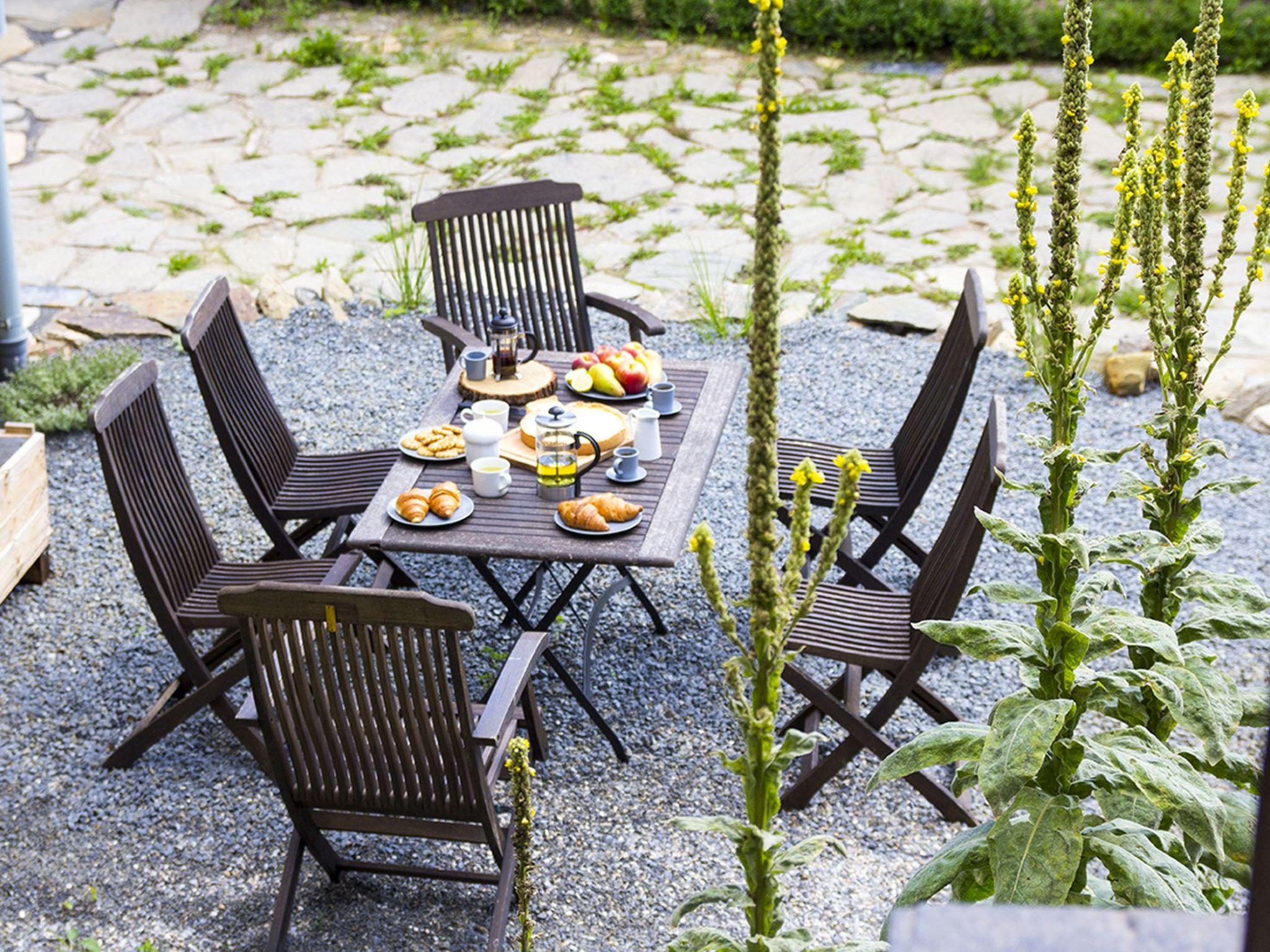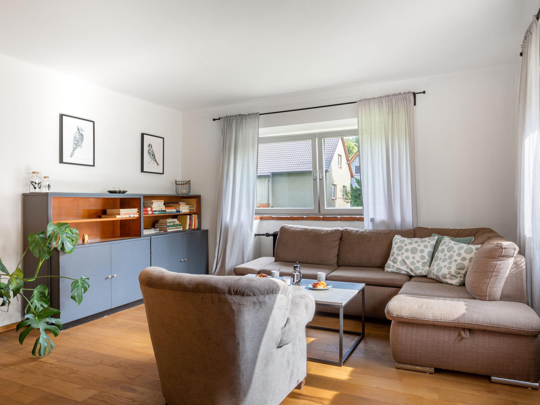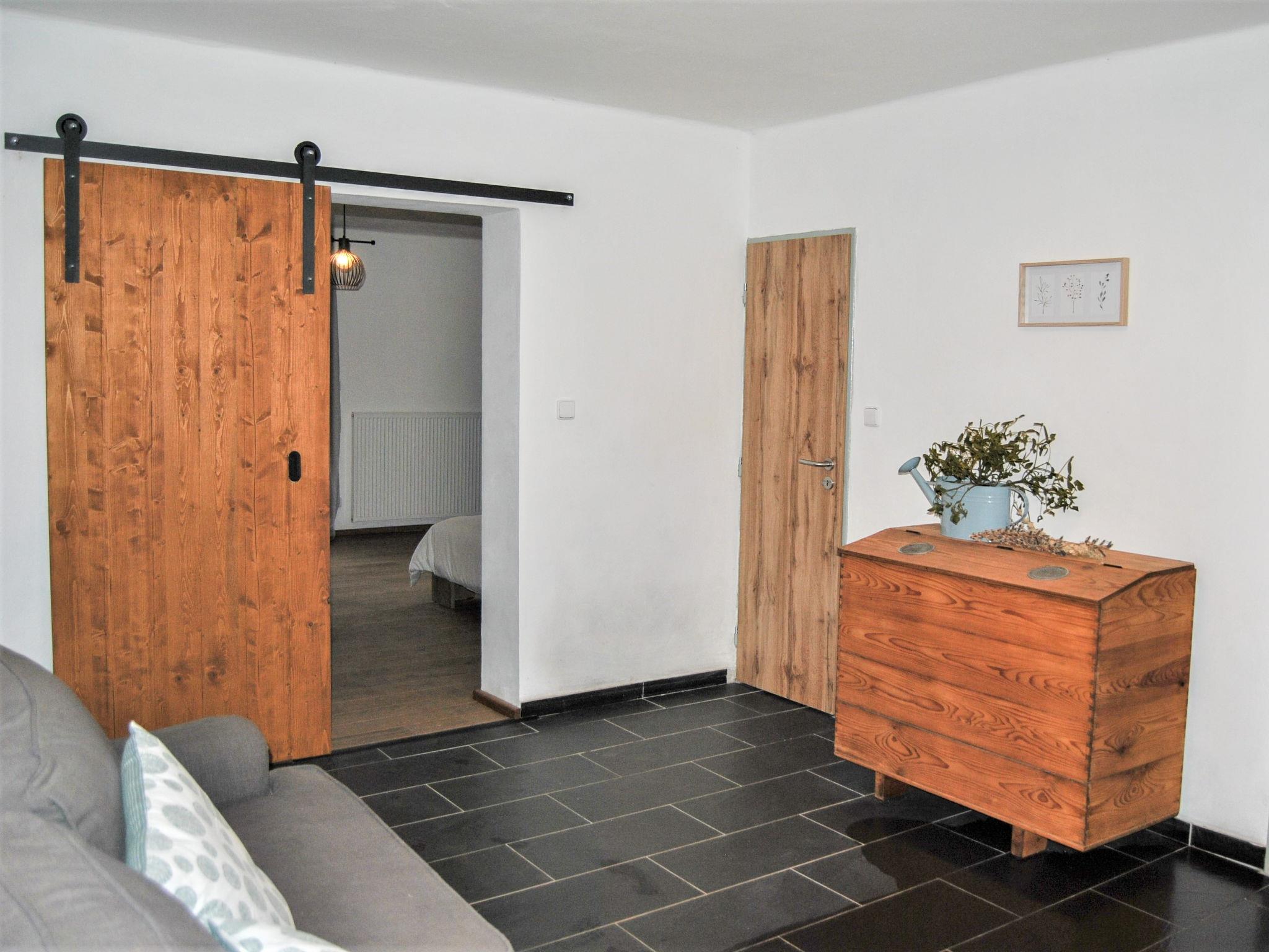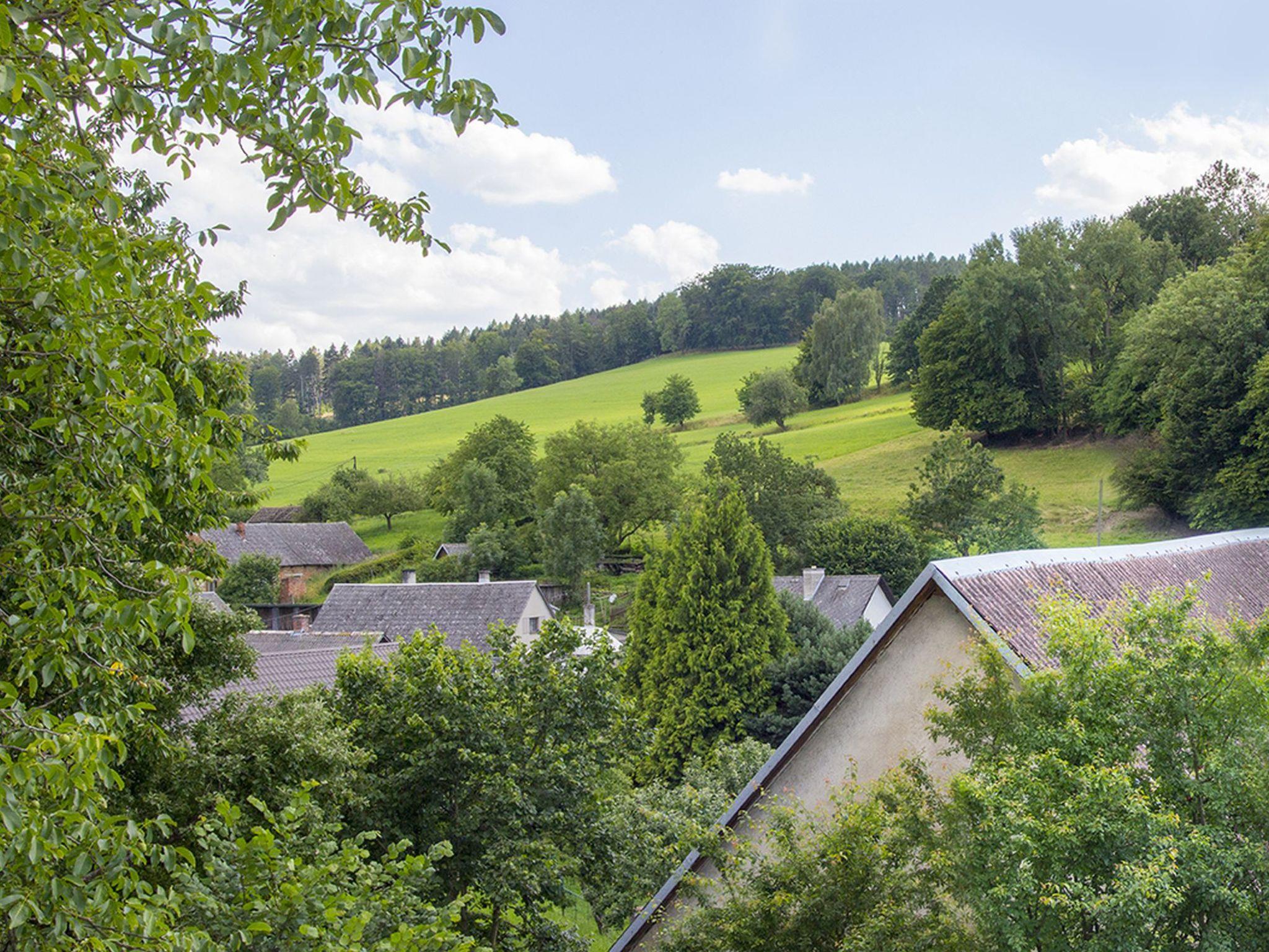 "Brnícko", 4-room house 160 m2. Modern and cosy furnishings: living/dining room with 1 sofabed and radio. Exit to the garden. 3 rooms, each room with 1 french bed (140 cm). Open kitchen (oven, dishwasher, 4 ceramic glass hob hotplates, kettle, freezer, electric coffee machine) with dining table, Scandinavian wood stove. Shower/WC, sep. WC. Wood heating, boiler (120 litres). Terrace 60 m2. Terrace furniture. Beautiful view of the countryside. Facilities: washing machine, dryer, logs (extra). Internet (WiFi, free). Please note: suitable for families. Non-smoking house.