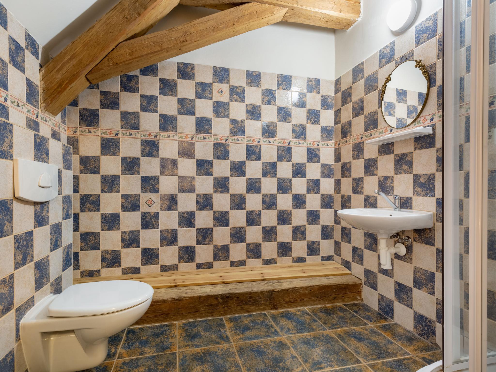6-room farmhouse 300 m2 on 2 levels. Rustic and cosy furnishings: living room with Scandinavian wood stove and TV (flat screen). Dining room with dining table. 1 room with 2 beds and separate WC. Kitchen (oven, dishwasher, 4 ceramic glass hob hotplates, kettle, microwave, electric coffee machine). Upper floor: 1 room with 4 beds and shower/WC. 1 room with 1 bed and 1 double bed. 1 room with 1 bed, 1 double bed and shower/WC. Shower/WC. Porch. Terrace furniture. Facilities: Internet (WiFi, free). Please note: suitable for families. Non-smoking house. The small living room has 2 sofabeds, writing desk, armchair, board games.