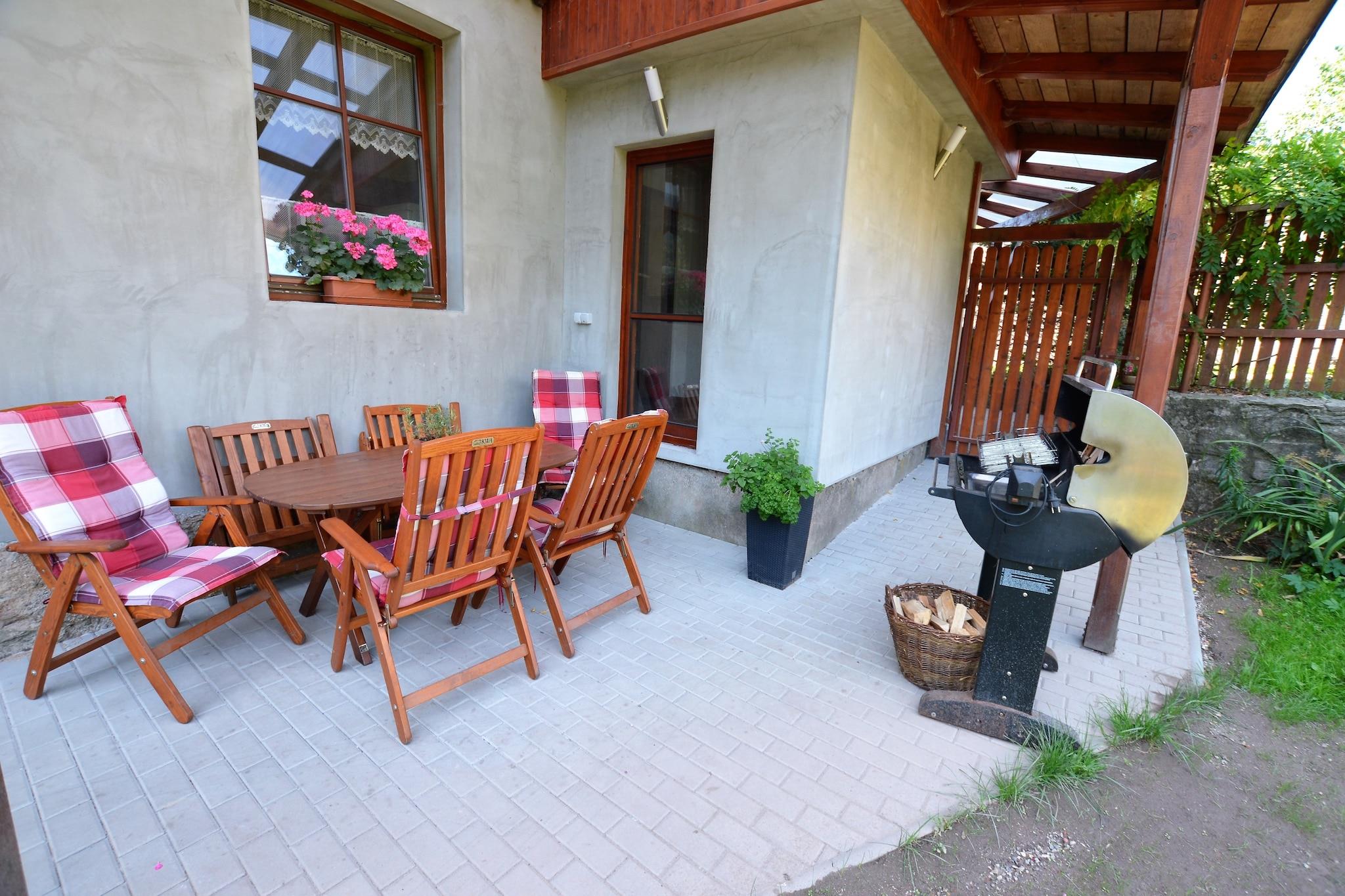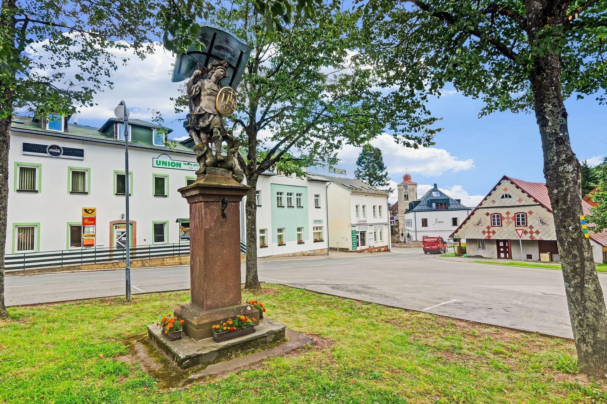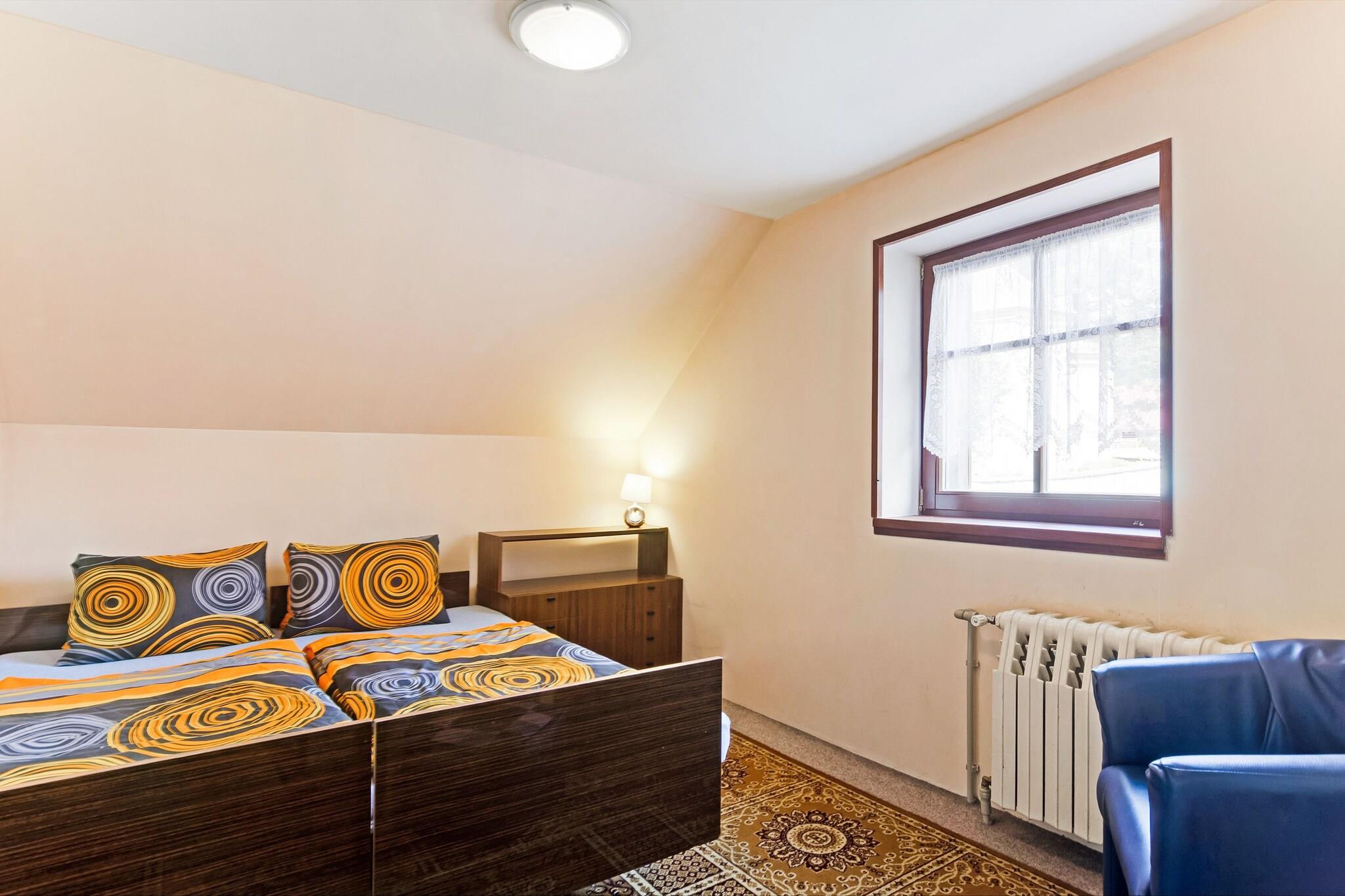Komfortabel Mountain Escape Bo i et indbydende feriehus i hjertet af Cerný Dul, der byder på masser af plads til familier og vennegrupper. Med fire soveværelser, et stort opholdsområde og et veludstyret køkken er huset designet til afslapning efter dage fyldt med eventyr. Gæsterne kan samles i den private have, nyde udendørs spisning med en grill eller slappe af på terrassen, mens de nyder den omkringliggende bjergatmosfære. Ideel beliggenhed for aktiviteter Hjemmet ligger kun få skridt fra hverdagens bekvemmeligheder - almindelige forsyninger, restauranter og turistinformationskontoret ligger alle inden for 200 meter. For vintergæster er skiliften til Cerný Dul-pisterne kun 400 meter væk, hvilket gør det nemt at komme til Giant Mountains-skiområdet. Sommeren byder på uendelige vandremuligheder, fra at udforske stier på Cerná hora til at bestige Snežka, Tjekkiets højeste bjerg. En nærliggende offentlig indendørs pool på Hotel Aurum tilbyder også rekreation året rundt. Spisning og lokal smag Cerný Dul tilbyder en række hyggelige restauranter inden for gåafstand, hvor du kan nyde solide tjekkiske retter eller internationale retter efter en aktiv dag. Den nærliggende by Vrchlabí, kun en kort køretur væk, udvider mulighederne med caféer, traditionelle bagerier og livlige steder for at prøve regionale specialiteter. Uanset om du er her for at stå på ski, vandreture eller blot tilbringe tid med dine kære, giver dette feriehus en behagelig og godt forbundet base for dit bjergtilflugtssted.