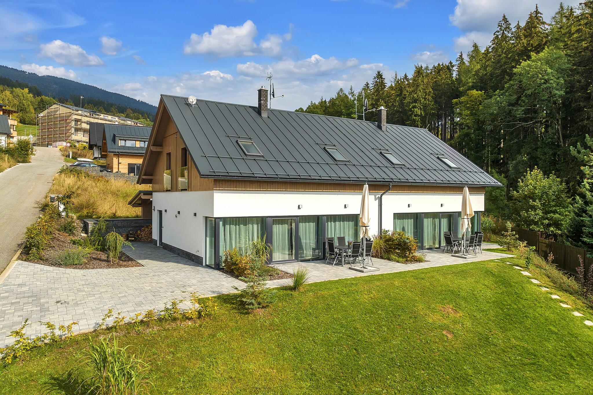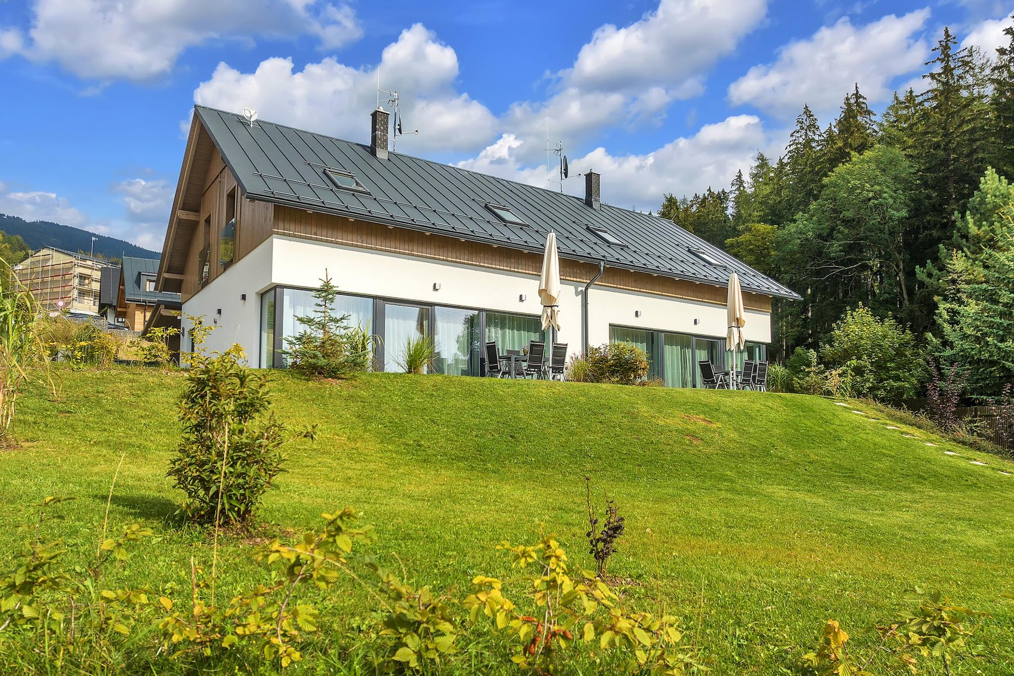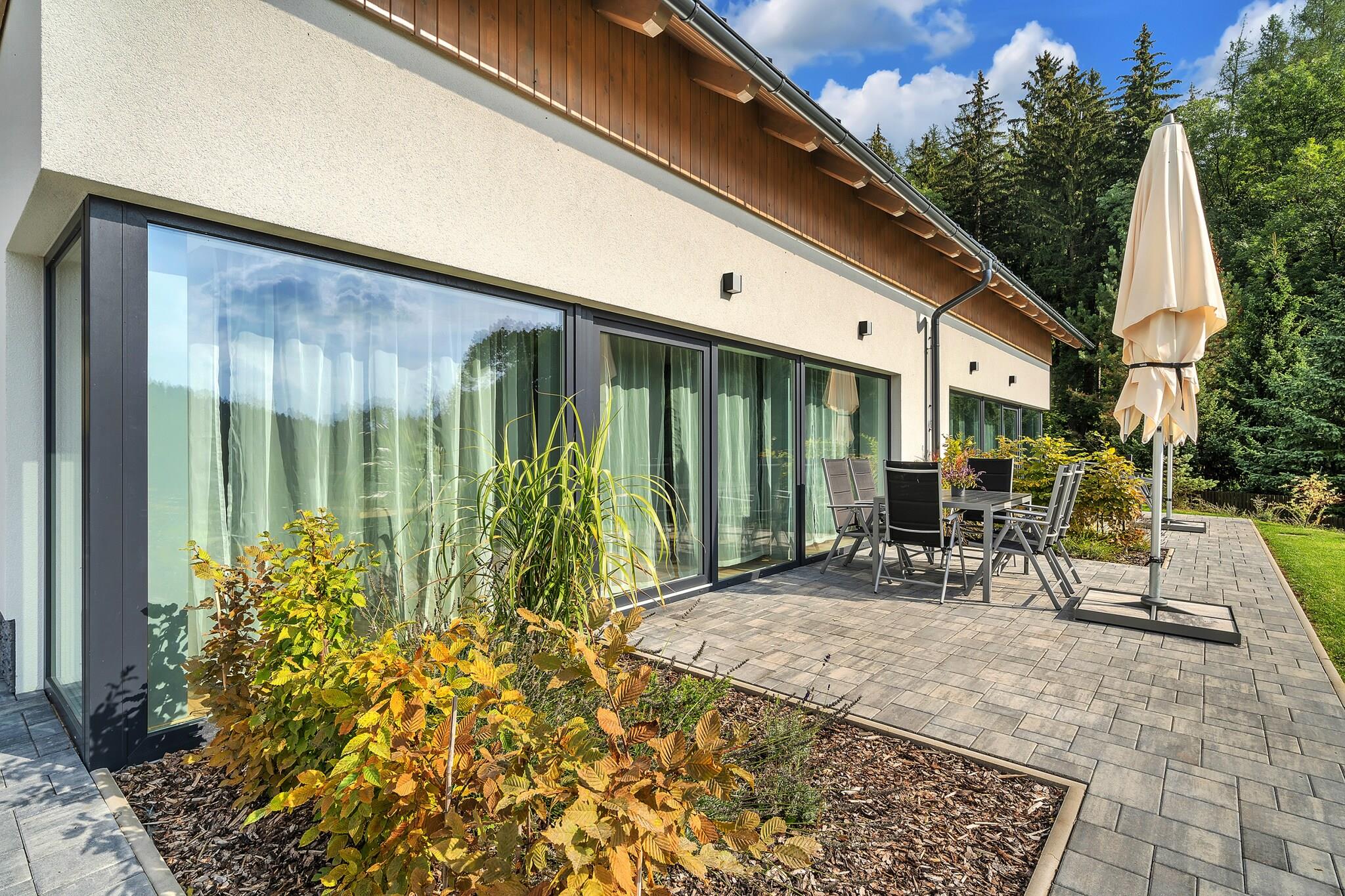 Denne smukke moderne villa er det ideelle tilflugtssted for grupper på op til 16 personer, der tilbyder en fantastisk udsigt over de omkringliggende skove og ligger tæt på populære skiområder. Med rigelig plads indeni kan alle slappe af og nyde villaens komfort. Uanset om du slapper af i saunaen eller nyder den friske luft i haven, er denne villa perfekt til afslapning og eventyr. Beliggenheden byder på mange muligheder for udforskning. Nærliggende landsbyer, smukke vandrestier og udendørs aktiviteter venter. Skisportssteder er kun en kort afstand, med pister perfekte til skiløb og snowboarding. Om sommeren venter vandre- og mountainbikestier samt golfbaner i nærheden. Denne villa er den ultimative destination for afslapning og eventyr året rundt. Villaen har 6 rummelige soveværelser og generøse opholdsområder, herunder en hyggelig stue med sovesofa. Der er masser af badeværelser med bruser, samt flere toiletter for nemheds skyld. Det veludstyrede køkken, perfekt til at tilberede store måltider, inkluderer køleskab, fryser, ovn, mikroovn, opvaskemaskine og alle nødvendige køkkenredskaber. Nyd måltider på grillen eller nyd te og kaffe, mens du nyder udsigten fra terrassen.