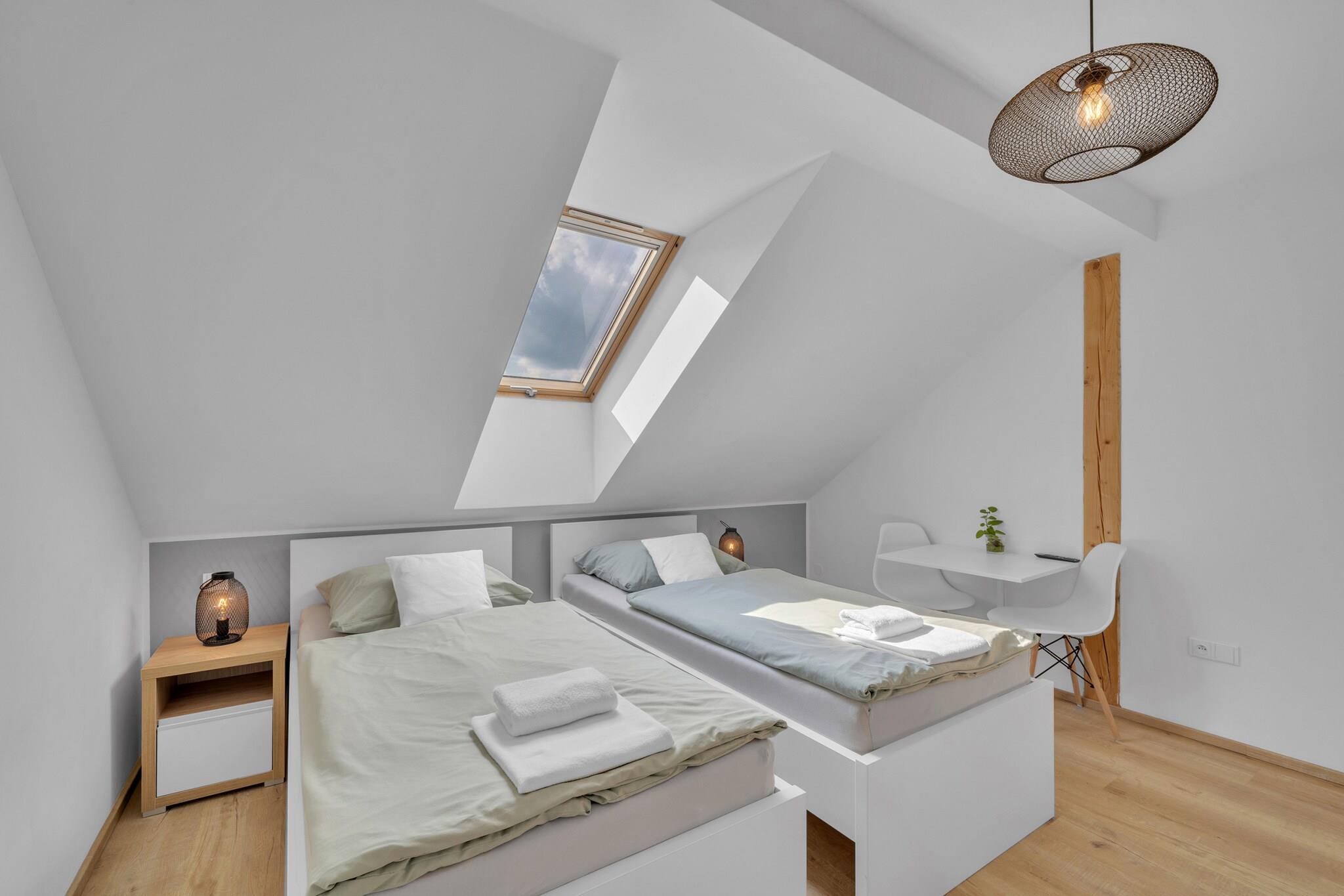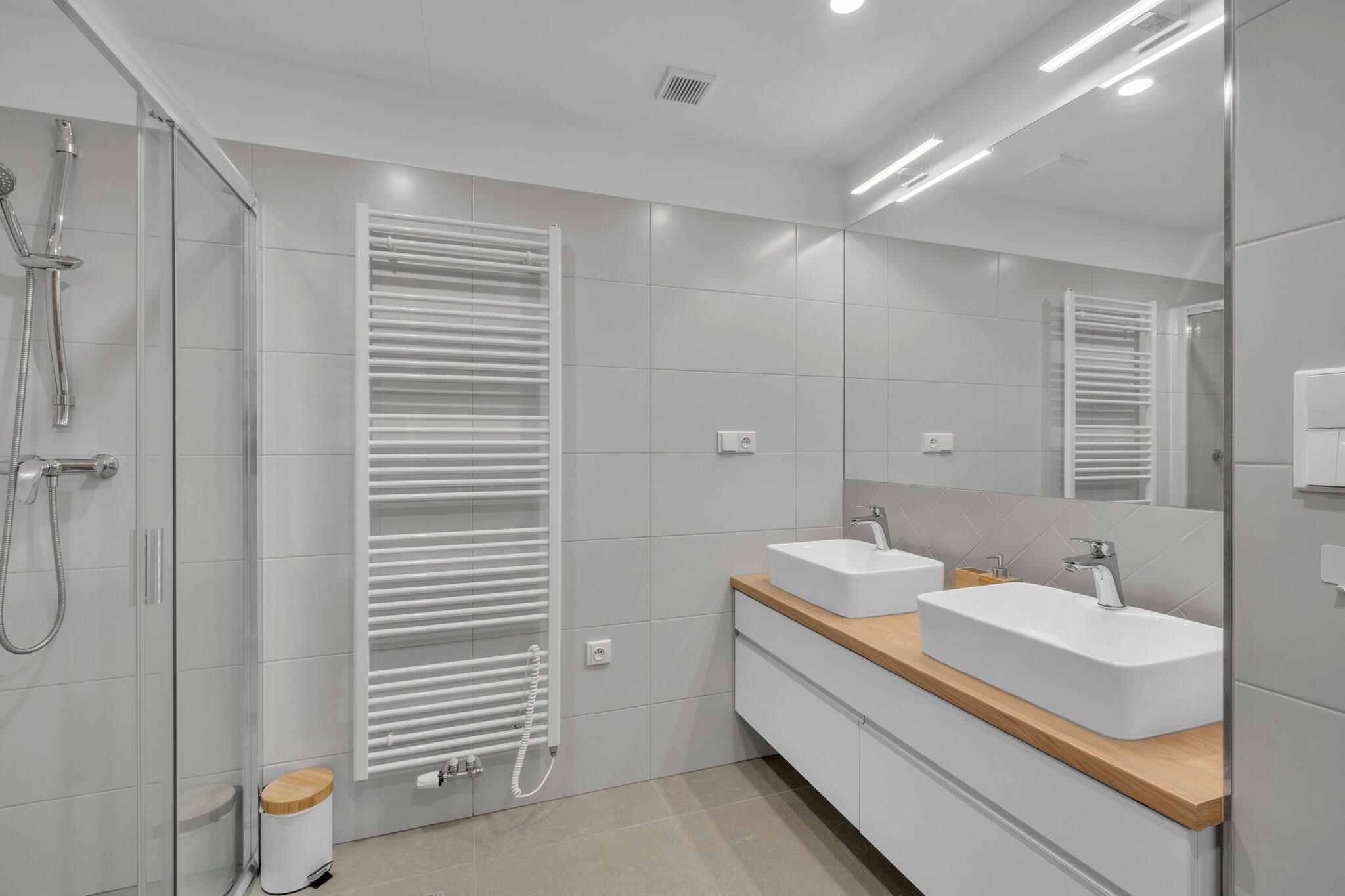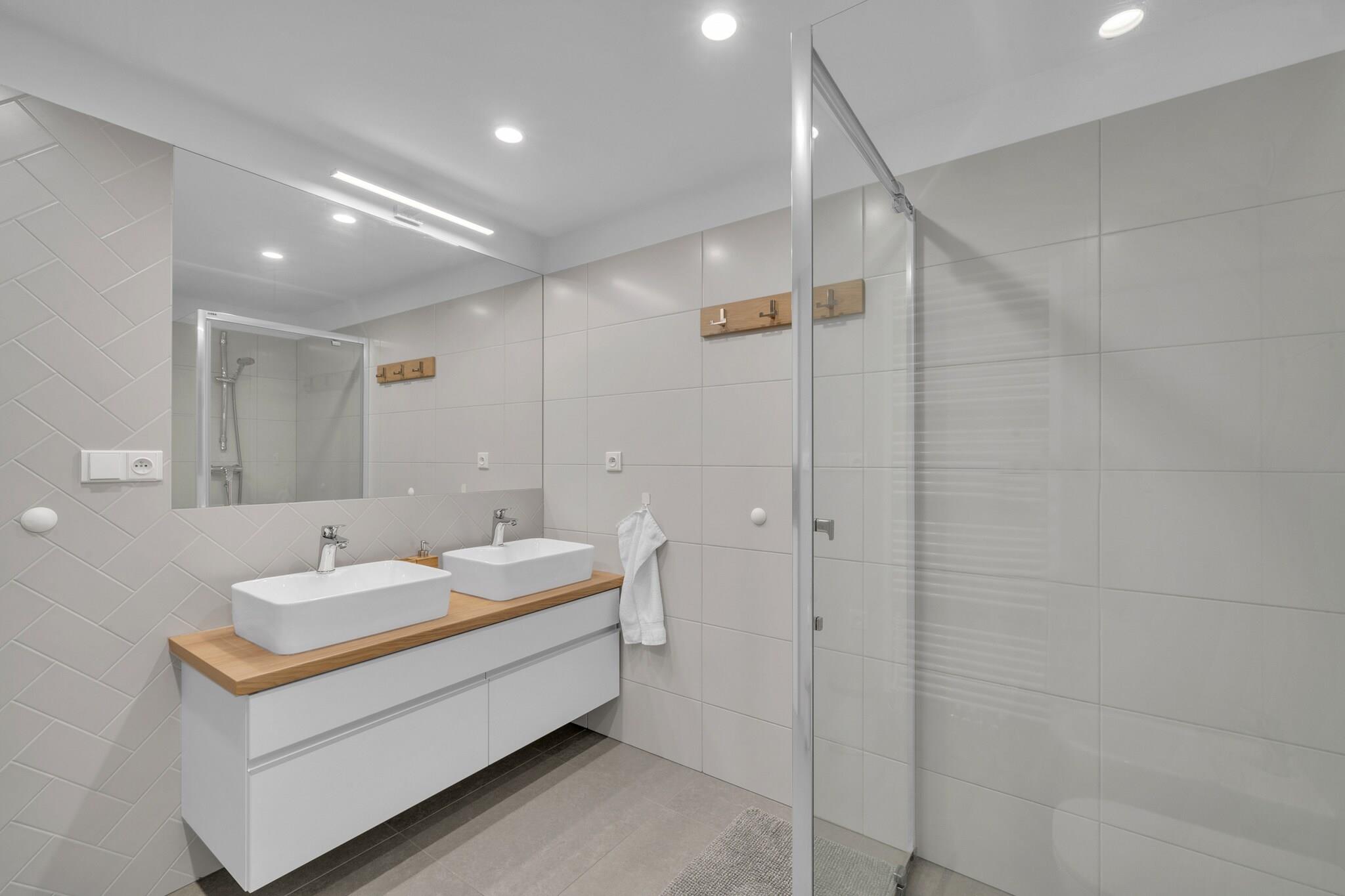 Denne smukke moderne villa er det ideelle tilflugtssted for grupper på op til 16 personer, der tilbyder en fantastisk udsigt over de omkringliggende skove og ligger tæt på populære skiområder. Med rigelig plads indeni kan alle slappe af og nyde villaens komfort. Uanset om du slapper af i saunaen eller nyder den friske luft i haven, er denne villa perfekt til afslapning og eventyr. Beliggenheden byder på mange muligheder for udforskning. Nærliggende landsbyer, smukke vandrestier og udendørs aktiviteter venter. Skisportssteder er kun en kort afstand, med pister perfekte til skiløb og snowboarding. Om sommeren venter vandre- og mountainbikestier samt golfbaner i nærheden. Denne villa er den ultimative destination for afslapning og eventyr året rundt. Villaen har 6 rummelige soveværelser og generøse opholdsområder, herunder en hyggelig stue med sovesofa. Der er masser af badeværelser med bruser, samt flere toiletter for nemheds skyld. Det veludstyrede køkken, perfekt til at tilberede store måltider, inkluderer køleskab, fryser, ovn, mikroovn, opvaskemaskine og alle nødvendige køkkenredskaber. Nyd måltider på grillen eller nyd te og kaffe, mens du nyder udsigten fra terrassen.