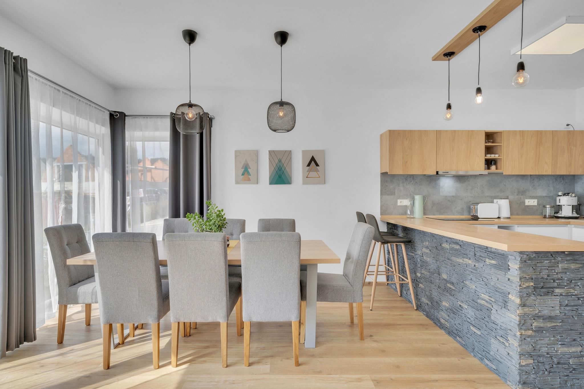 Denne moderne villa er det perfekte tilflugtssted for grupper på op til 8 personer, og tilbyder en betagende udsigt over de omkringliggende skove og ligger ved foden af populære skiområder. Med masser af plads indenfor kan alle slappe af i komfort, hvad enten det er i den afslappende sauna, den hyggelige stue eller den fredelige have. Denne villa sikrer, at du aldrig er langt fra spændende aktiviteter, uanset årstiden. Udforsk skønheden i det omkringliggende område med masser af nærliggende attraktioner. De charmerende landsbyer Janske Lazne og Trutnov ligger kun en kort køretur derfra, mens Krkonose Tree Top Walk kun ligger 3 km fra villaen. For dem, der søger eventyr, er Snezka-bjerget et must-see, med vandreture og en elevator for nem adgang. Vintersportsentusiaster vil sætte pris på nærheden til skisportsstedet Cerny Dul, kun 500 meter væk, og det nærliggende skisportssted Cerna Hora, kun 5 km væk. Villaen har 3 rummelige soveværelser og rigeligt opholdsrum, herunder en sovesofa i stuen. Der er flere badeværelser, hver udstyret med bruser, og flere toiletter, hvilket gør det nemt for alle at nyde privatlivets fred og bekvemmelighed. Det fuldt udstyrede køkken er et paradis for at tilberede lækre måltider, med køleskab, fryser, ovn, mikroovn og opvaskemaskine. Du kan endda nyde en kop te eller kaffe her, eller tage måltidet udendørs til grillpladsen. Efter middagen, hvorfor ikke slappe af på terrassen, nyde aftensolen og se dine børn og kæledyr have det sjovt i den rummelige have?