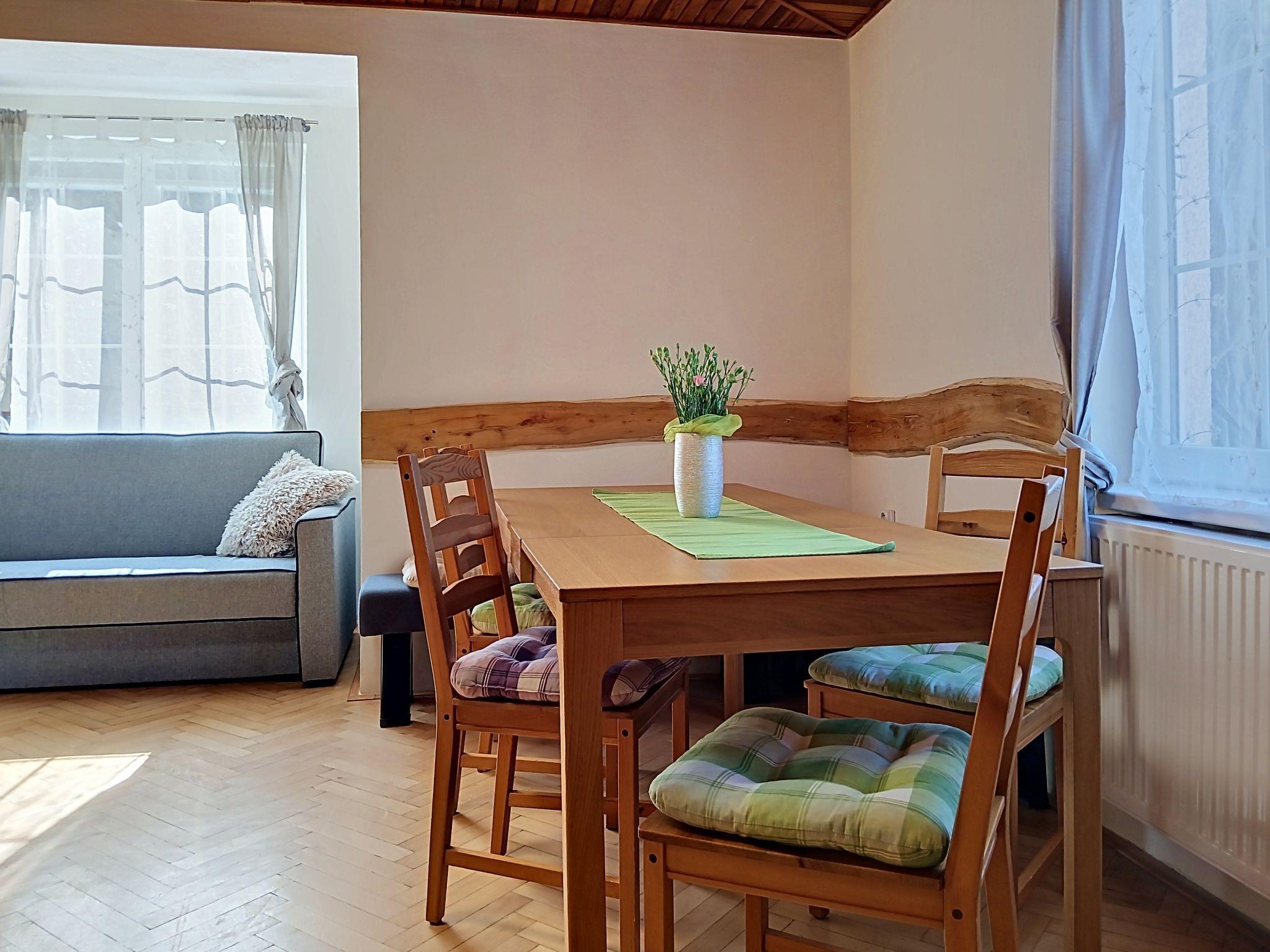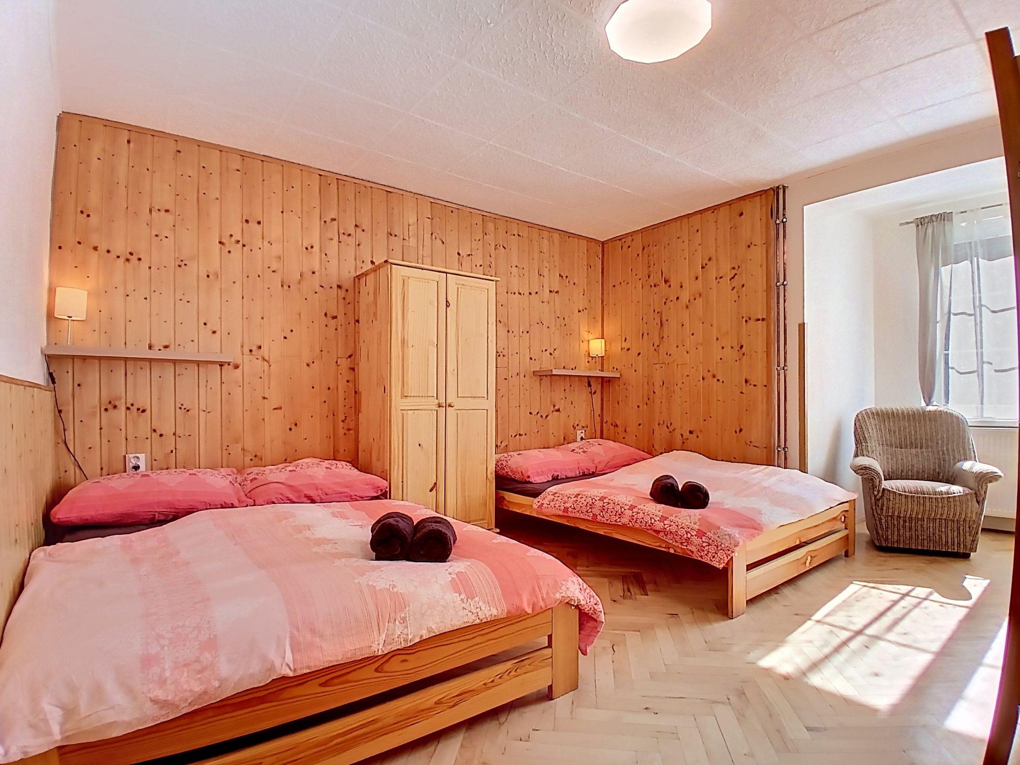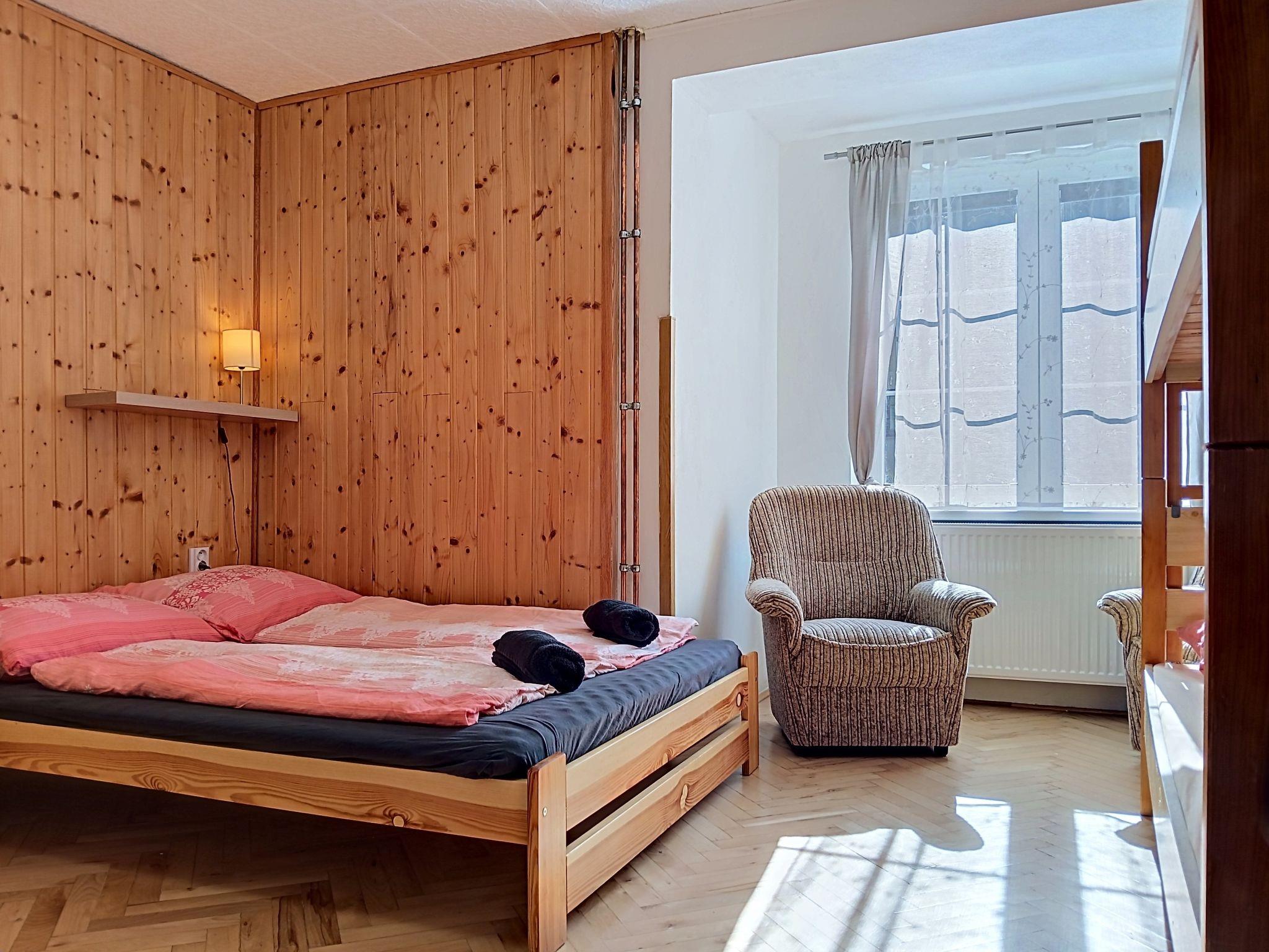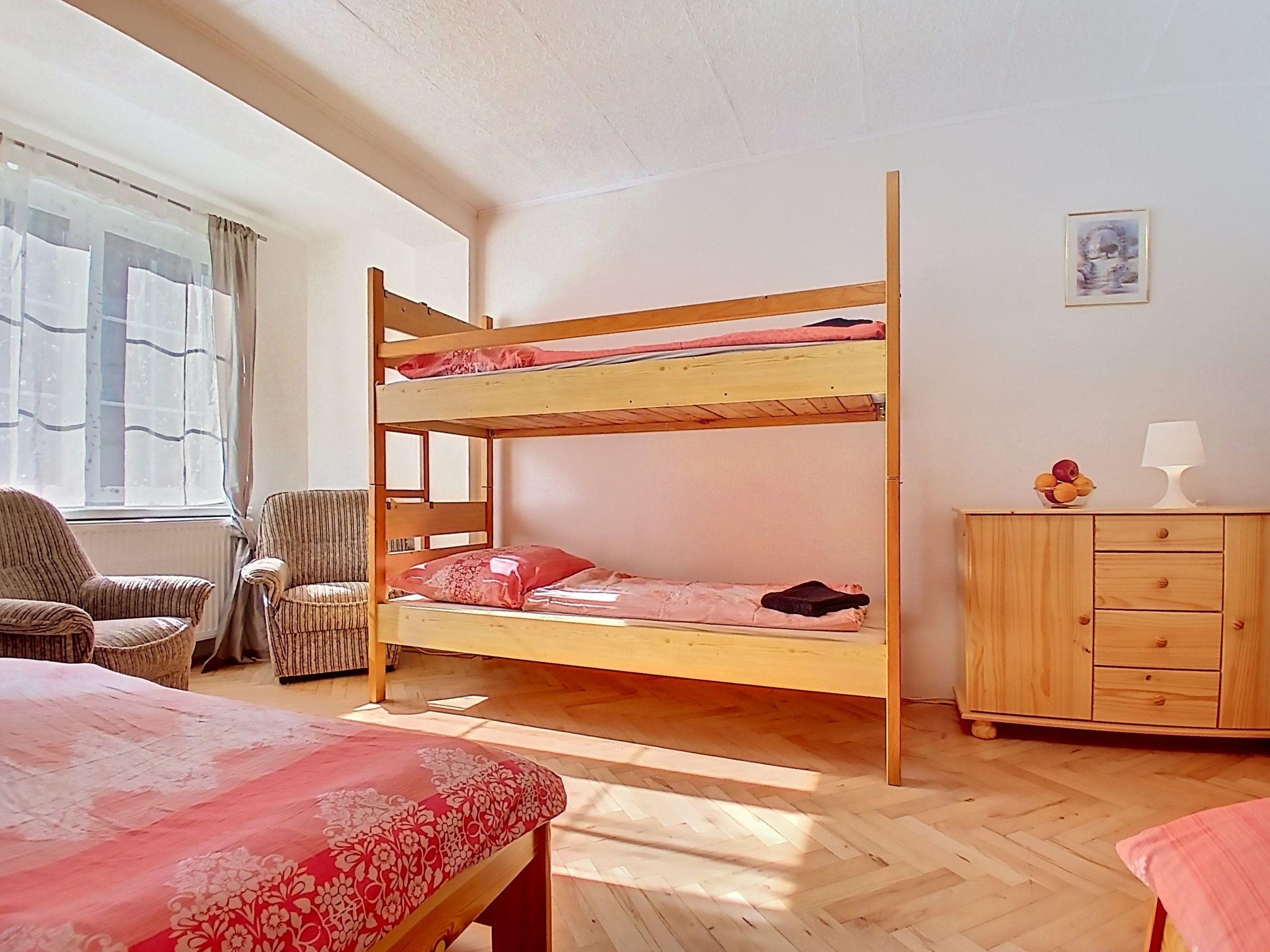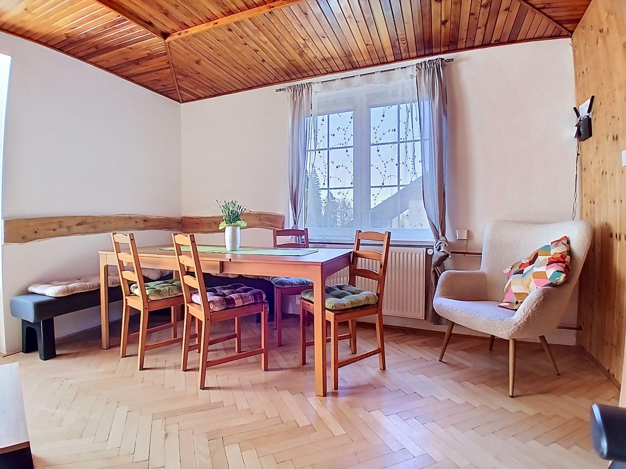 Cerný Dul: Child friendly, cosy house, 3 storeys, detached, surrounded by trees. Private: natural state property, well-kept garden, swimming pool (seasonal availability: 23.Jun. - 05.Sep.). Fireplace, children's playground (slide, swing, sandbox). In the house: lounge with TV, storage room for bicycles, storage room for skis. Parking at the house. Shop 500 m, shopping centre 10 km, restaurant 500 m, bus stop "Cerný Dul námestí" 500 m, railway station "Vrchlabí" 10 km. Slopes 1 km. Nearby attractions: Stezka korunami stromu 6 km, Vrchlabí 10 km, Aquacentrum Janské Lázne 6 km, Aquapark Trutnov 28 km, Zoo Safari Dvur Králové 32 km. Well-known ski regions can easily be reached: Cerný Dul 1 km, Jánské Lázne - Cerná Hora 6 km, Hoffmanky Express 4.4 km. Hiking paths: Snežka 28 km. Please note: suitable for families, baby equipment (included). The owner lives in the same residence.
