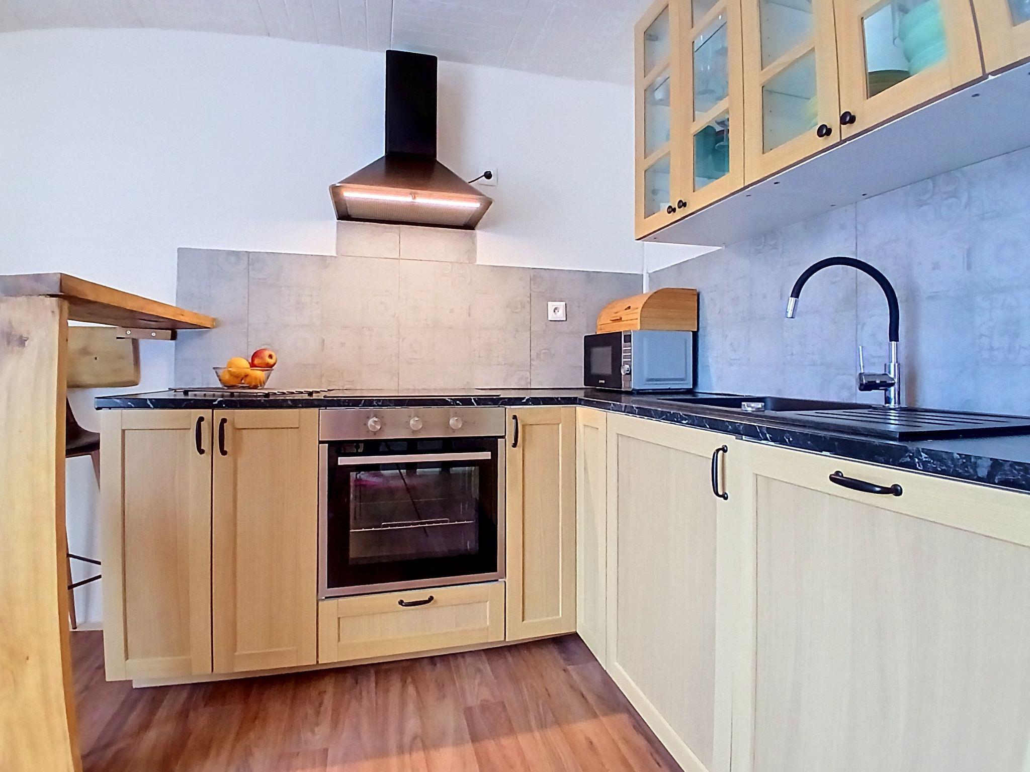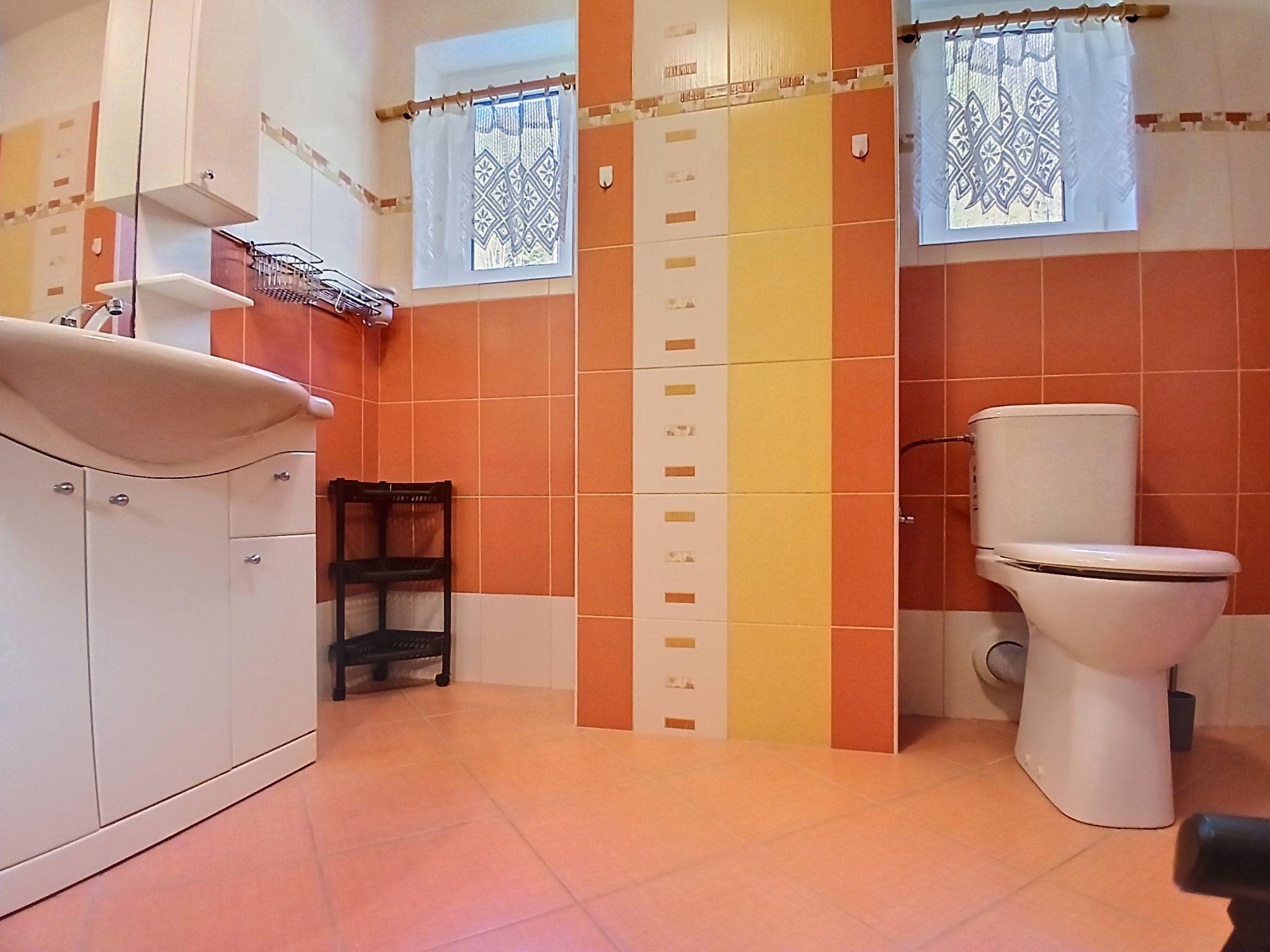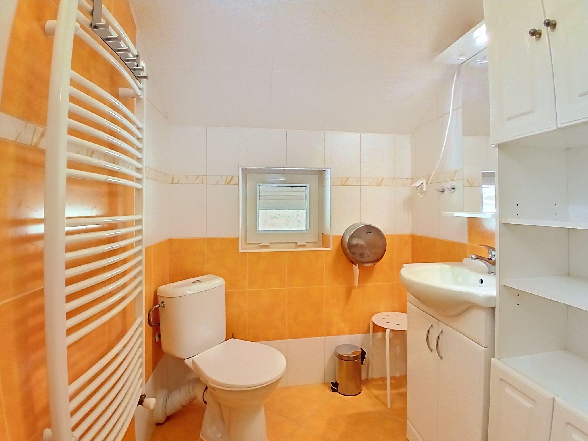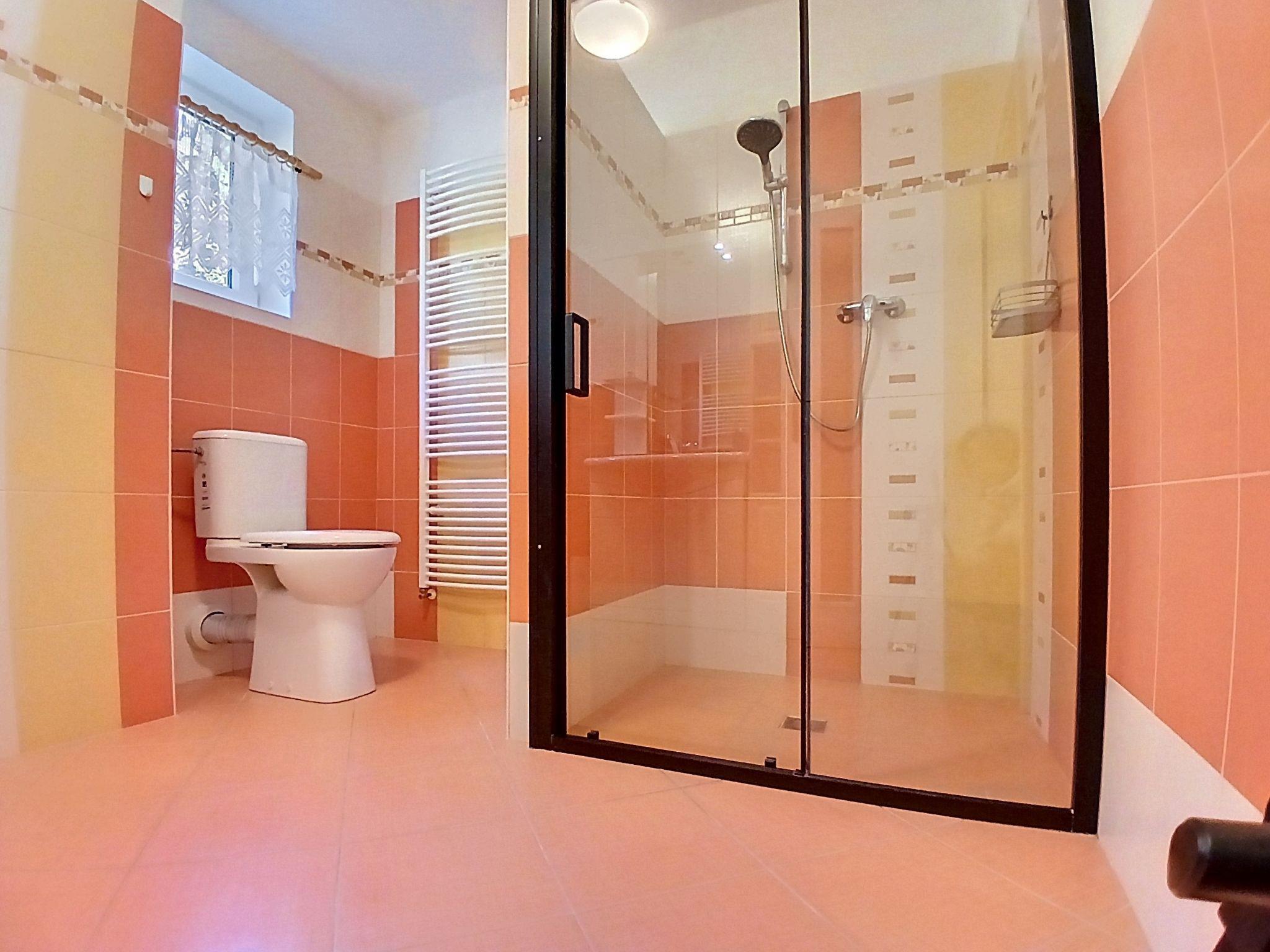 "Hillside Terrace", 5-room house 200 m2 on 3 levels. Spacious, comfortable and cosy furnishings: living room with TV (flat screen). 1 room with 1 x 2 bunk beds, 2 double beds. Large kitchen (oven, dishwasher, 4 ceramic glass hob hotplates, toaster, kettle, microwave, freezer, electric coffee machine) with dining table. Exit to the terrace. Shower/WC. Heating. 2nd upper floor: 1 room with 1 x 2 bunk beds, 1 double bed. 1 room with 1 x 2 bunk beds, 1 double bed. Exit to the balcony. Playroom with TV (flat screen). Small kitchen (dishwasher, freezer). Shower/WC, sep. WC. Small balcony, large terrace. Terrace furniture, balcony furniture, barbecue. Beautiful view of the garden and the forest. Facilities: children's high chair, baby cot. Internet (WiFi, free). Parking at the house. Please note: suitable for families. Non-smokers only. Maximum 1 pet/ dog allowed. Private entrance. The pool mentioned in the description is for private use.