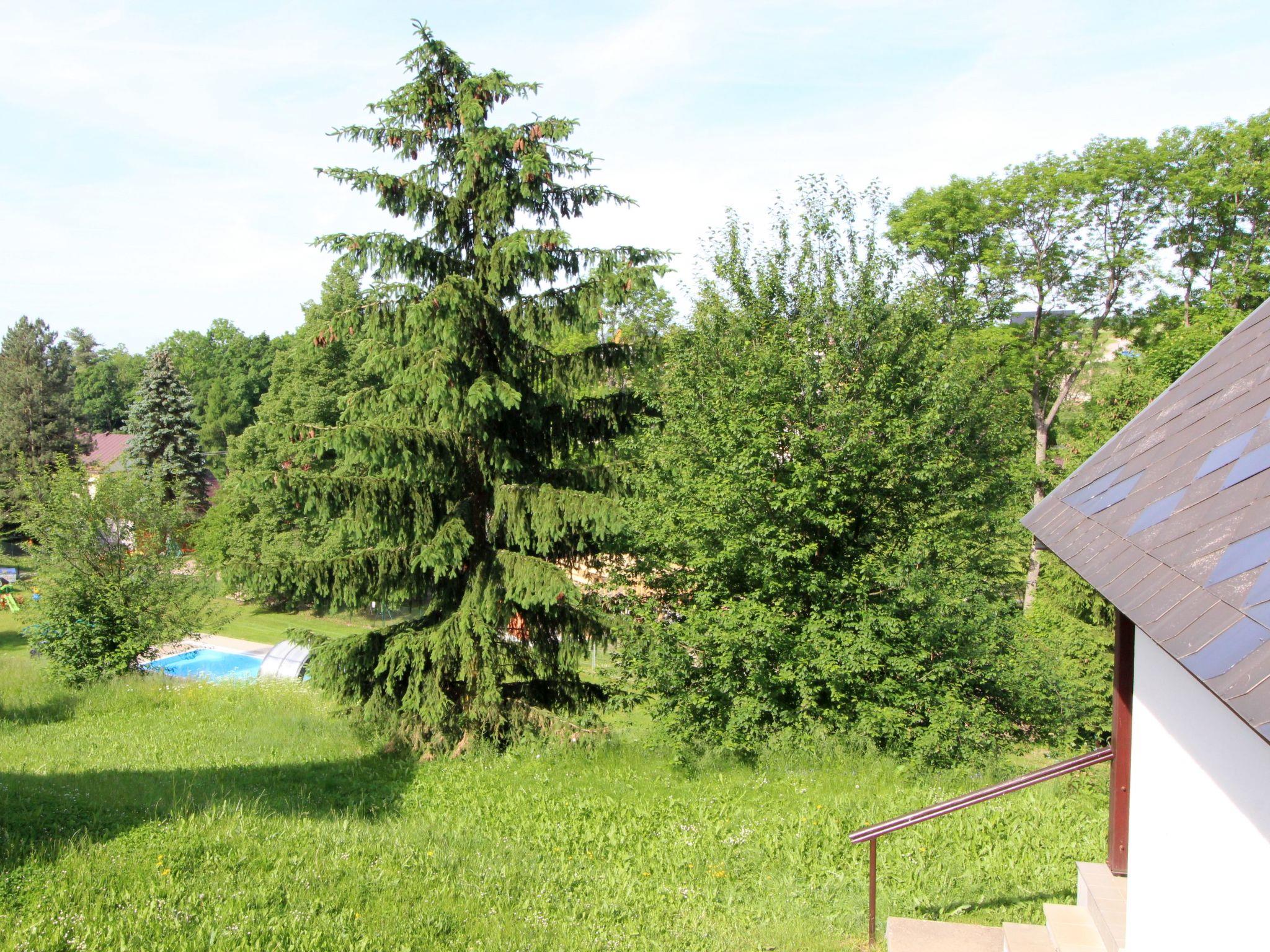 Cistá v Krkonoších 2 km from Cerný Dul: Child friendly, beautiful, comfortable holiday village "Holiday Hill 33", 500 m a.s.l., surrounded by trees and meadows. 43 houses in the resort. On the outskirts, in a secluded, quiet, sunny position, 1.5 km from the lake, 3 km from the skiing area, in the countryside. For shared use: property 6 ha, meadow, swimming pool heated (9 x 4 m, depth 120 cm, seasonal availability: 15.May. - 30.Sep. pool opening hours: 09:00-20:00). Shower/WC in the pool area, table tennis, children's playground (swing, sandbox). In the complex: reception, central heating system. Parking (for 2 cars) at the house. Shop 2.5 km, grocery 2.5 km, supermarket 7.5 km, restaurant 1.6 km, pub garden 400 m, bus stop "Cerný Dul, Cistá-pošta" 400 m, grass beach 1.5 km (small), indoor swimming pool 19 km. Golf course (18 hole) 14 km, tennis 2.5 km, sports centre 2.5 km, walking paths from the house, cycle lane 100 m, ski lift 3 km, chair lift 3 km, slopes 3 km, ski school 3 km, children's ski school 3 km, sled run 7 km, cross country ski track 100 m. Nearby attractions: Janské Lázne Spa 9 km, Vrchlabí 10 km, Aquapark Trutnov 25 km, Zoo Safari Dvur Králové 29 km, Bozkovské jeskyne 37 km, Adršpašské skály 44 km. Well-known ski regions can easily be reached: Cerný Dul 3 km, Herlíkovice 15 km, Pec pod Snežkou 22 km. Well-known lakes can easily be reached: Cistá 1.5 km, Vrchlabí 9 km. Hiking paths: Snežka 25 km.