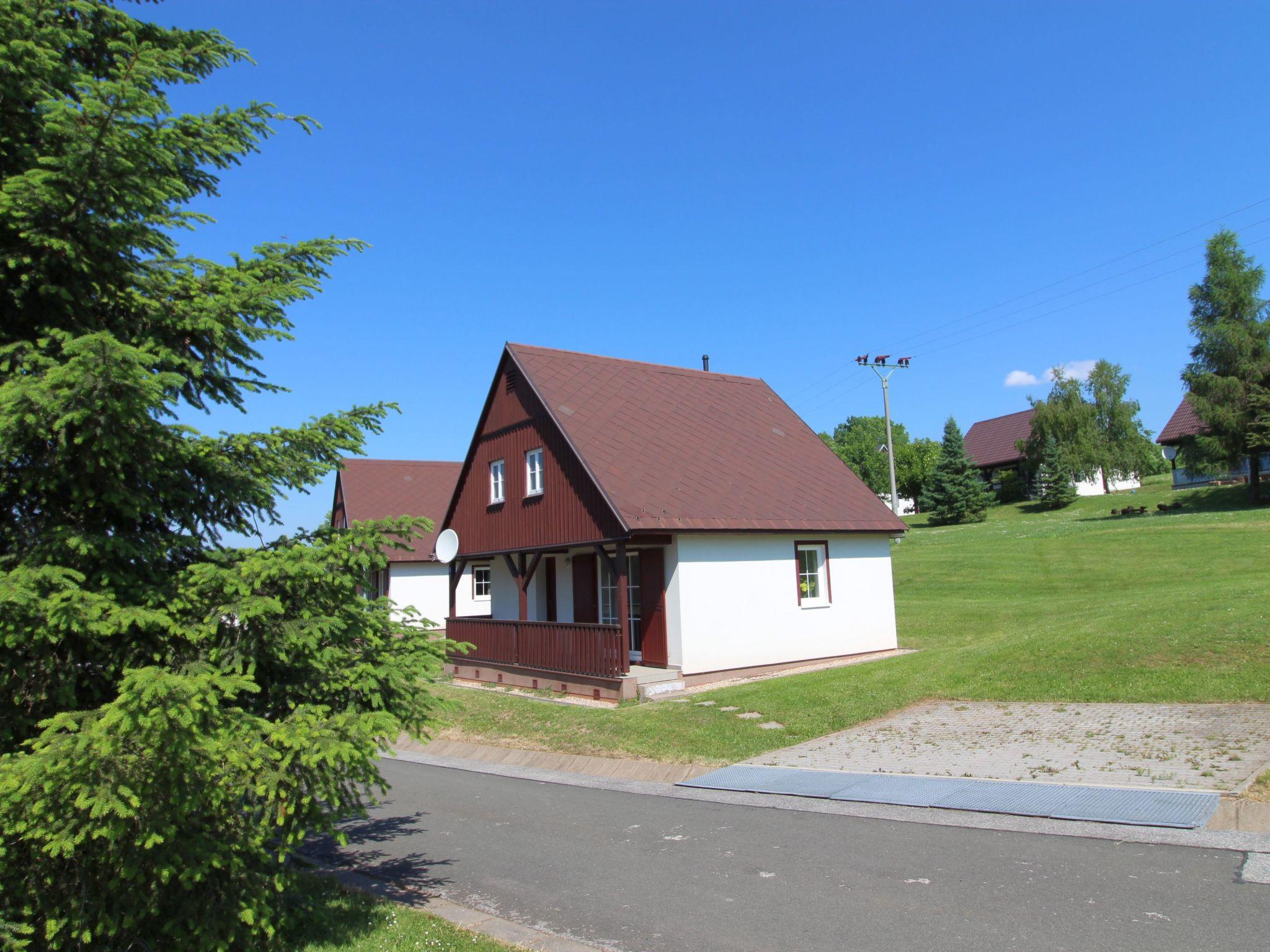 Cistá v Krkonoších 2 km from Cerný Dul: Child friendly, beautiful, comfortable holiday village "Holiday Hill 43", 500 m a.s.l., surrounded by trees and meadows. 43 houses in the resort. On the outskirts, in a secluded, quiet, sunny position, 1.5 km from the lake, 3 km from the skiing area, in the countryside. For shared use: property 6 ha, meadow, swimming pool heated (9 x 4 m, depth 120 cm, seasonal availability: 15.May. - 30.Sep. pool opening hours: 09:00-20:00). Shower/WC in the pool area, table tennis, children's playground (swing, sandbox). In the complex: reception, central heating system. Parking (for 2 cars) at the house. Shop 2.5 km, grocery 2.5 km, supermarket 7.5 km, restaurant 1.6 km, pub garden 400 m, bus stop "Cerný Dul, Cistá-pošta" 400 m, grass beach 1.5 km (small), indoor swimming pool 19 km. Golf course (18 hole) 14 km, tennis 2.5 km, sports centre 2.5 km, walking paths from the house 100 m, cycle lane, ski lift 3 km, chair lift 3 km, slopes 3 km, ski school 3 km, children's ski school 3 km, sled run 7 km, cross country ski track 100 m. Nearby attractions: Janské Lázne Spa 9 km, Vrchlabí 10 km, Aquapark Trutnov 25 km, Zoo Safari Dvur Králové 29 km, Bozkovské jeskyne 37 km, Adršpašské skály 44 km. Well-known ski regions can easily be reached: Cerný Dul 3 km, Herlíkovice 15 km, Pec pod Snežkou 22 km. Well-known lakes can easily be reached: Cistá 1.5 km, Vrchlabí 9 km. Hiking paths: Snežka 25 km.