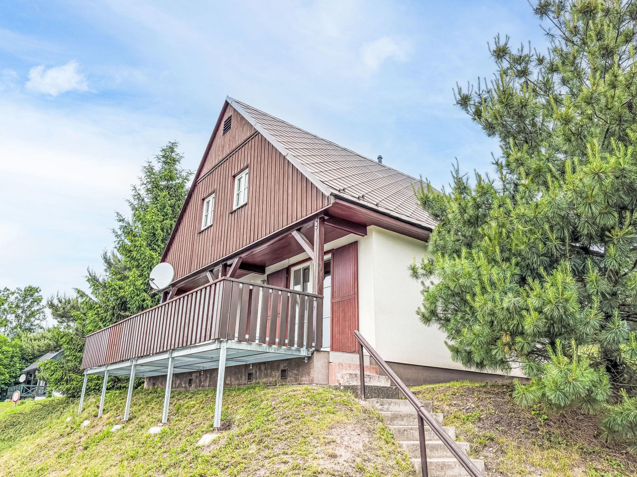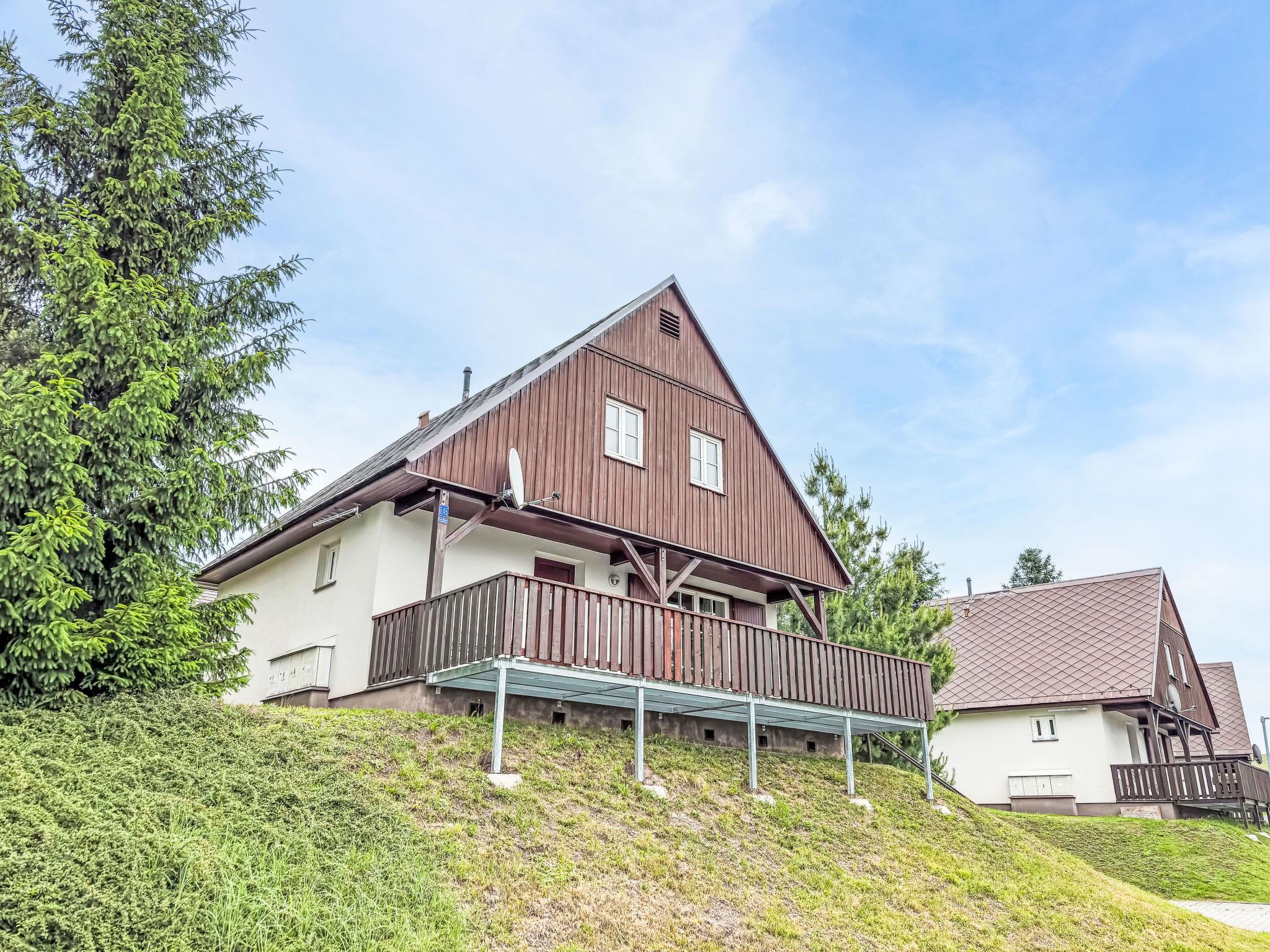 Cistá v Krkonoších 2 km from Cerný Dul: Child friendly, beautiful, comfortable holiday village "Holiday Hill 45", 500 m a.s.l., surrounded by trees and meadows. 43 houses in the resort. On the outskirts, in a secluded, quiet, sunny position, 1.5 km from the lake, 3 km from the skiing area, in the countryside. For shared use: property 6 ha, meadow, swimming pool heated (9 x 4 m, depth 120 cm, seasonal availability: 15.May. - 30.Sep. pool opening hours: 09:00-20:00). Shower/WC in the pool area, table tennis, children's playground (swing, sandbox). In the complex: reception, central heating system. Parking (for 2 cars) at the house. Shop 2.5 km, grocery 2.5 km, supermarket 7.5 km, restaurant 1.6 km, pub garden 400 m, bus stop "Cerný Dul, Cistá-pošta" 400 m, grass beach 1.5 km (small), indoor swimming pool 19 km. Golf course (18 hole) 14 km, tennis 2.5 km, sports centre 2.5 km, walking paths from the house 100 m, cycle lane, ski lift 3 km, chair lift 3 km, slopes 3 km, ski school 3 km, children's ski school 3 km, sled run 7 km, cross country ski track 100 m. Nearby attractions: Janské Lázne Spa 9 km, Vrchlabí 10 km, Aquapark Trutnov 25 km, Zoo Safari Dvur Králové 29 km, Bozkovské jeskyne 37 km, Adršpašské skály 44 km. Well-known ski regions can easily be reached: Cerný Dul 3 km, Herlíkovice 15 km, Pec pod Snežkou 22 km. Well-known lakes can easily be reached: Cistá 1.5 km, Vrchlabí 9 km. Hiking paths: Snežka 25 km.