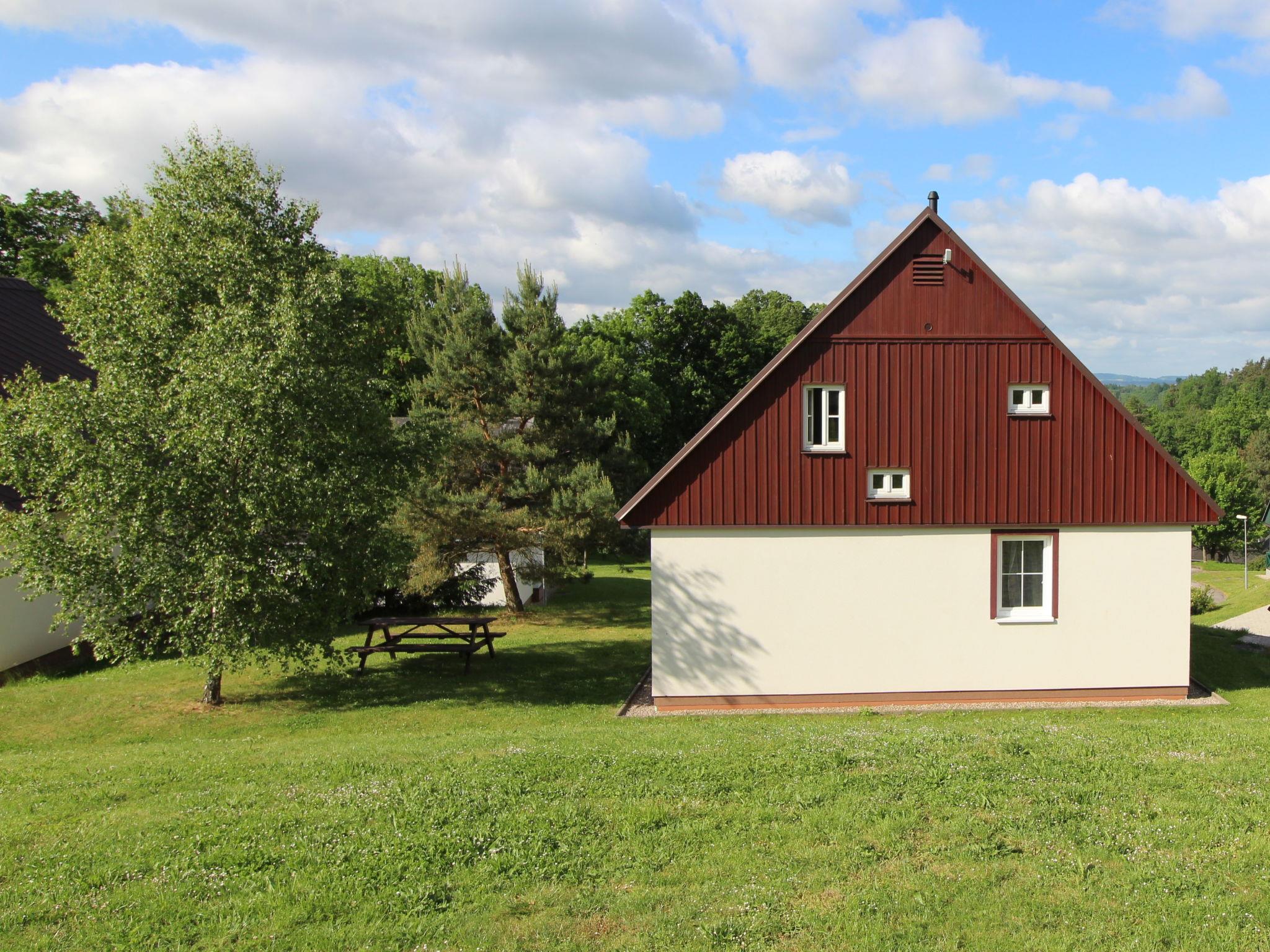 Cistá v Krkonoších 2 km from Cerný Dul: Child friendly, beautiful, comfortable holiday village "Holiday Hill 46", 500 m a.s.l., surrounded by trees and meadows. 43 houses in the resort. On the outskirts, in a secluded, quiet, sunny position, 1.5 km from the lake, 3 km from the skiing area, in the countryside. For shared use: property 6 ha, meadow, swimming pool heated (9 x 4 m, depth 120 cm, seasonal availability: 15.May. - 30.Sep. pool opening hours: 09:00-20:00). Shower/WC in the pool area, table tennis, children's playground (swing, sandbox). In the complex: reception, central heating system. Parking (for 2 cars) at the house. Shop 2.5 km, grocery 2.5 km, supermarket 7.5 km, restaurant 1.6 km, pub garden 400 m, bus stop "Cerný Dul, Cistá-pošta" 400 m, grass beach 1.5 km (small), indoor swimming pool 19 km. Golf course (18 hole) 14 km, tennis 2.5 km, sports centre 2.5 km, walking paths from the house 100 m, cycle lane, ski lift 3 km, chair lift 3 km, slopes 3 km, ski school 3 km, children's ski school 3 km, sled run 7 km, cross country ski track 100 m. Nearby attractions: Janské Lázne Spa 9 km, Vrchlabí 10 km, Aquapark Trutnov 25 km, Zoo Safari Dvur Králové 29 km, Bozkovské jeskyne 37 km, Adršpašské skály 44 km. Well-known ski regions can easily be reached: Cerný Dul 3 km, Herlíkovice 15 km, Pec pod Snežkou 22 km. Well-known lakes can easily be reached: Cistá 1.5 km, Vrchlabí 9 km. Hiking paths: Snežka 25 km. Please note: ski bus (free of charge).
