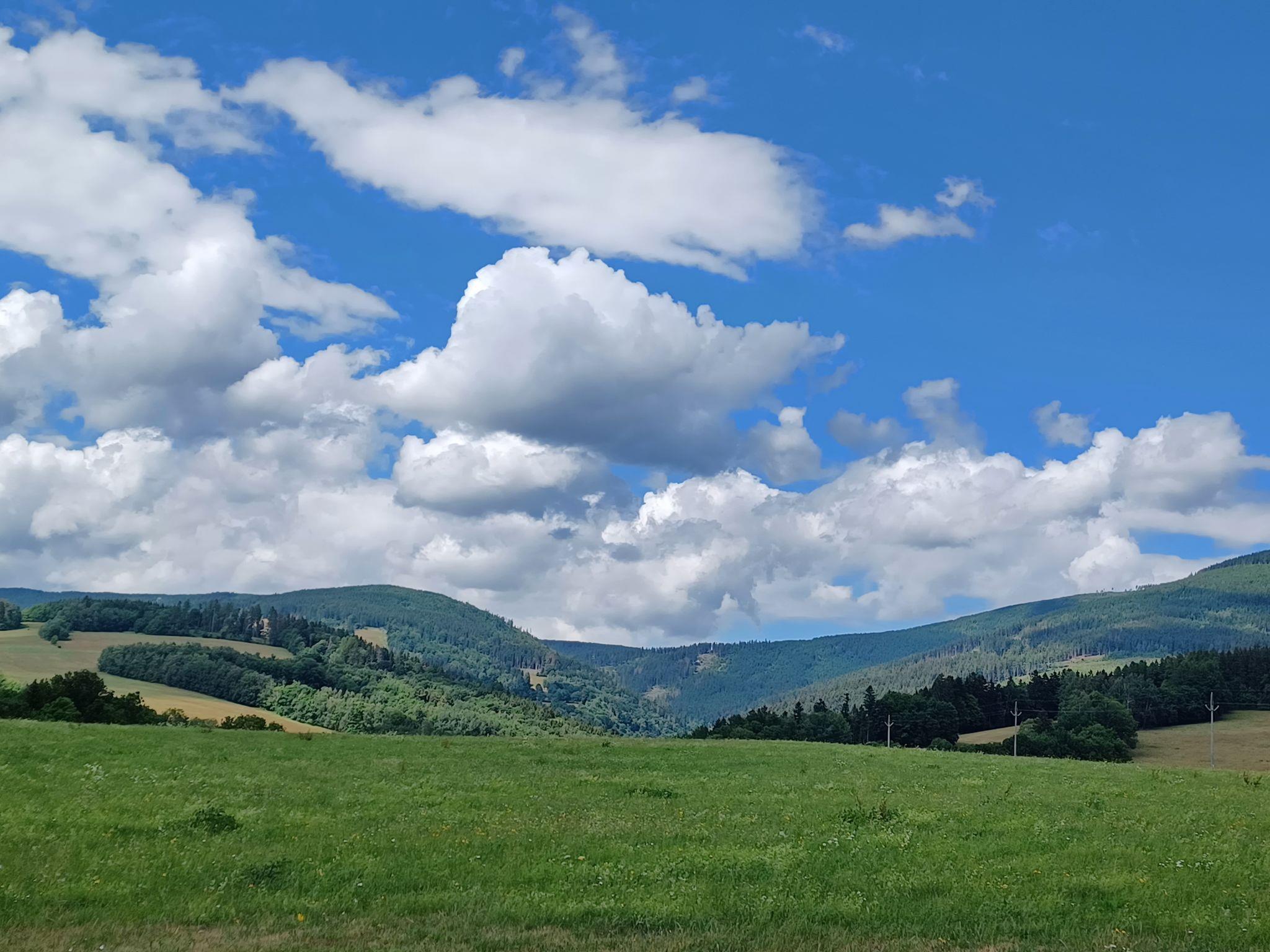Cistá v Krkonoších 2 km from Cerný Dul: Child friendly, beautiful, comfortable holiday village "Holiday Hill 47", 500 m a.s.l., built in 2001, renovated in 2011, surrounded by trees and meadows. 43 houses in the resort. On the outskirts, in a secluded, quiet, sunny position, 1.5 km from the lake, 3 km from the skiing area, in the countryside. For shared use: property 6 ha, meadow, swimming pool heated (9 x 4 m, depth 120 cm, seasonal availability: 15.May. - 30.Sep. pool opening hours: 09:00-18:00). Shower/WC in the pool area, table tennis, volleyball, patio, fireplace, children's playground (swing, sandbox). In the complex: reception, trampoline, storage room for skis, central heating system. Bread roll service on request (extra). Parking (for 2 cars) at the house. Shop 2.5 km, grocery 2.5 km, supermarket 7.5 km, restaurant 1.6 km, pub garden 400 m, bus stop "Cerný Dul, Cistá-pošta" 400 m, grass beach 1.5 km (small), indoor swimming pool 19 km. Golf course (18 hole) 14 km, tennis 2.5 km, sports centre 2.5 km, walking paths from the house 100 m, cycle lane, ski lift 3 km, chair lift 3 km, slopes 3 km, ski school 3 km, children's ski school 3 km, sled run 7 km, cross country ski track 100 m. Nearby attractions: Janské Lázne Spa 9 km, Vrchlabí 10 km, Aquapark Trutnov 25 km, Zoo Safari Dvur Králové 29 km, Bozkovské jeskyne 37 km, Adršpašské skály 44 km. Well-known ski regions can easily be reached: Cerný Dul 3 km, Herlíkovice 15 km, Pec pod Snežkou 22 km. Well-known lakes can easily be reached: Cistá 1.5 km, Vrchlabí 9 km. Hiking paths: Snežka 25 km.