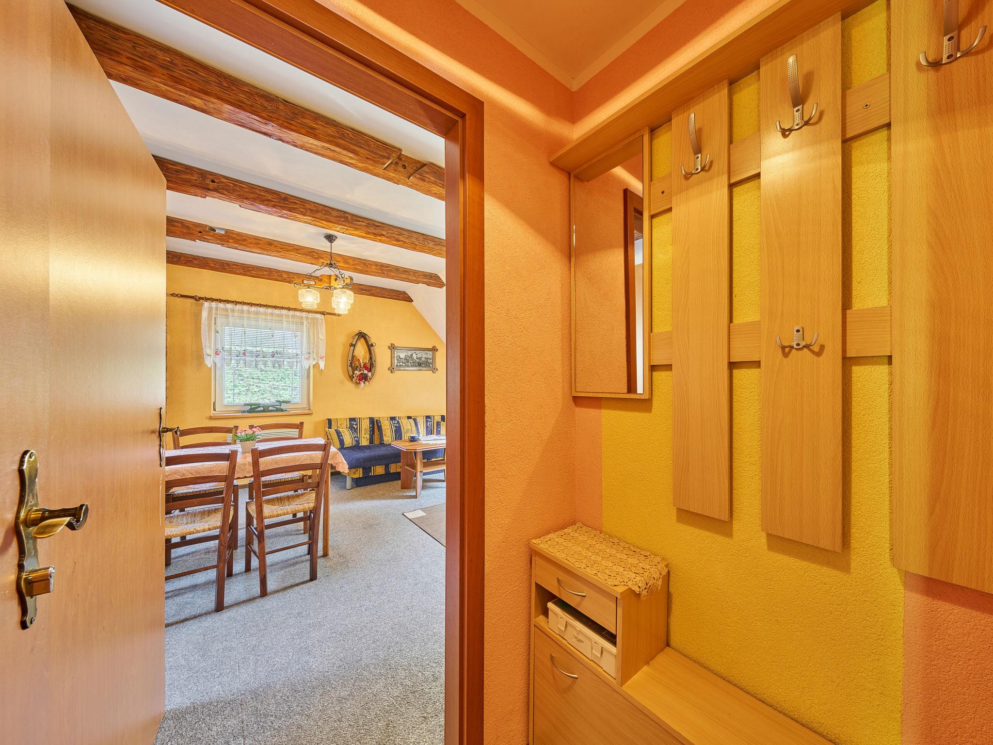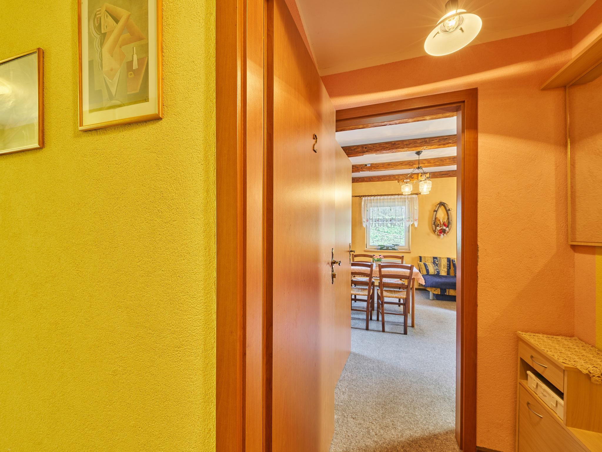 1-room studio 36 m2, on the upper floor. Living/sleeping room with sloping ceilings with 1 double sofabed, 1 double bed and satellite TV. Kitchenette (2 hot plates, kettle, microwave, grill, electric coffee machine) with dining table. Shower/WC. Electric heating, boiler. Facilities: Internet (WiFi, free). Please note: suitable for families. Non-smokers only. 1 small pet/ dog allowed.