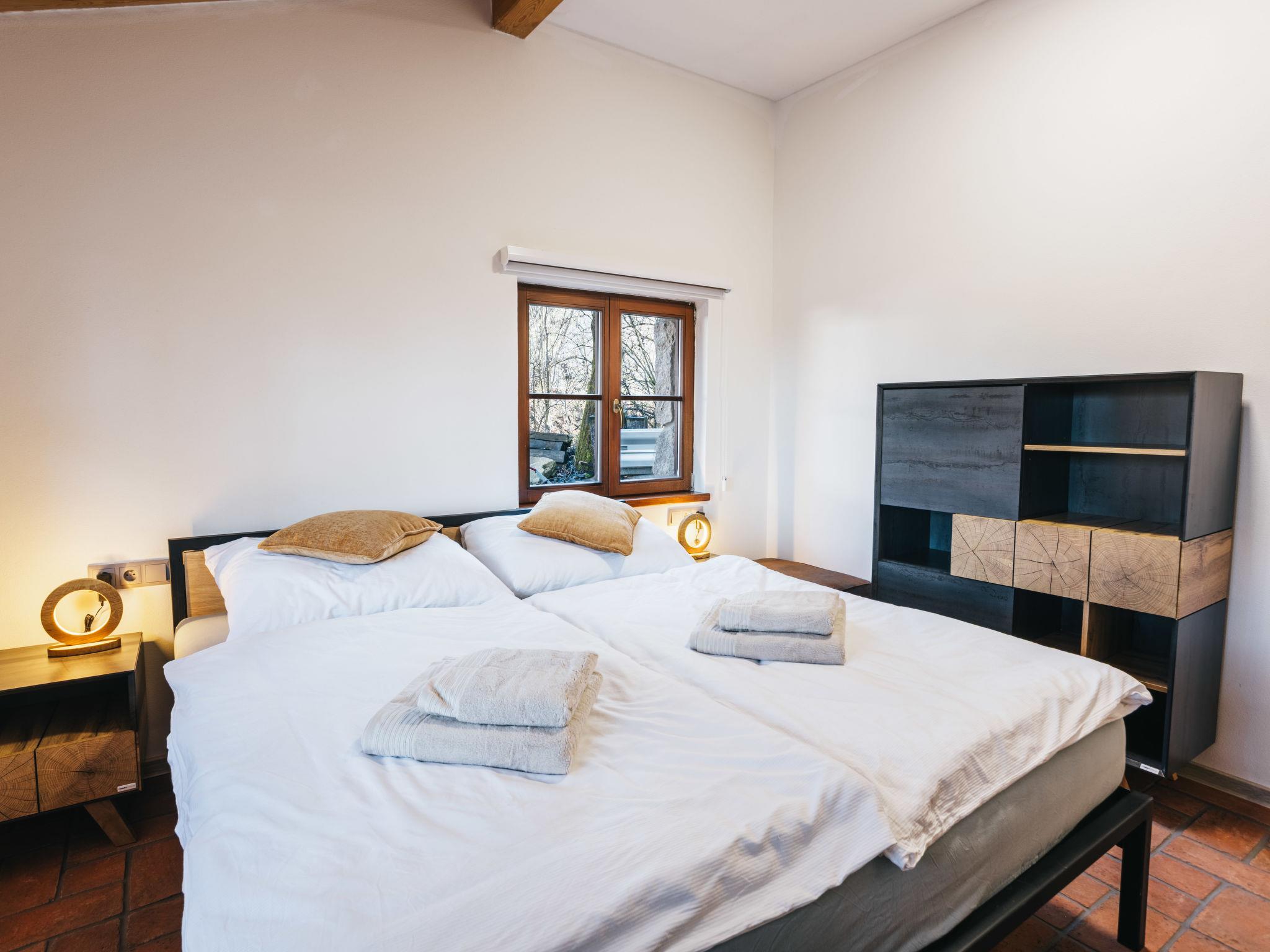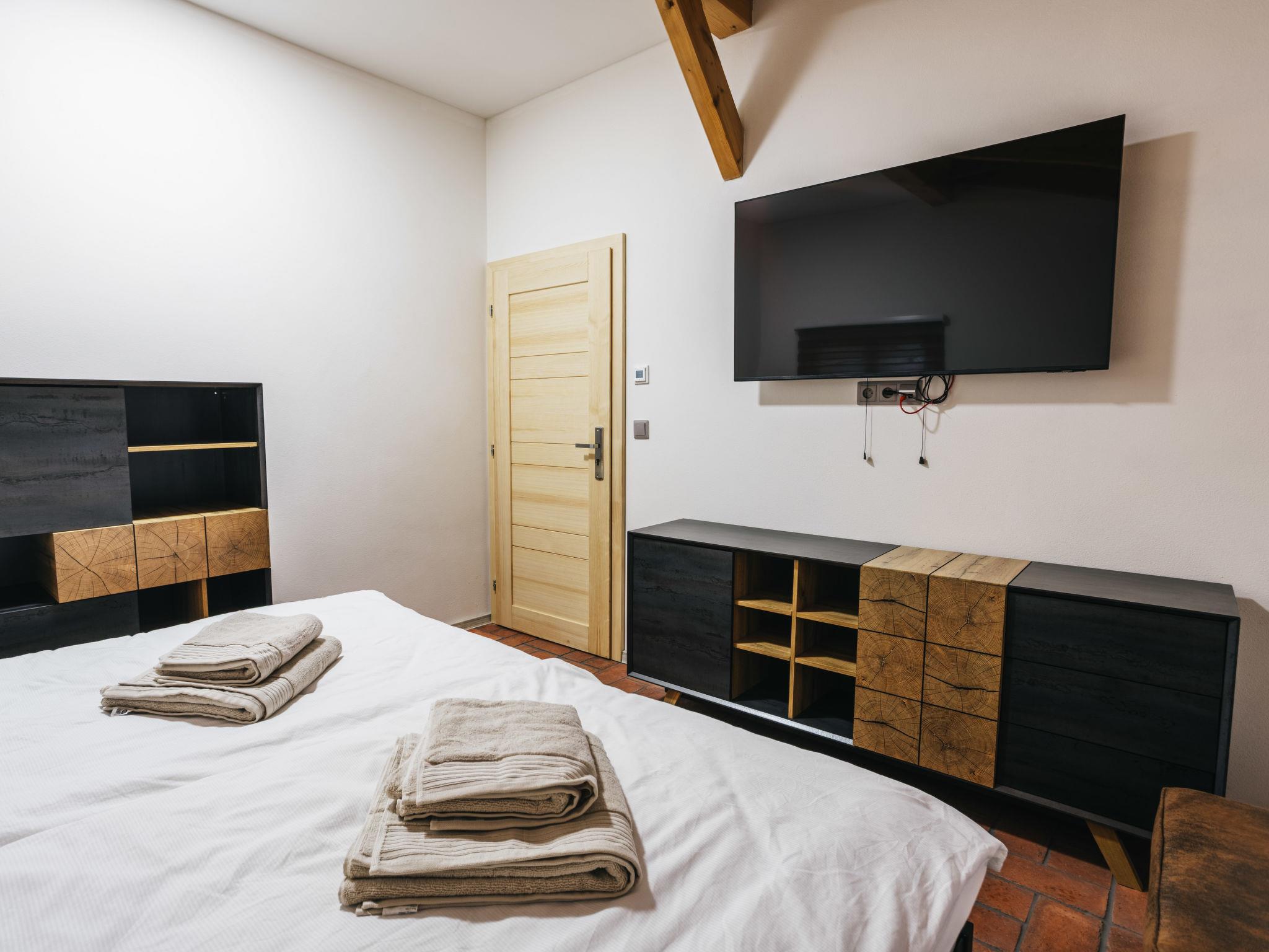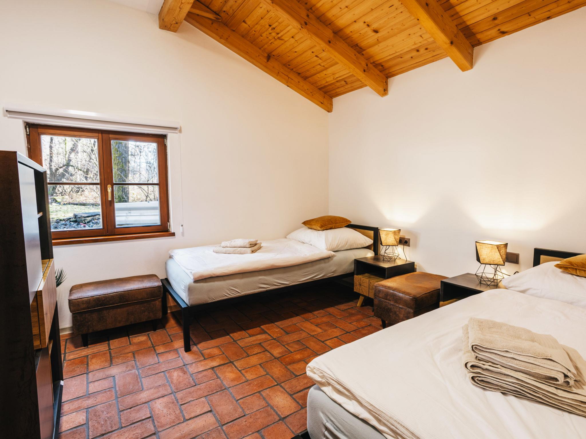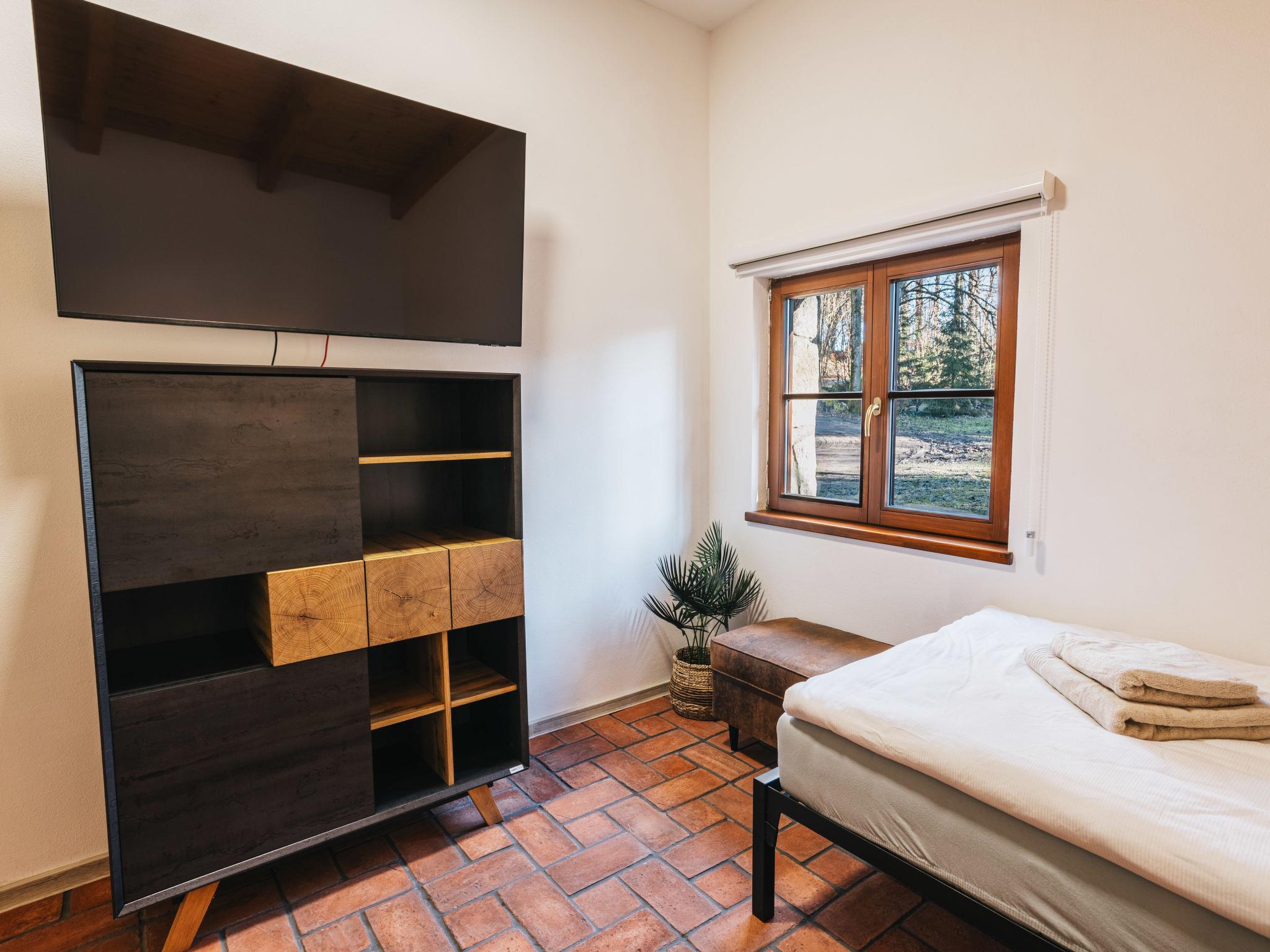 Kunejov 4 km from Clunek: In a beautiful place full of forests, meadows and ponds of the Czech Canada Nature Park, comfortable house "Kunejov", detached. 2 houses in the resort. Property composed of main house and outbuilding, on the outskirts Kunejov, 15 km from the centre of Jindrichuv Hradec, in a quiet, sunny position, 150 m from the edge of the forest, on the lake, in the countryside. Private: property 4'000 m2, swimming pool (6 x 3 m, depth 120 cm, seasonal availability: 01.Jun. - 30.Sep.). Patio, terrace, barbecue. In the complex: storage room for bicycles, central heating system. Parking at the house. Grocery 4 km, restaurant 4 km, bus stop "Kunejov" 400 m, railway station "Nová Bystrice, Senotín" 3.6 km, public bathing area 100 m. Golf course (18 hole) 10 km, walking paths from the house, cycle lane 50 m, children's playground 500 m. Nearby attractions: Kamenný stul 2 km, Památník Járy Cimrmana/Kaproun 6 km, Zámek Nová Bystrice 9 km, Terezín 12 km, Vítkuv Hrádek 12 km, Hrad Landštejn 15 km, Pomezí, Hrad a zámek Jindrichuv Hradec 15 km, Trebon 33 km, Telc 35 km. Well-known ski regions can easily be reached: Hradište u Nové Bystrice 5 km. Well-known lakes can easily be reached: Kacležský, Krvavý, Klikovský rybník 4 km, Ratmírovský rybník 12 km. A SWIMMING POOL WILL BE AVAILABLE FROM MAY 2026.