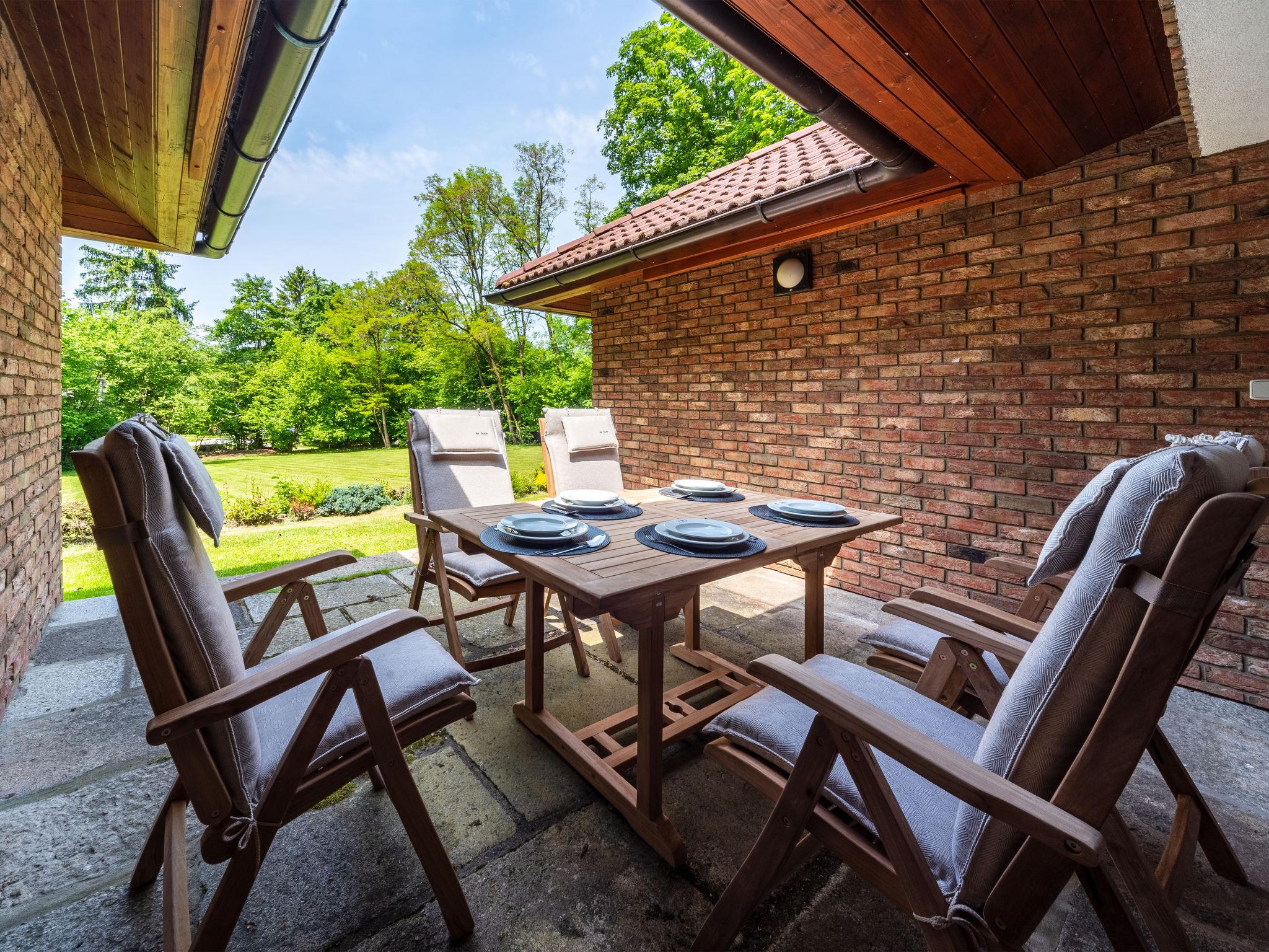 8-room house 225 m2, on the ground floor. Living room with Scandinavian wood stove and satellite TV. Exit to the terrace. 1 room with 1 bed. 1 room with 1 bed. 1 room with 1 double bed (180 cm). 1 room with 1 double bed (120 cm). Kitchen (oven, dishwasher, 4 ceramic glass hob hotplates, toaster, kettle, microwave, electric coffee machine). Sep. WC, bath/shower/WC. On the lower ground floor: living room with panoramic window with 1 double sofabed and TV. 1 room with 1 double bed. 1 room with 2 beds. Exit to the terrace. Kitchenette (oven, dishwasher, 4 induction hot plates, toaster, kettle, microwave, electric coffee machine) with dining table. Shower/WC. 2 terraces. Terrace furniture. Facilities: Internet (WiFi, free). Please note: suitable for families. Non-smoking house. 1 small pet/ dog allowed.