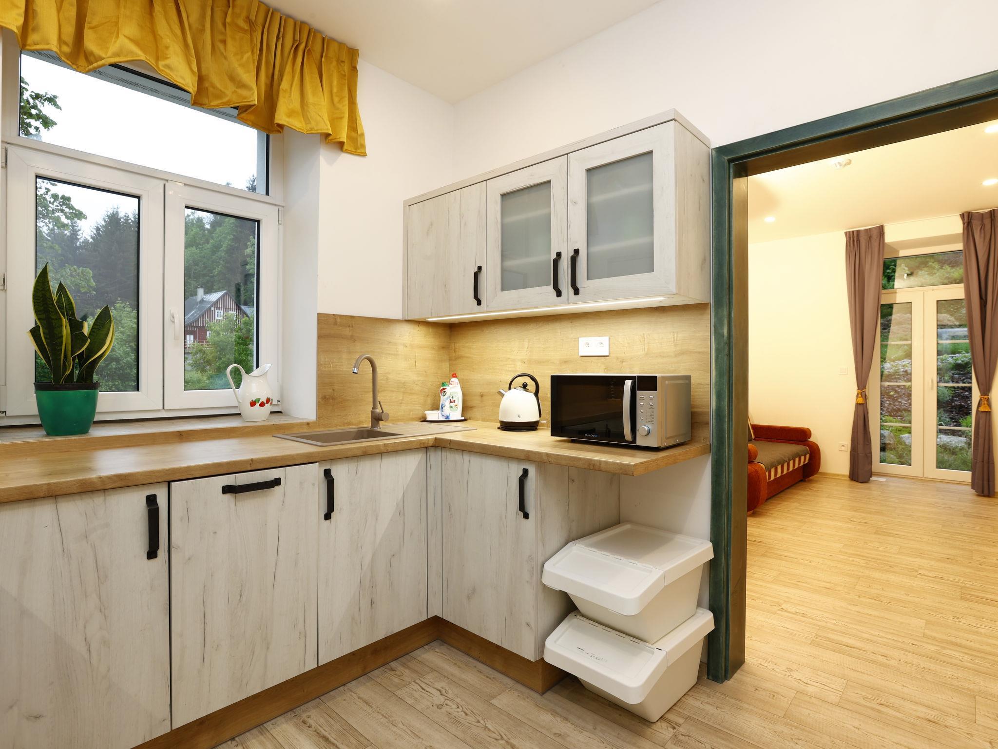 Child friendly, modern apartment block "Pod Mariánskými schody". 10 apartments in the property. 5 km from the skiing area, 100 m from the river. For shared use: property. Garden furniture, barbecue, fireplace, children's playground (slide, sandbox). In the complex: hot tub, table tennis, billiard table, playroom, table football, trampoline, storage room for bicycles, storage room for skis, central heating system, washing machine, ski boot dryer. Parking on the premises, extra. Shop 2 km, supermarket 7 km, restaurant 2.5 km, bar 2.5 km, bakery 2.5 km, bus stop "Desná centrum" 2.5 km, railway station "Desná centrum" 2 km. Walking paths from the house 500 m, ski lift 6 km, ski rental 6 km, ski school 6 km, children's ski school 6 km, cross country ski track. Nearby attractions: Protržená prehrada 6 km, Mariánské schody 400 m, Rozhledna Svetlý vrch 2 km, Skokanské mustky Desná 850 m, Vodopády na Cerné Desné 5 km, Riedlova hrobka Desná 3 km. Well-known ski regions can easily be reached: ski area Albrechtice 6 km, ski area Cerná rícka 6 km, ski area Špicák 7 km. Well-known lakes can easily be reached: prehrada Souš 7.5 km. Hiking paths: Jizerka 16 km, Mariánská hora 2 km. Please note: suitable for families.