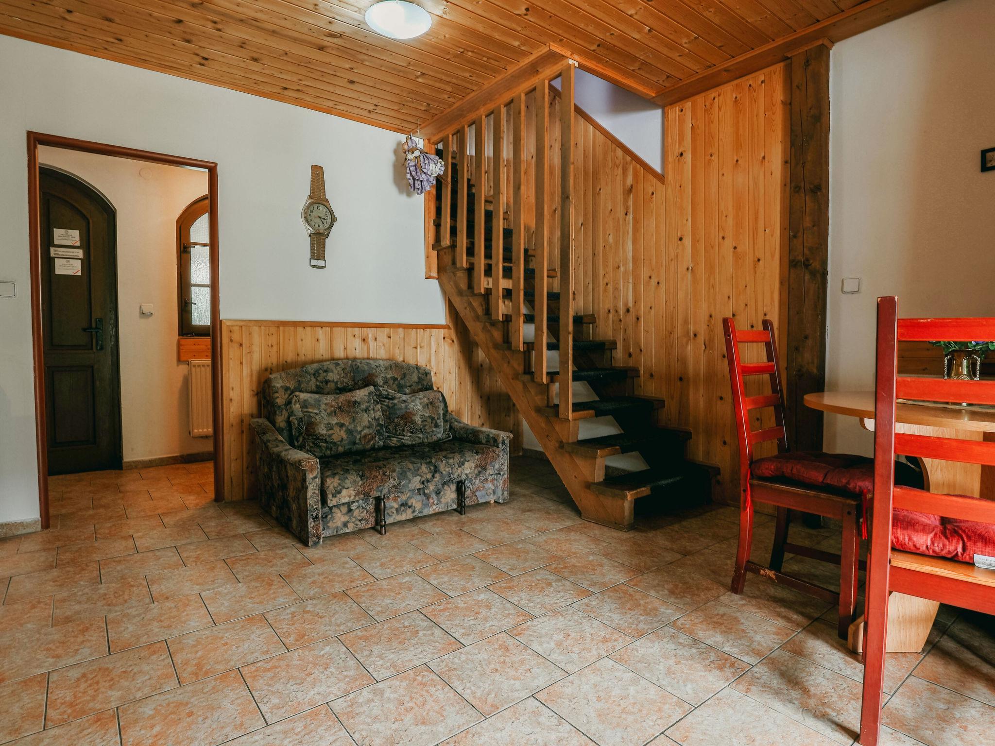 "Kacenka", 2-room maisonette 67 m2. Practical furnishings: dining room with dining table. Exit to the garden, to the terrace. Kitchenette (2 gas rings, kettle, microwave). 2nd upper floor: 2 rooms with sloping ceilings, each room with 1 bed, 1 double bed, shower/WC and satellite TV. Facilities: Internet (WiFi, free). Please note: suitable for families. Non-smokers only. CZ41476